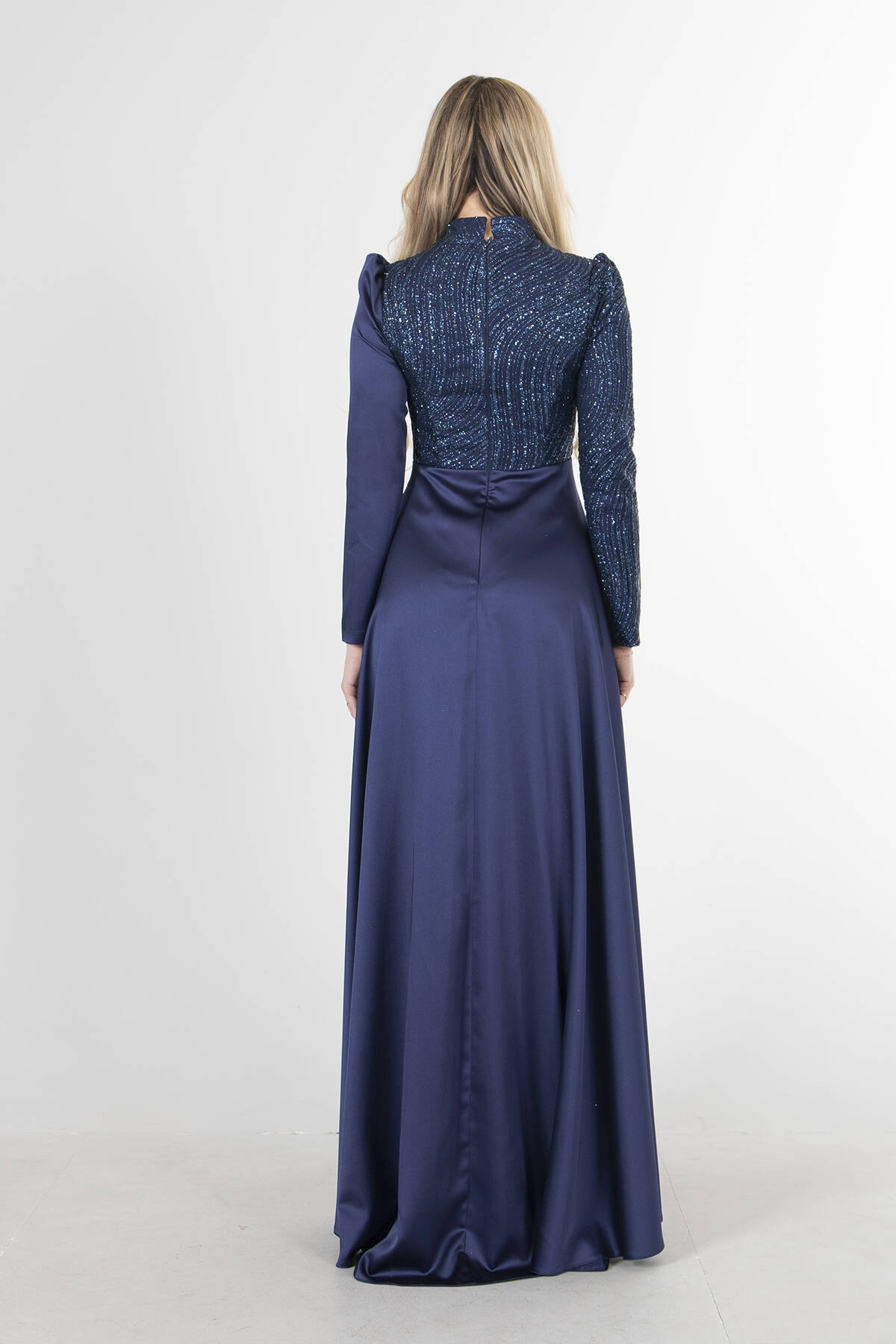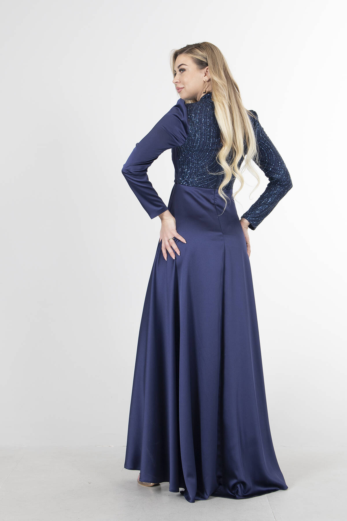 Modelin Ölçüleri : Boy: 1.80 cm / Göğüs: 88 cm / Bel: 69 cm /Basen : 94 cm Mankenin Üzerindeki Ürün 36/S Bedendir %100 Polyester Uzun Kol Dik Yaka Saten Drape Ve Kuyruk Detaylı Simli Abiye Elbise Ürün Boyu : 108 cm Stüdyo Çekimlerinde Renkler Işık Farklılıgından Dolayı Değişiklik Gösterebilir (Dikkat! Ürünlerimiz güvenlik bandı ile gönderilmektedir . Güvenlik bandı olmayan ürünlerin iadesi kabul edilmeyecektir)