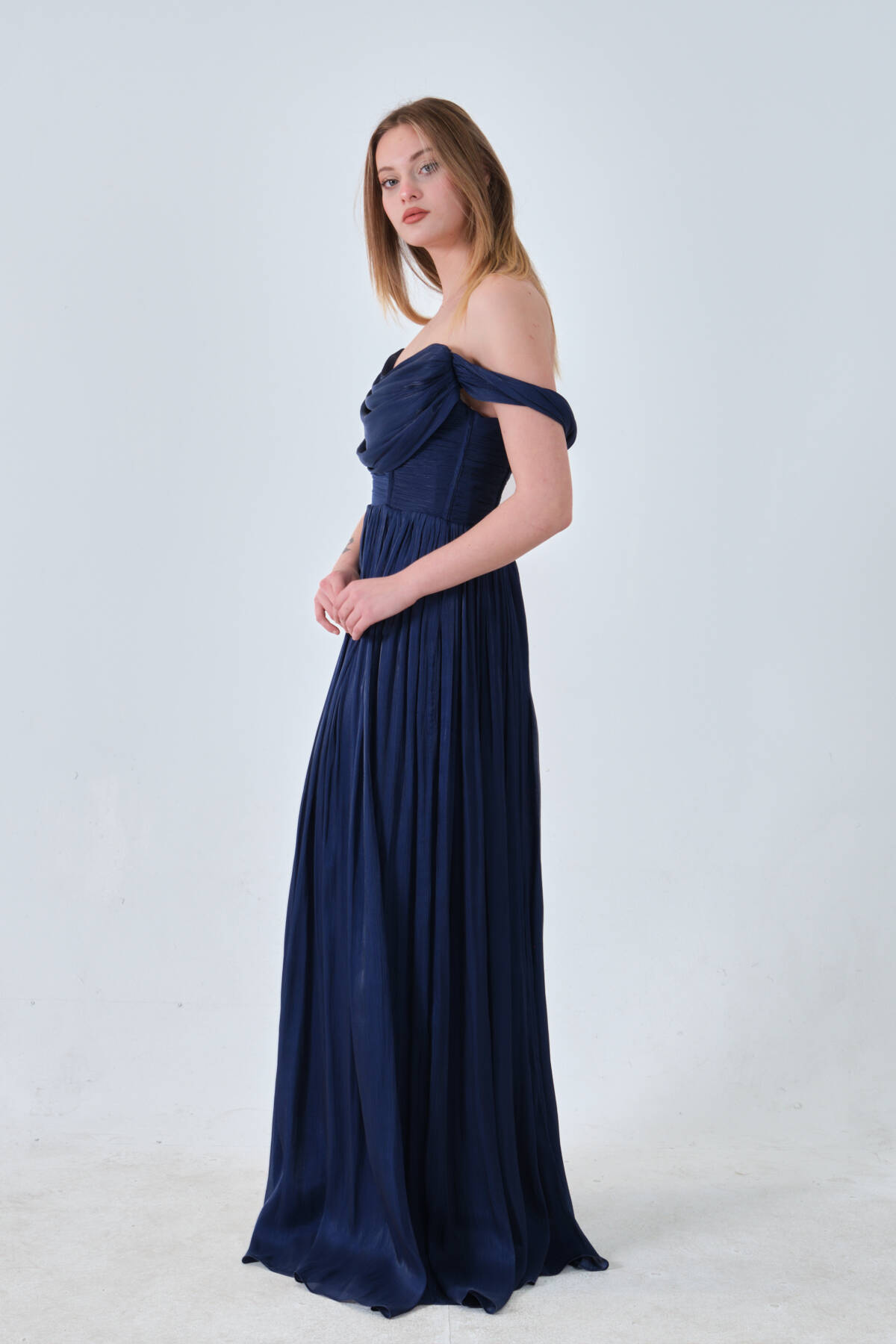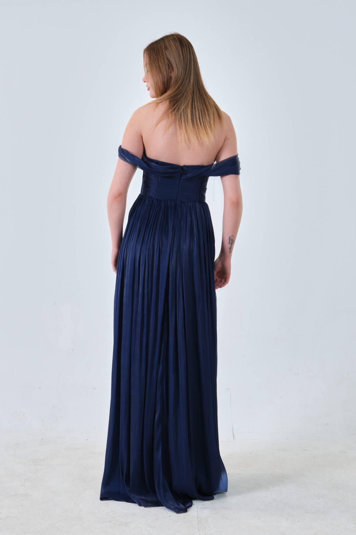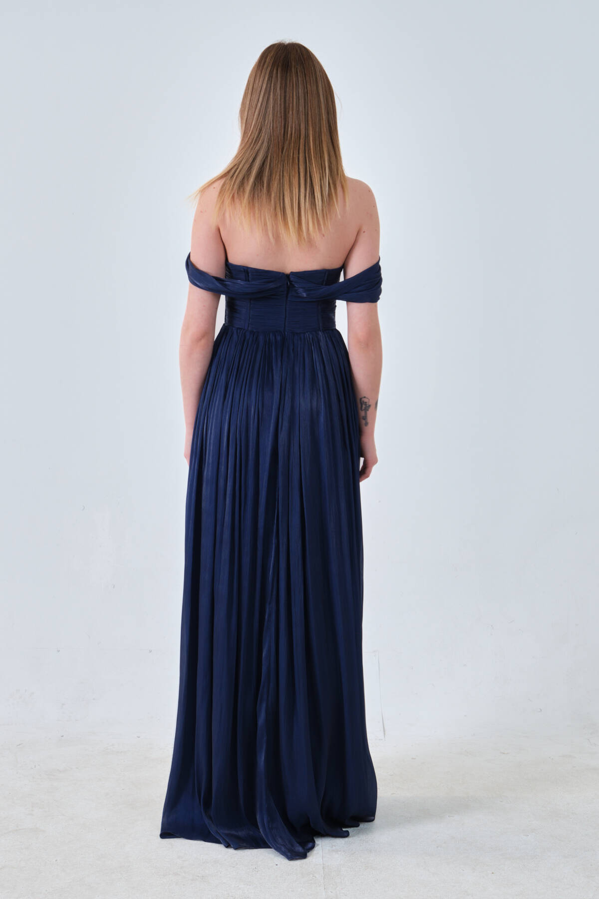 Lacivert Drape Yaka Detaylı Şifon Straplez Abiye 08011861.02