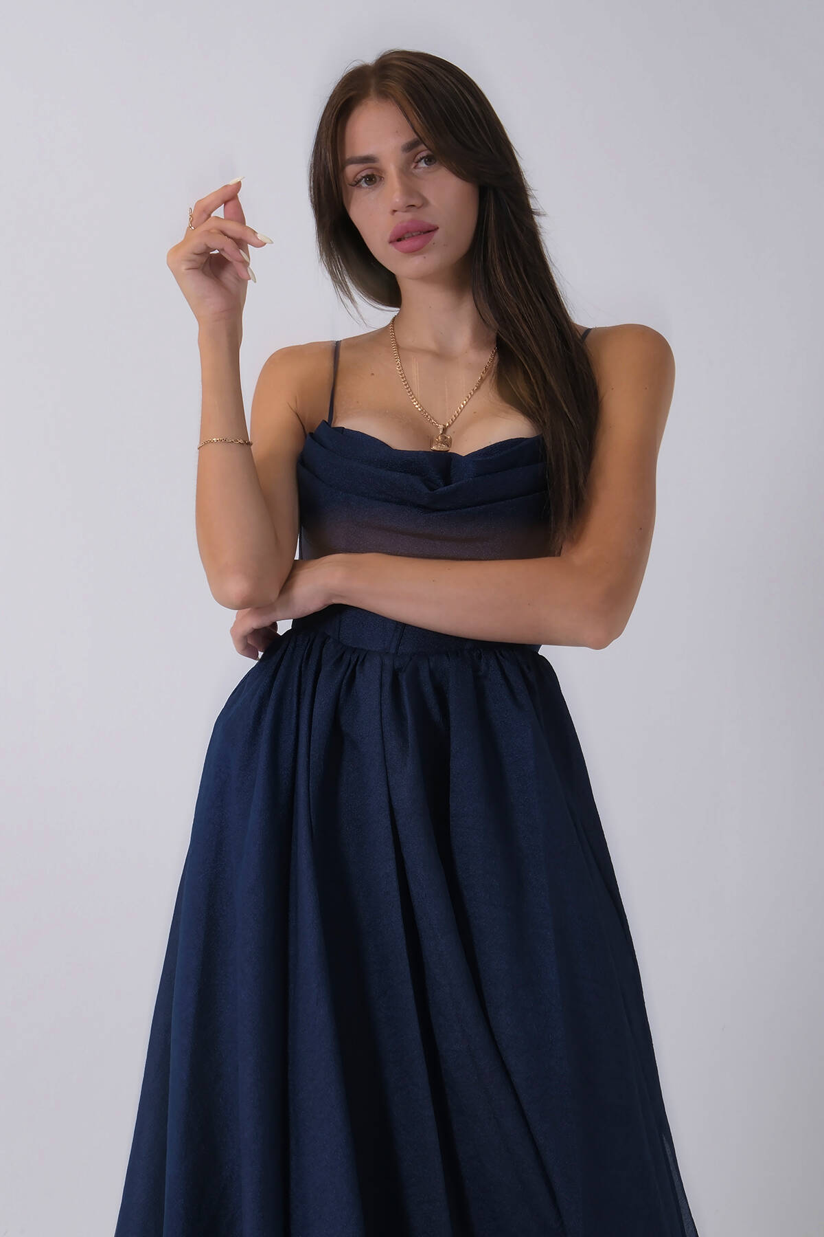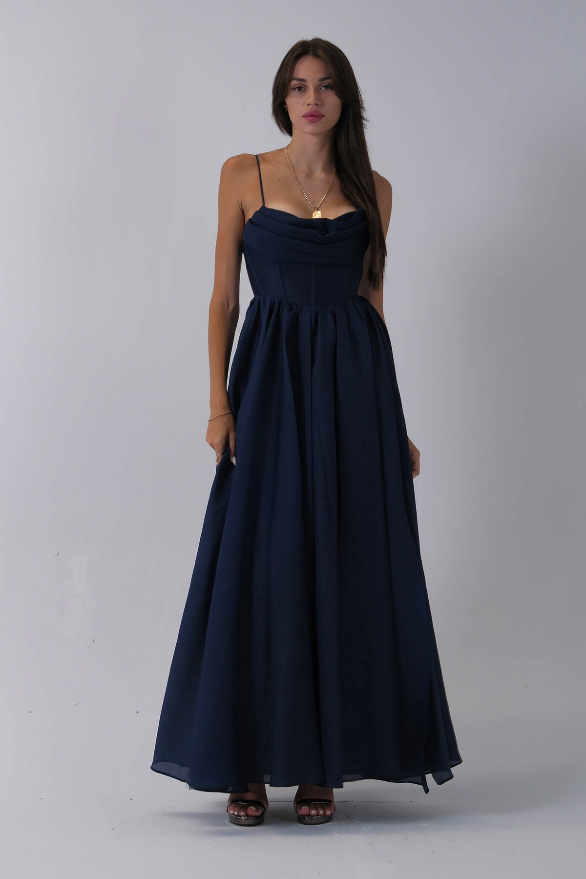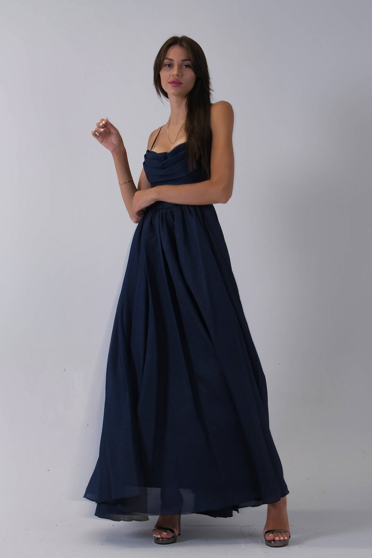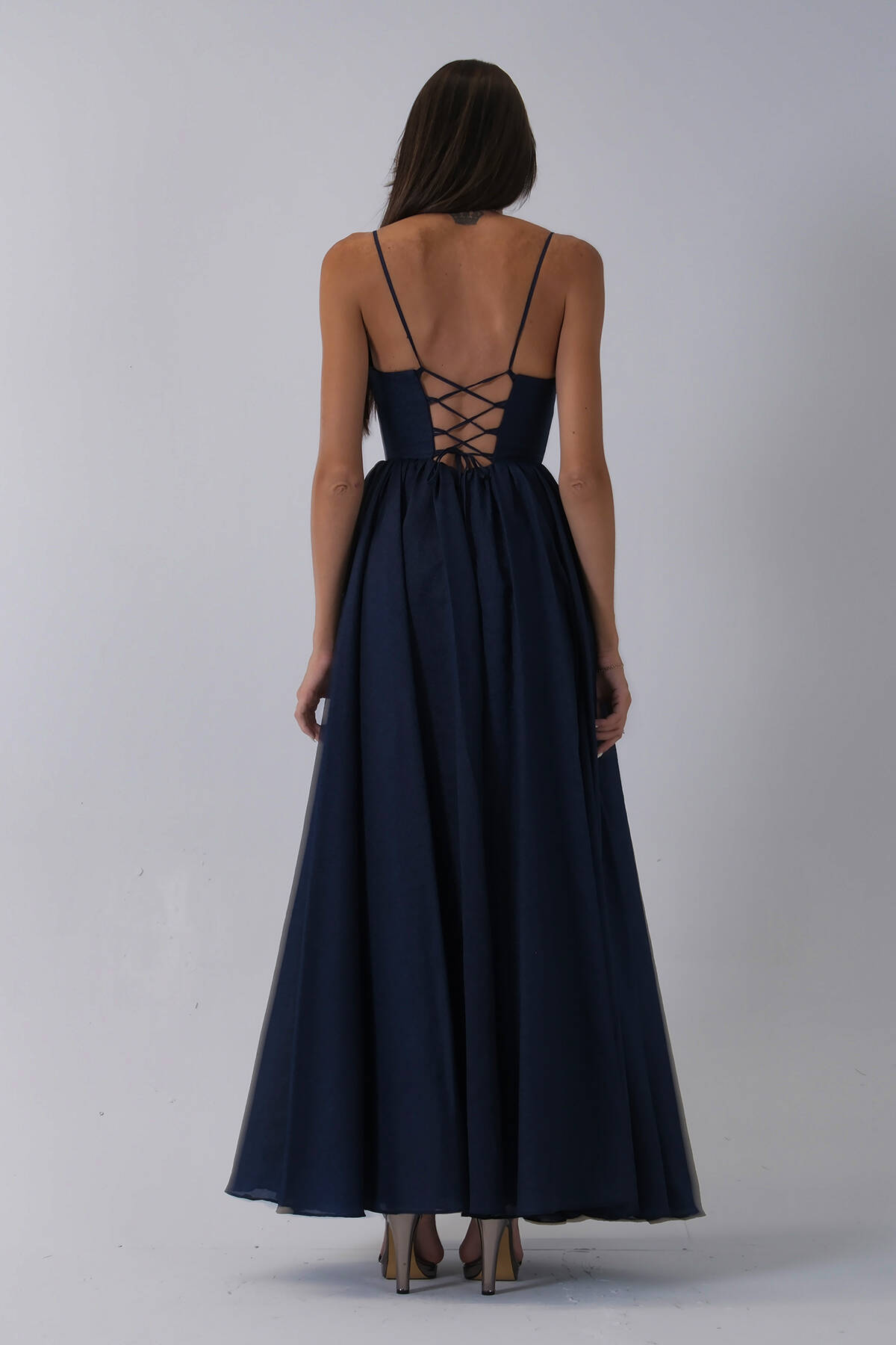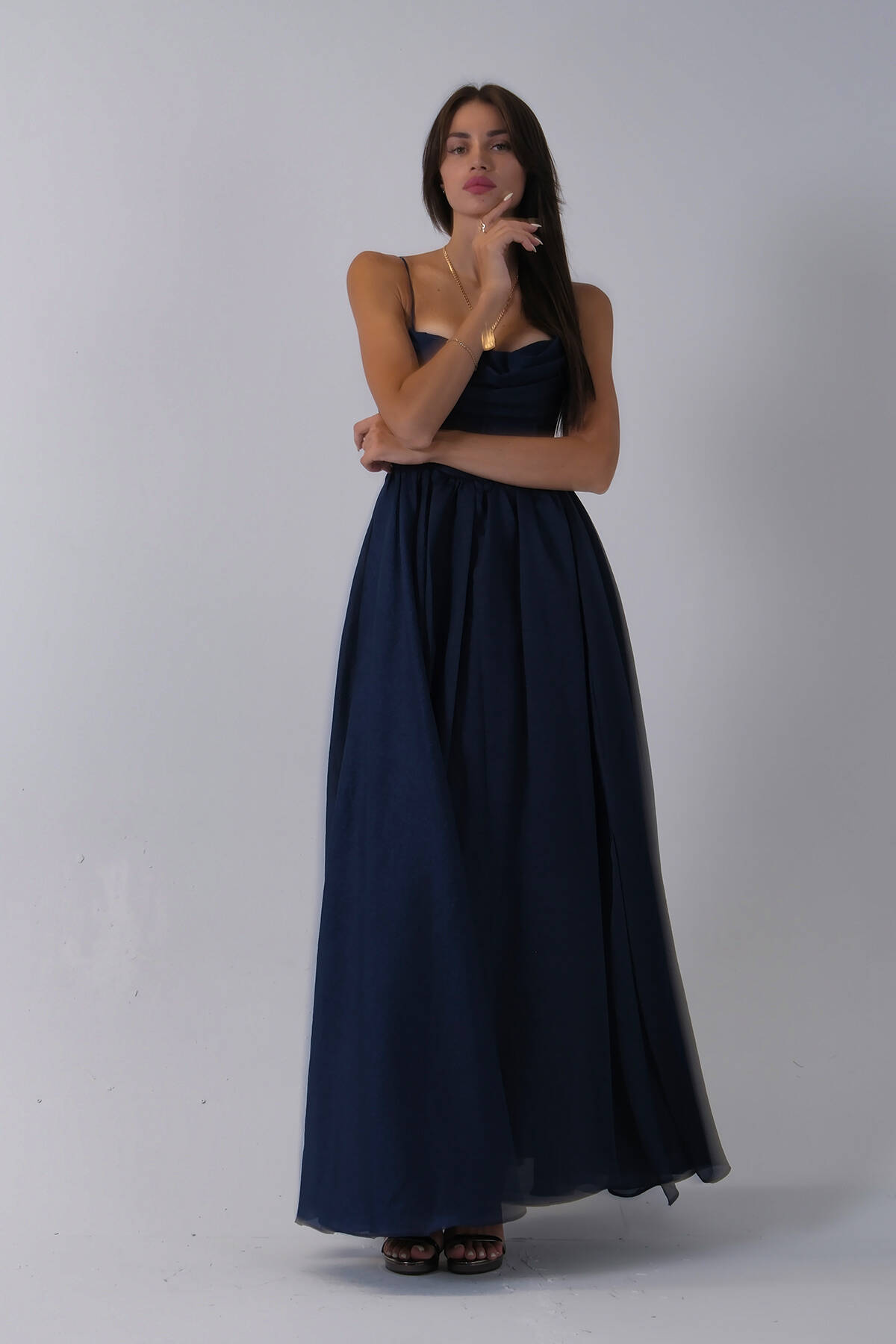 Lacivert İnce Askılı Uzun Şifon Abiye Elbise 08020031.02