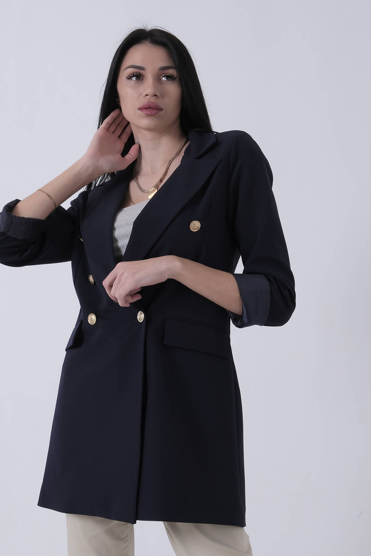 Uzun Kol Kruvaze Yaka Omuz Vatka Detaylı Düğme Kapamalı Astarlı Blazer Ceket