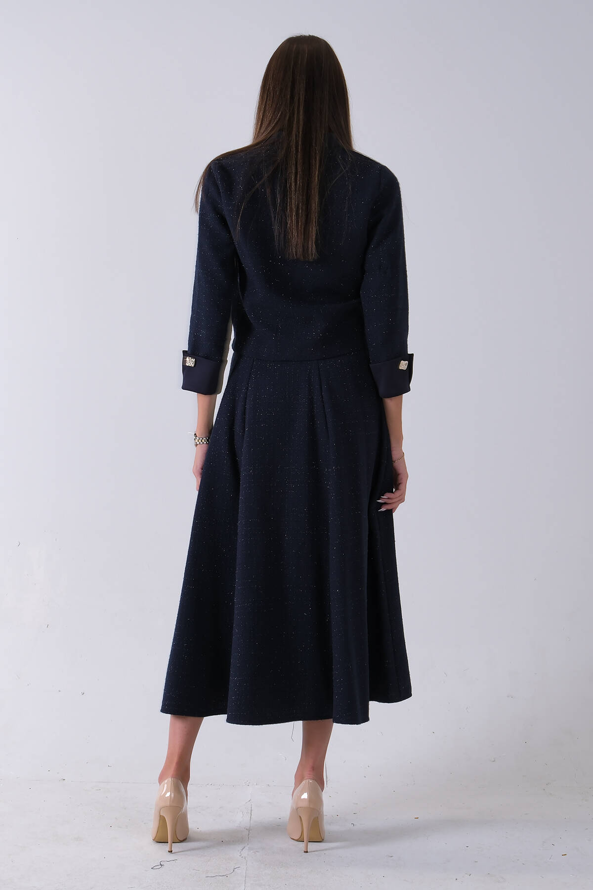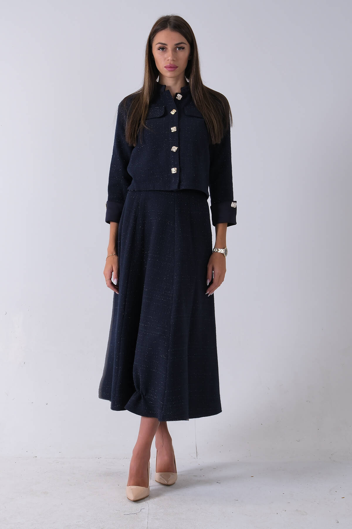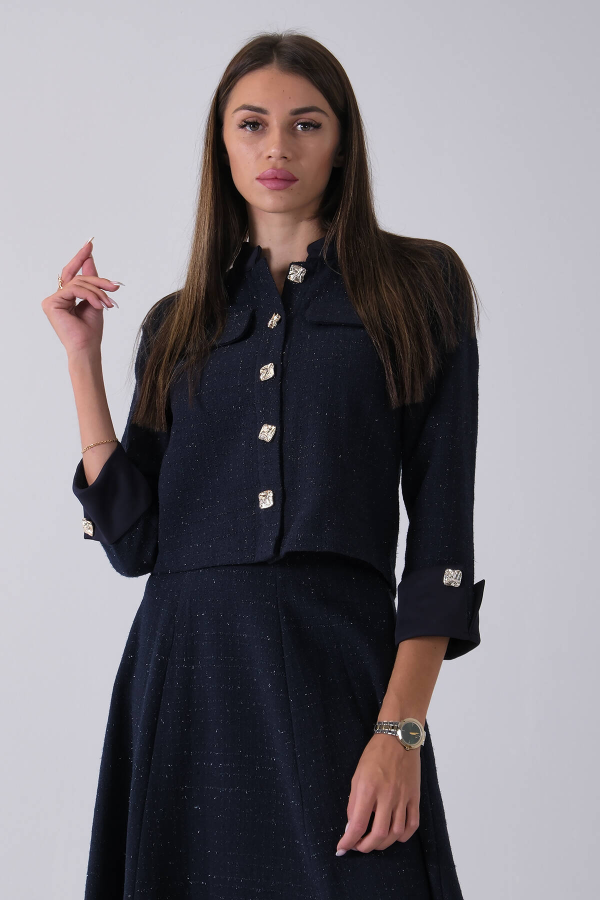 Lacivert Önü Düğme Kapamalı Crop Ceket Etekli Tüvid Takım 45950601.02