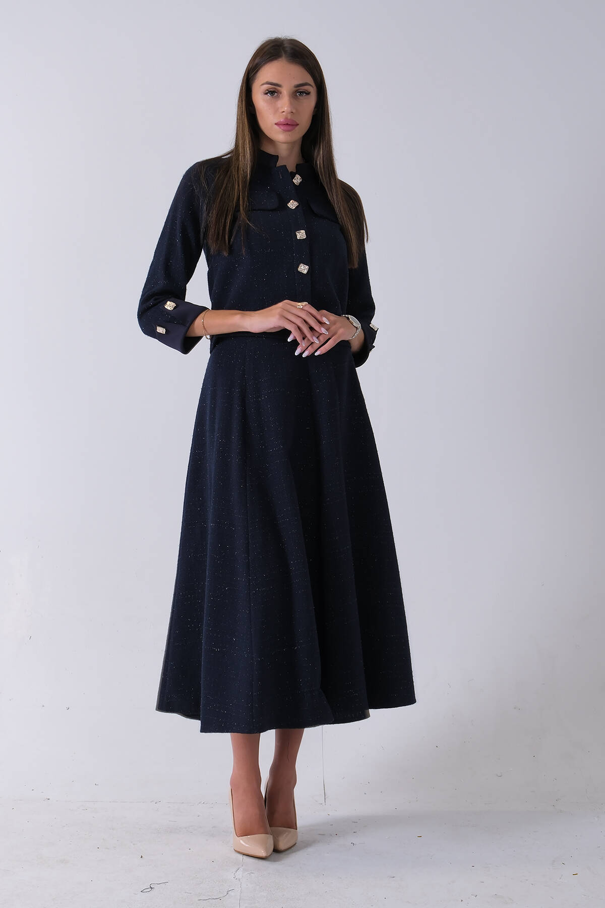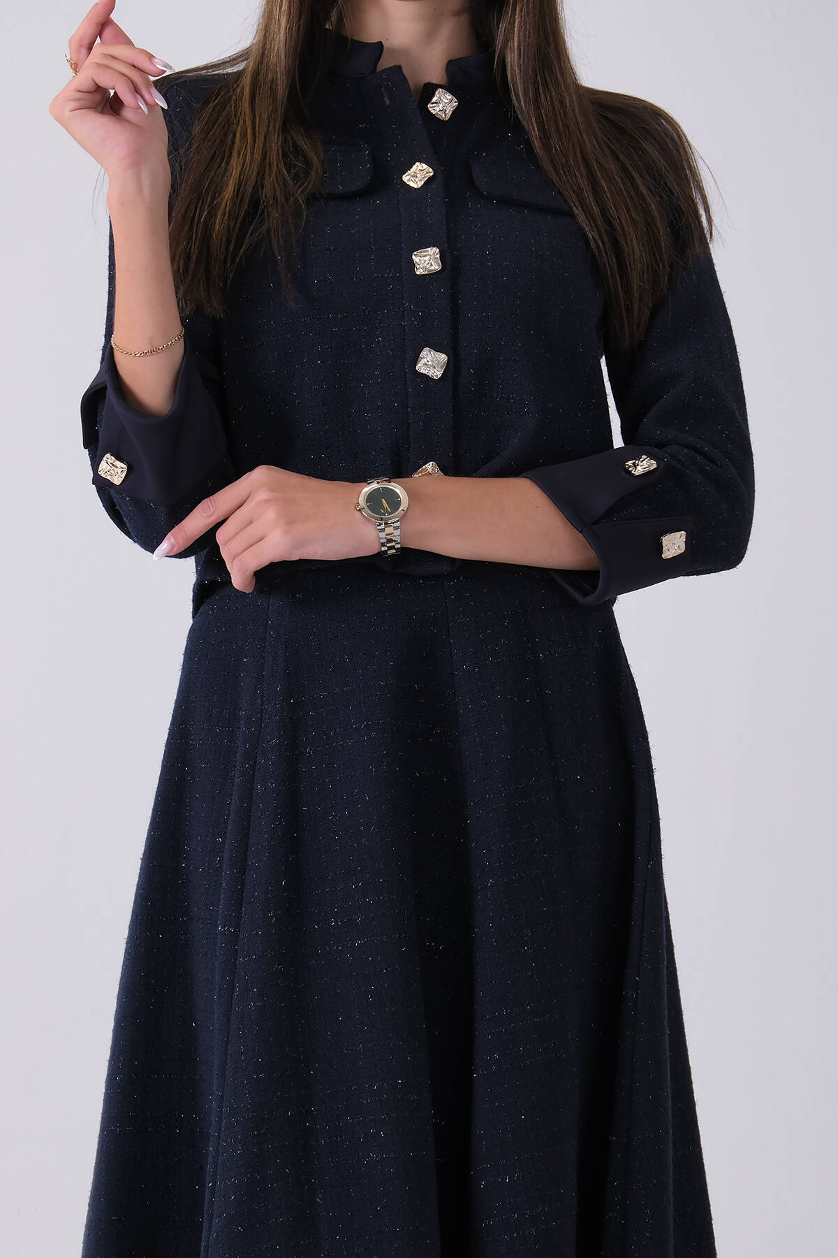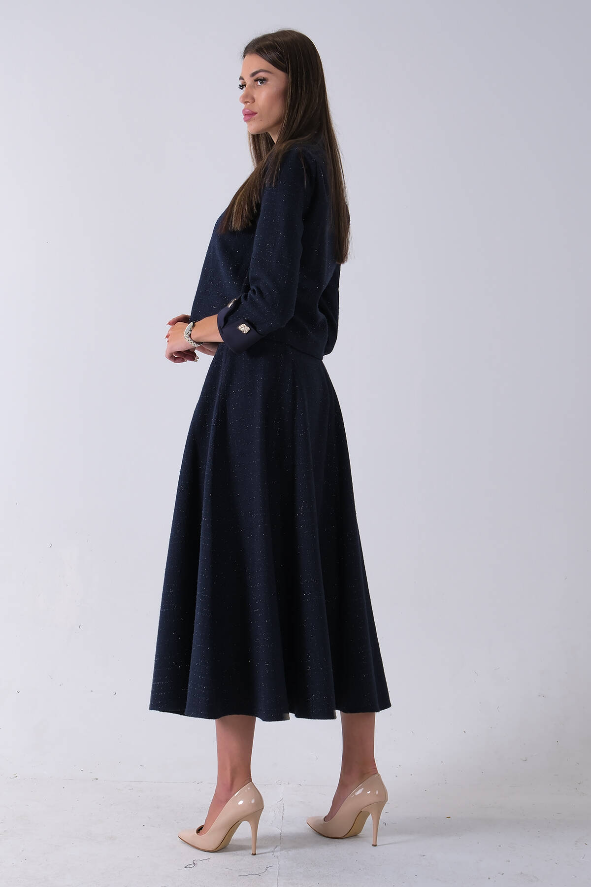 Lacivert Önü Düğme Kapamalı Crop Ceket Etekli Tüvid Takım 45950601.02