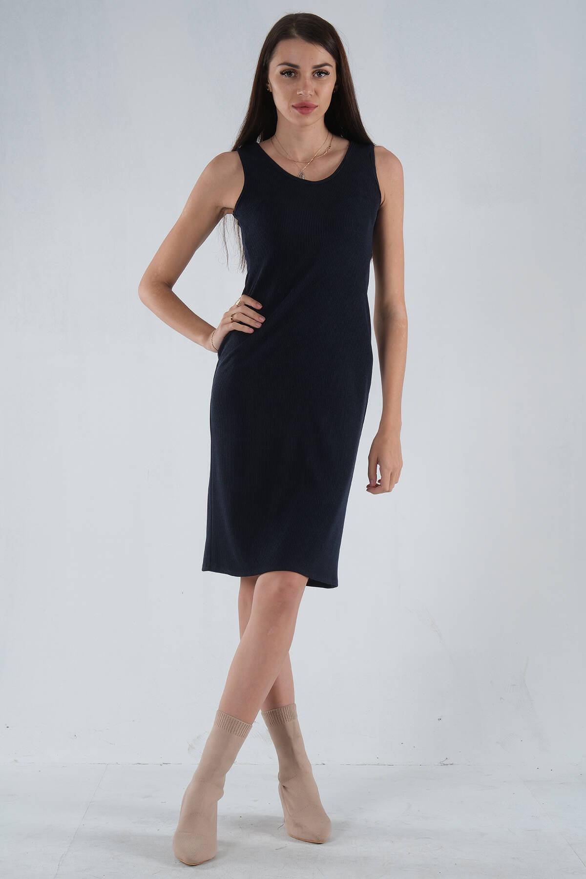 Lacivert Örme Kolsuz Triko Elbise 0104029.02