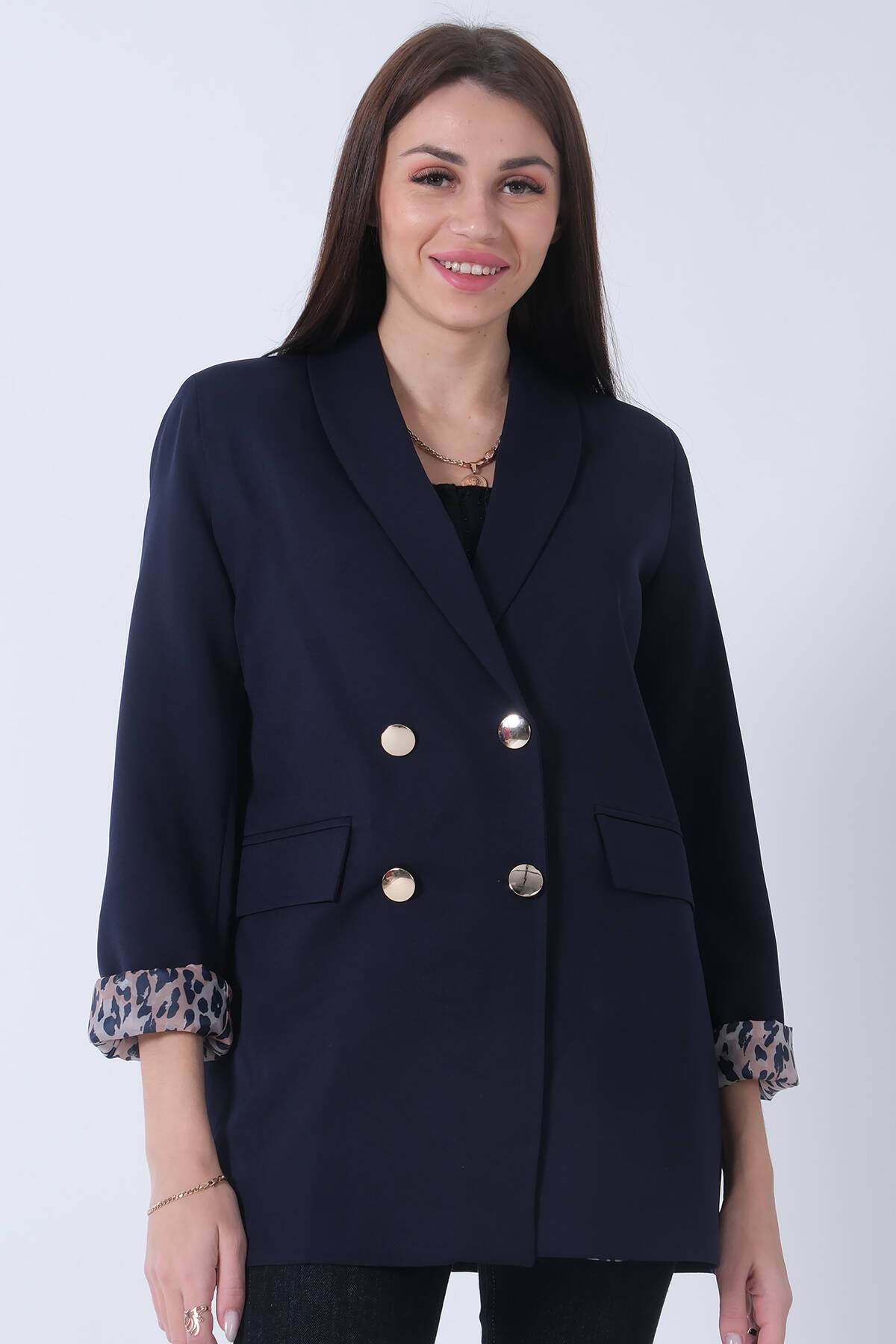 Lacivert Şal Yaka Leopar Astarlı Kruvaze Ceket 39711561.02