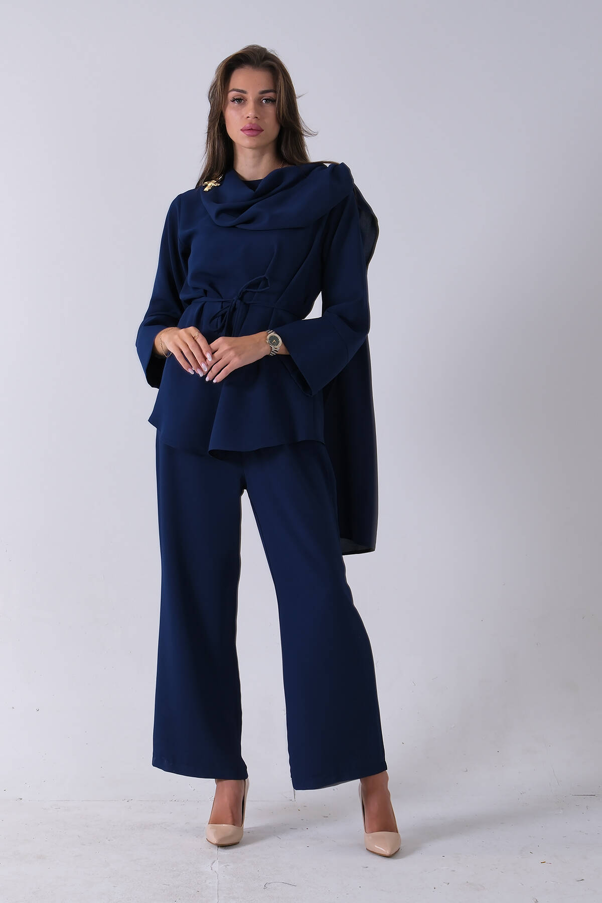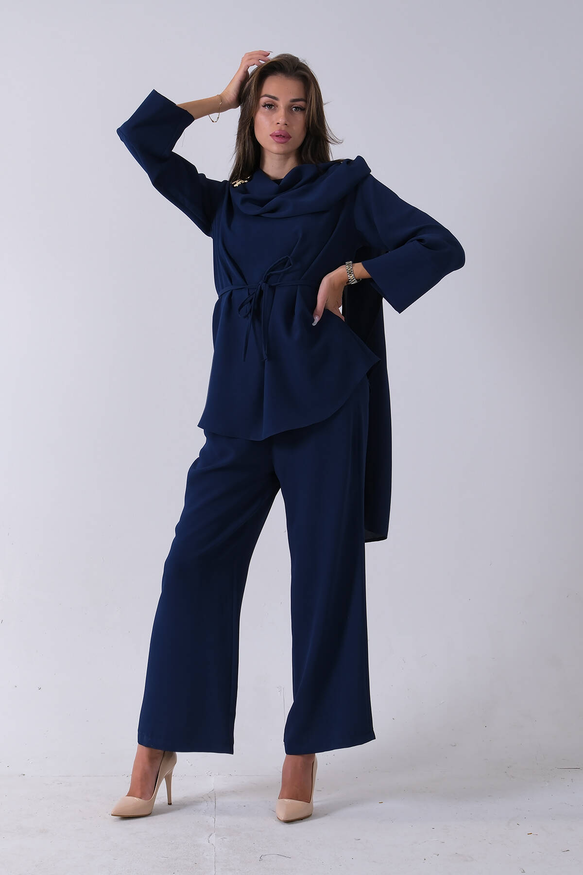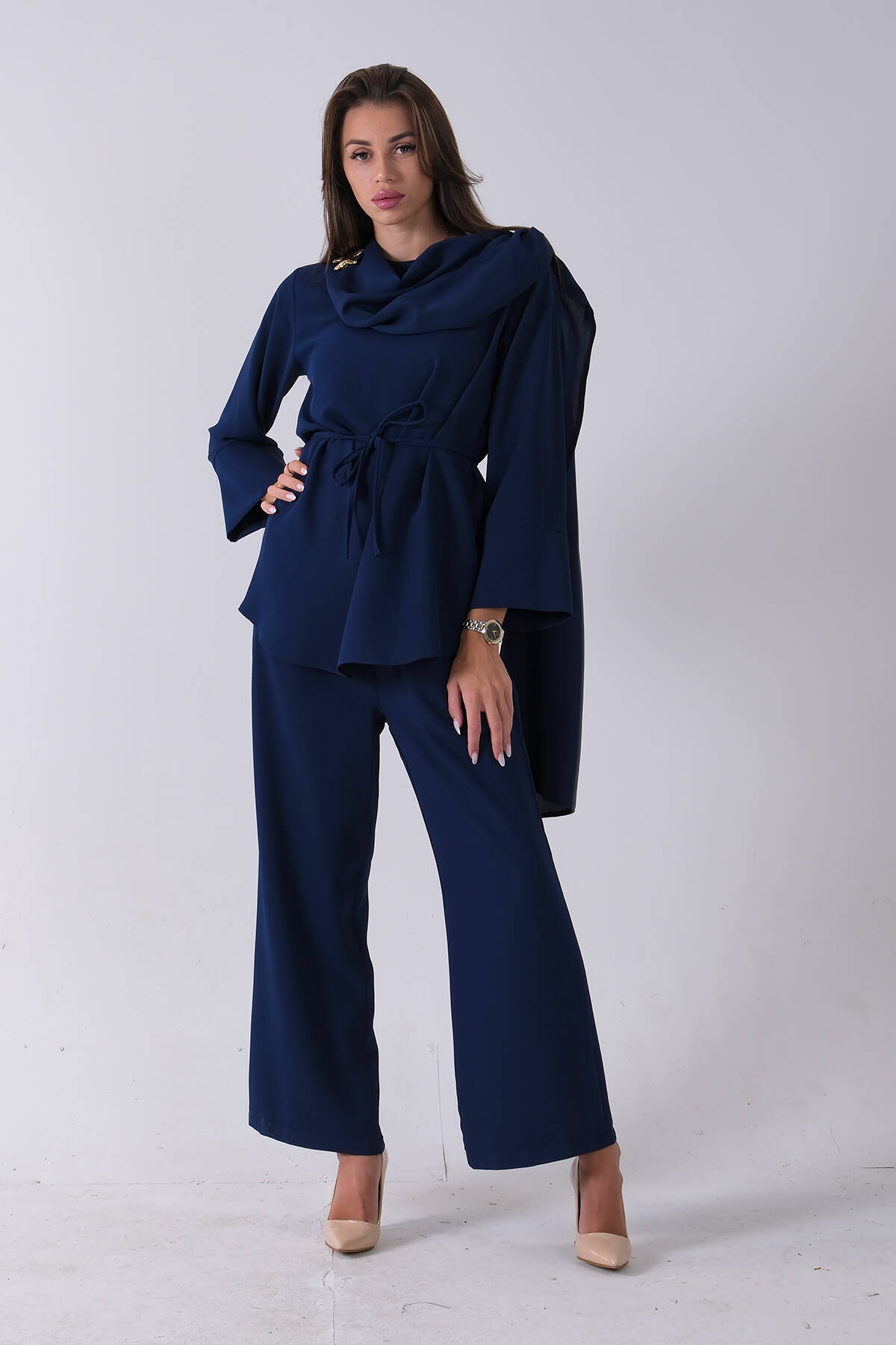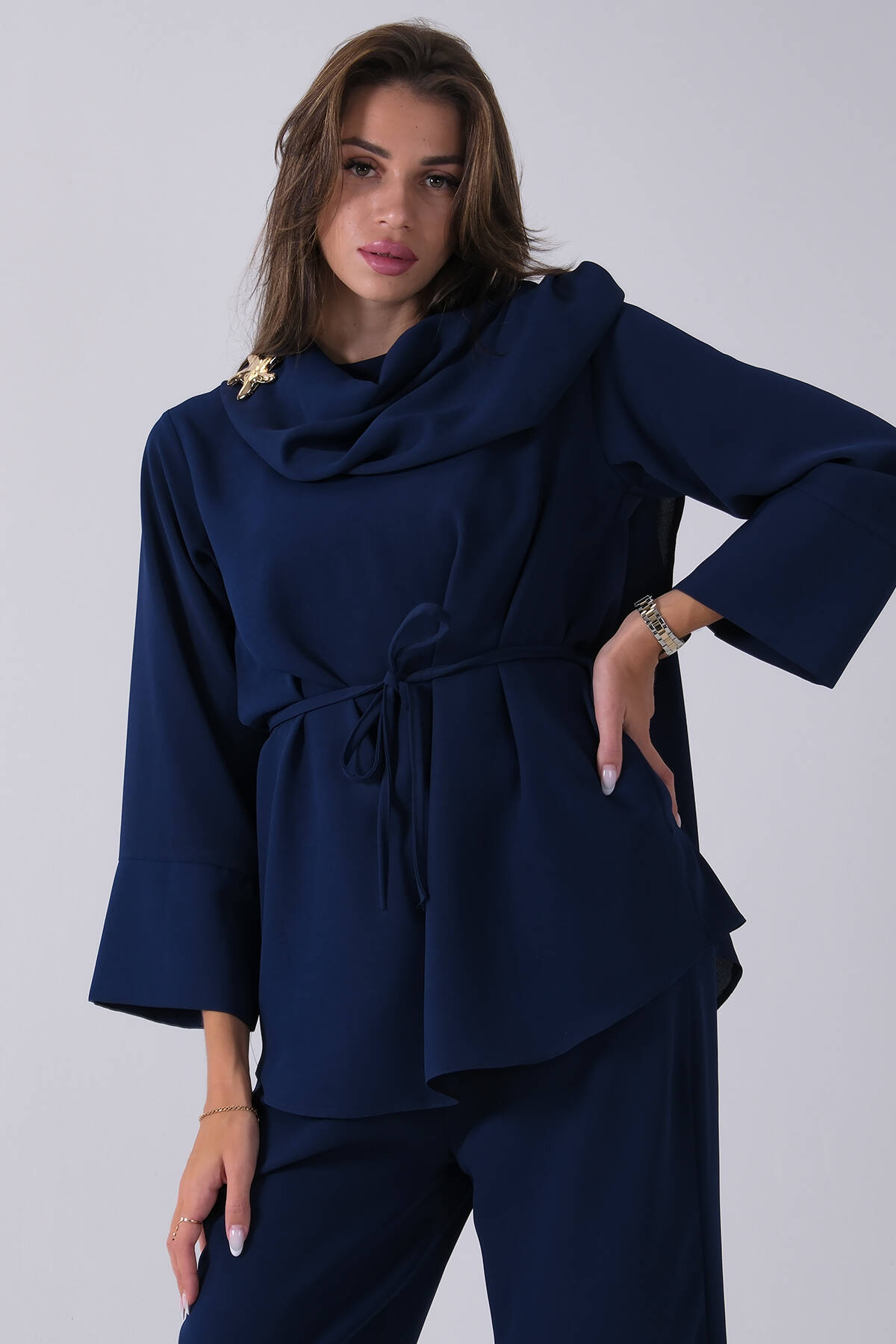 Taş Yaka ve Pantolon Paçası Taş Detaylı Tunikli Takım 4703048.50