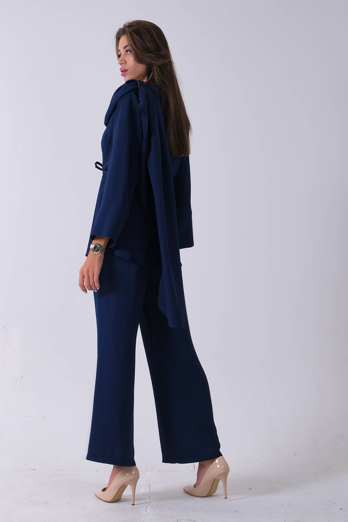 Lacivert Şal Yaka Üzeri Broş Detaylı Pantolonlu Takım 4592270.02