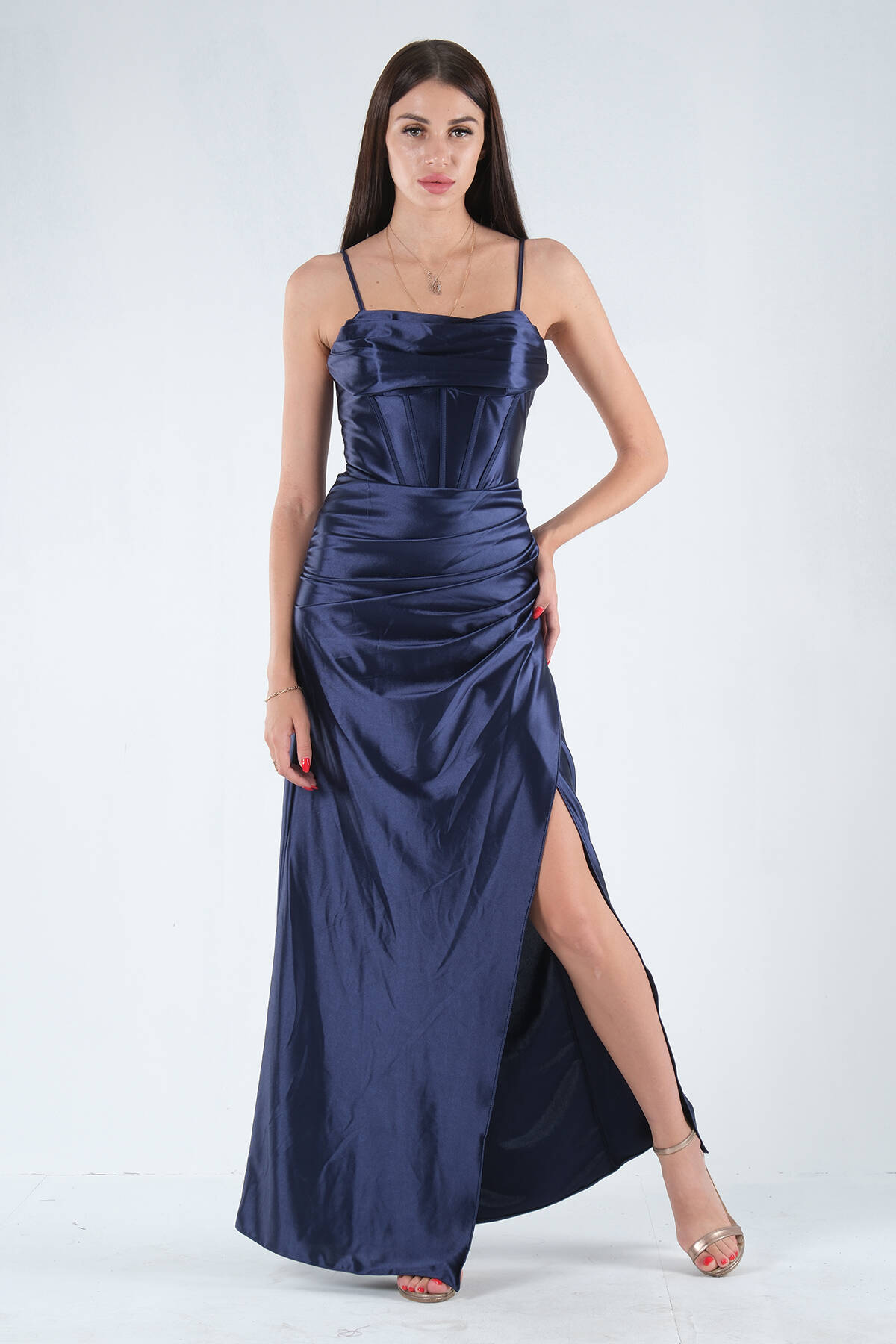 Lacivert Sırtı Bağlamalı Yırtmaçlı Abiye 4522018.02