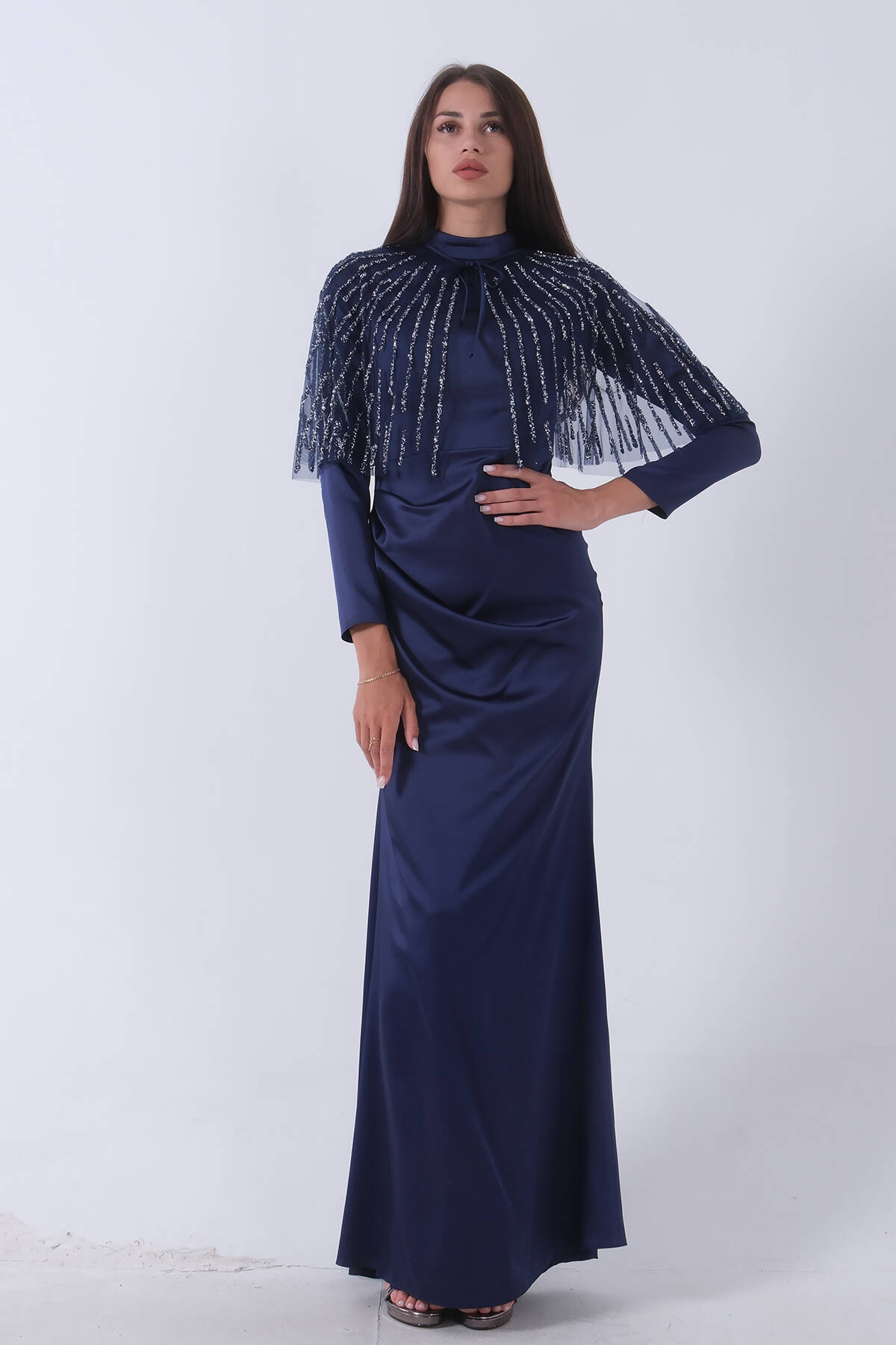 Lacivert Bilek Ucu Saten Kurdele Pullu Tesettür Abiye 6502471.02