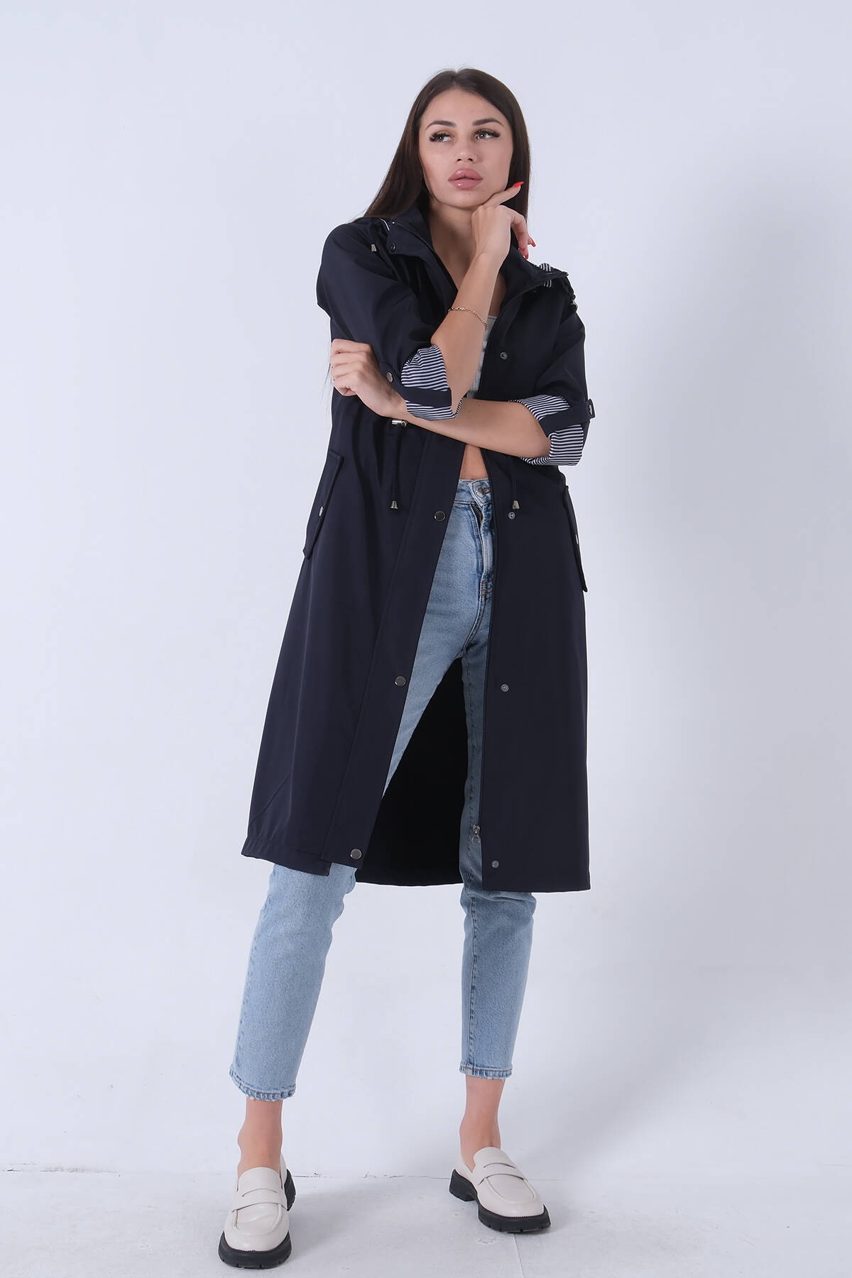 Lacivert Yandan Cepli Bel Bağlama Detaylı Kapüşonlu Trençkot 44510343.02