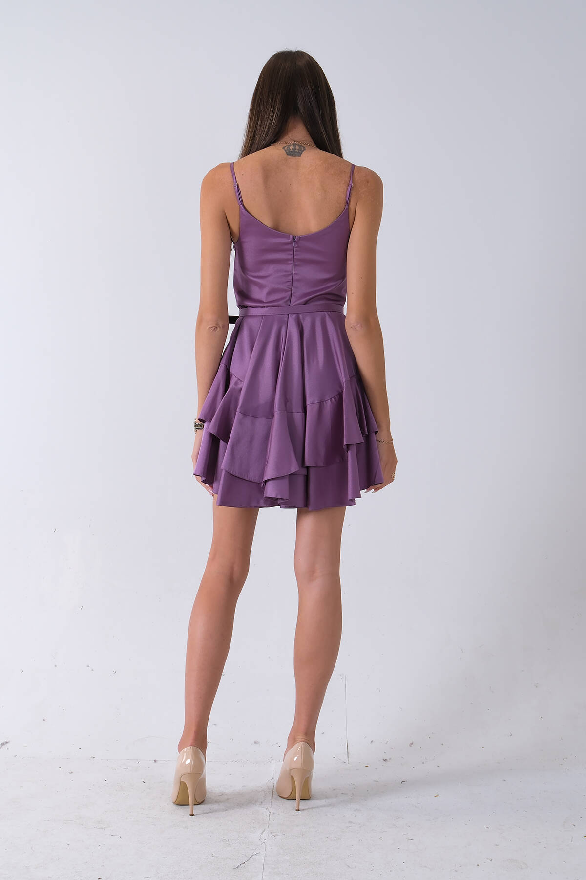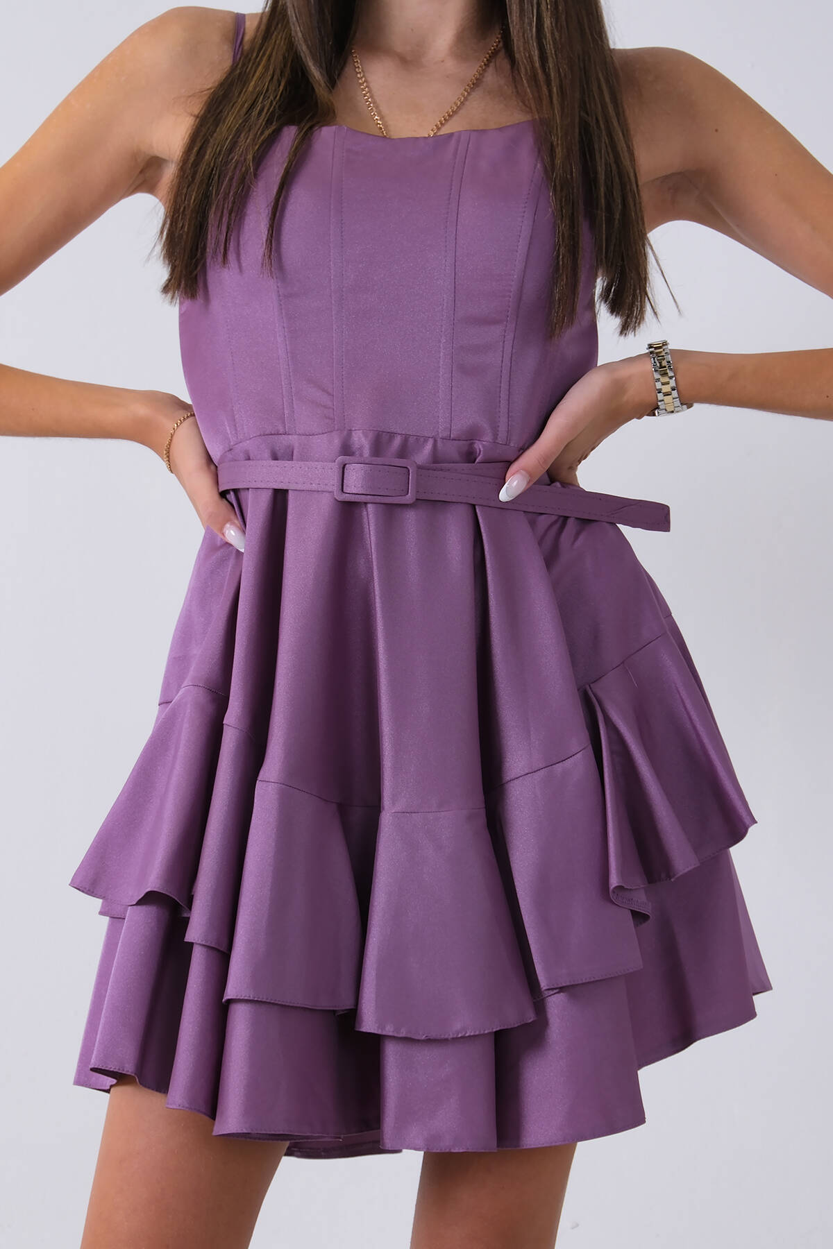 Lavanta İp Askılı Bel Kemer Bağlamalı Mini Boy Abiye 0802004.333