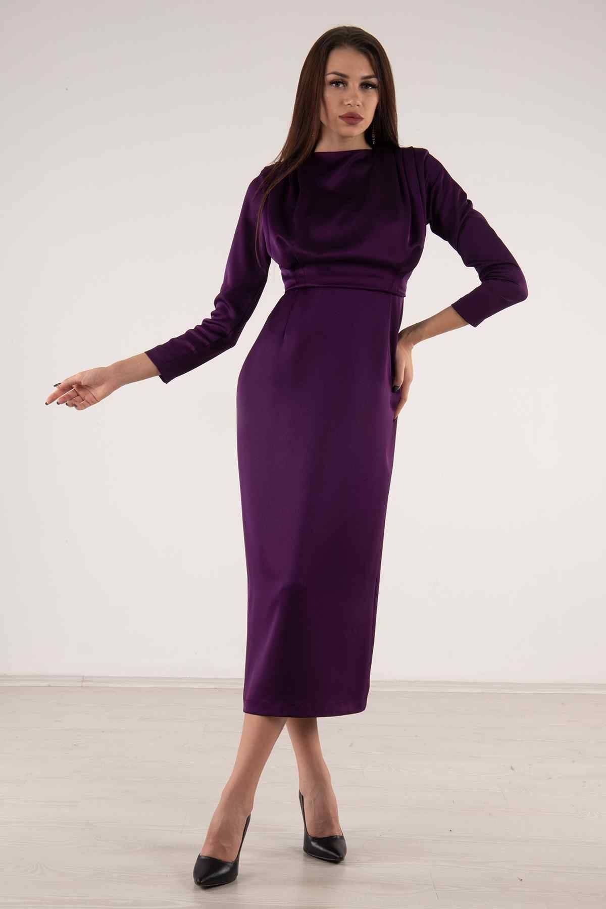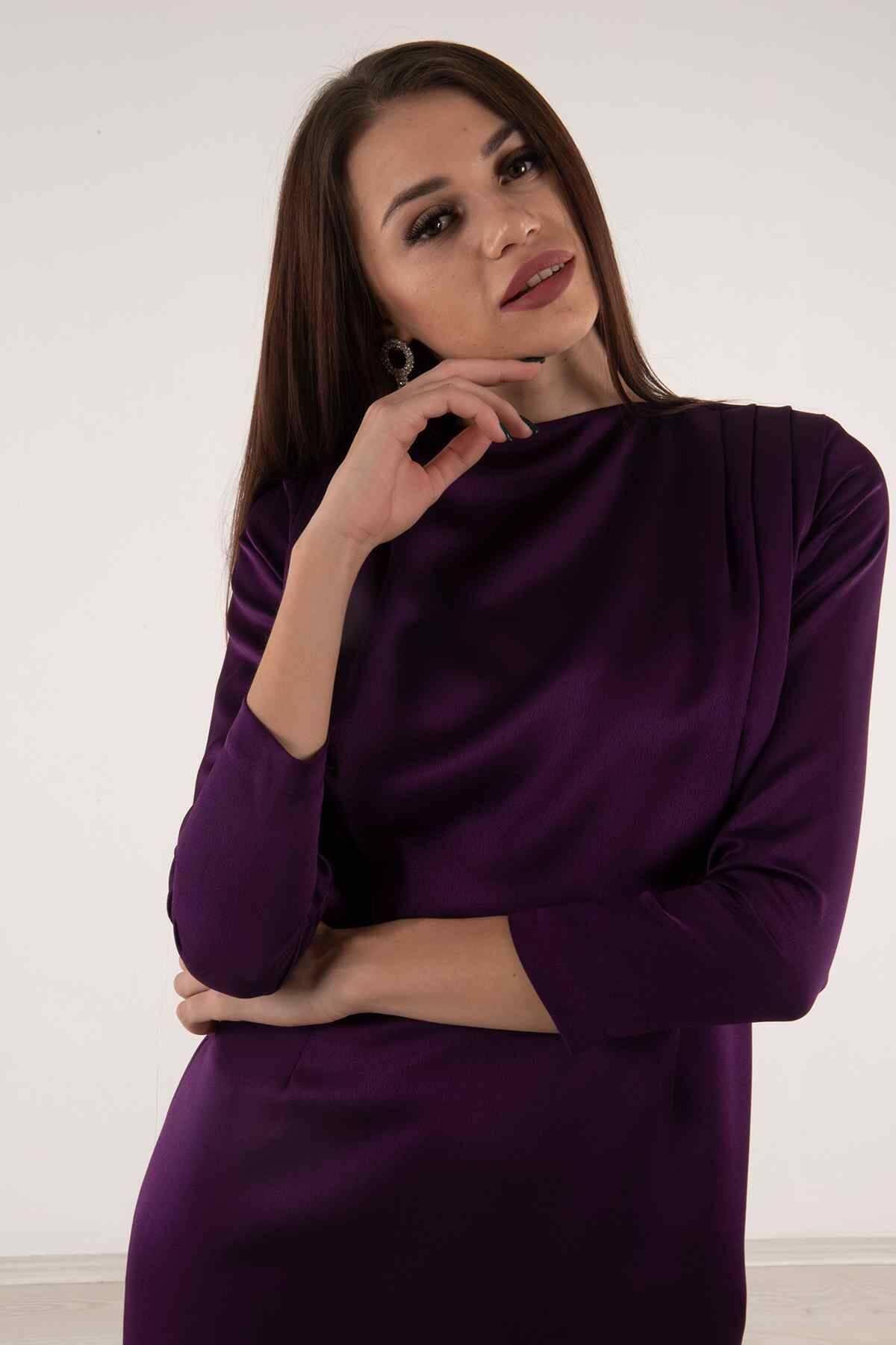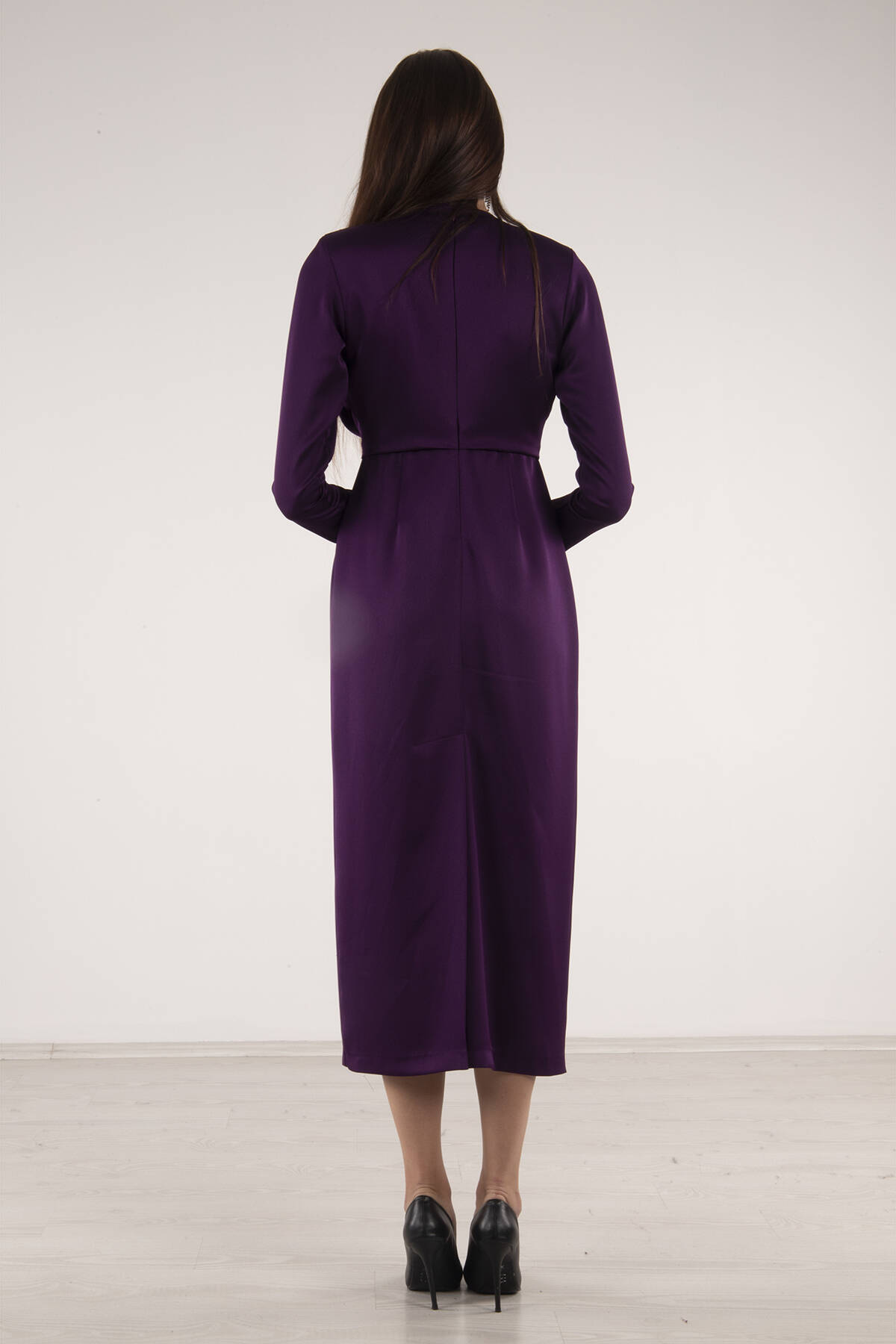 Mor Üzeri Pilise Detaylı Saten Tesettür Abiye Elbise 6502300.03