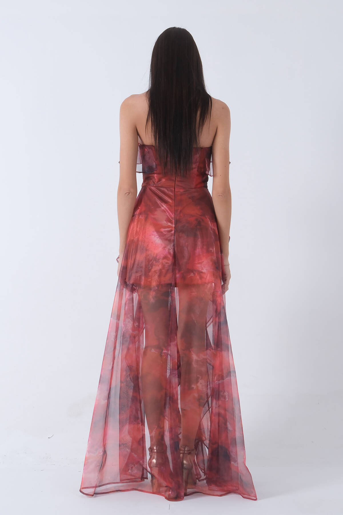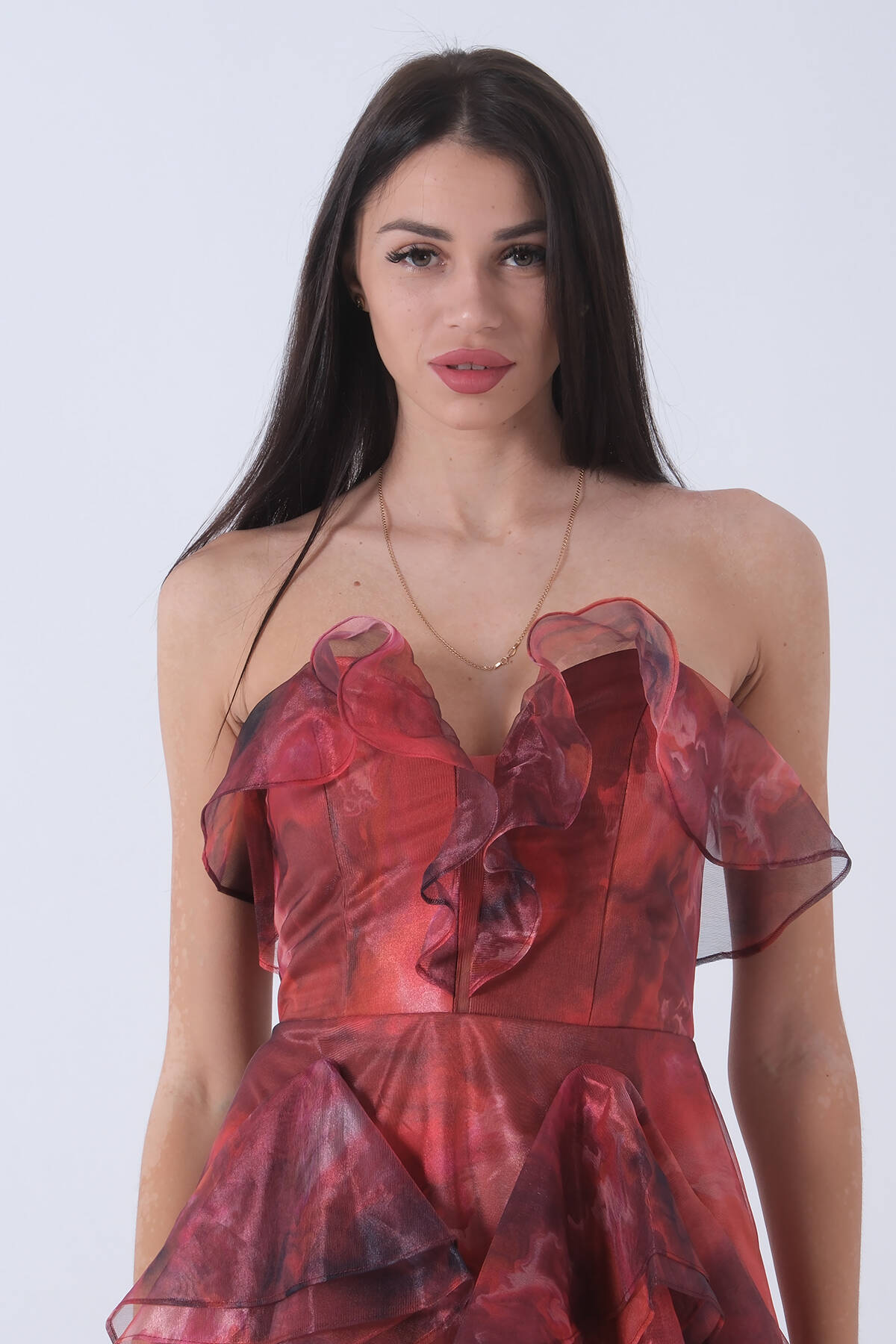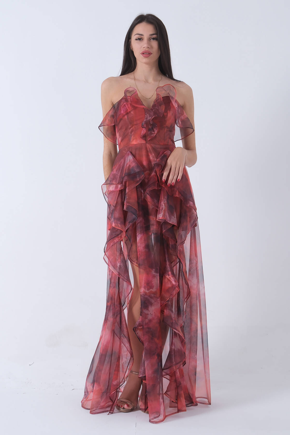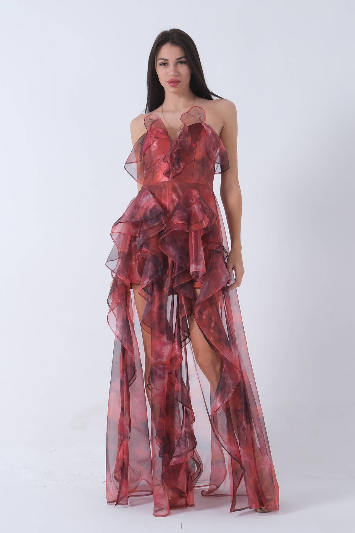 Oranj Fırfırlı Tül Şifon Abiye Elbise 0802000.24