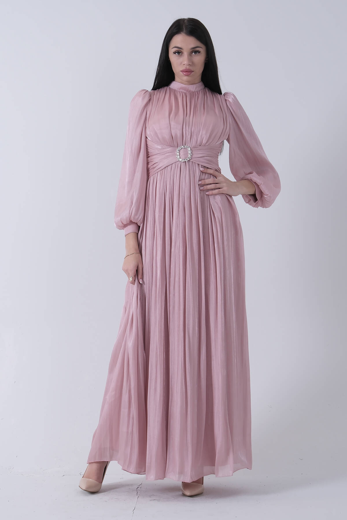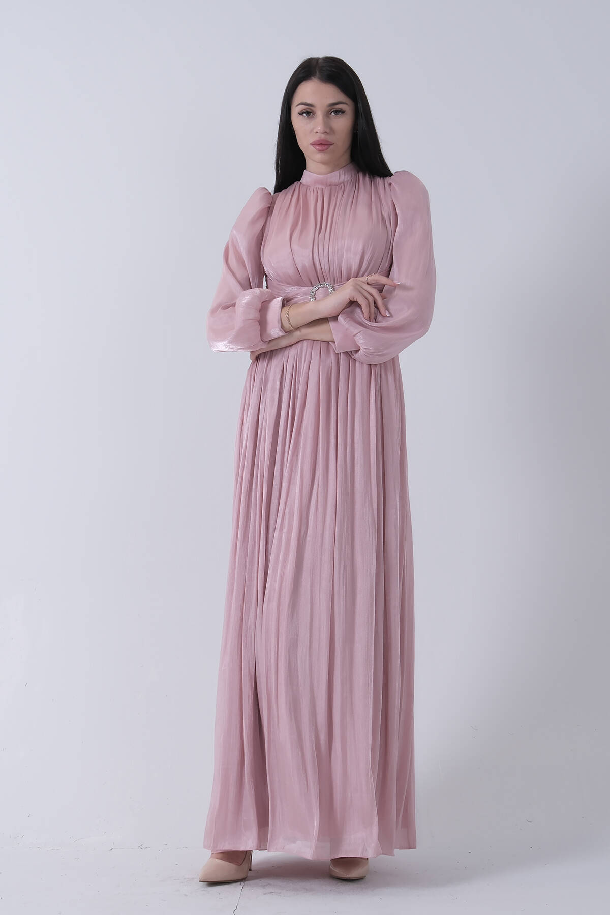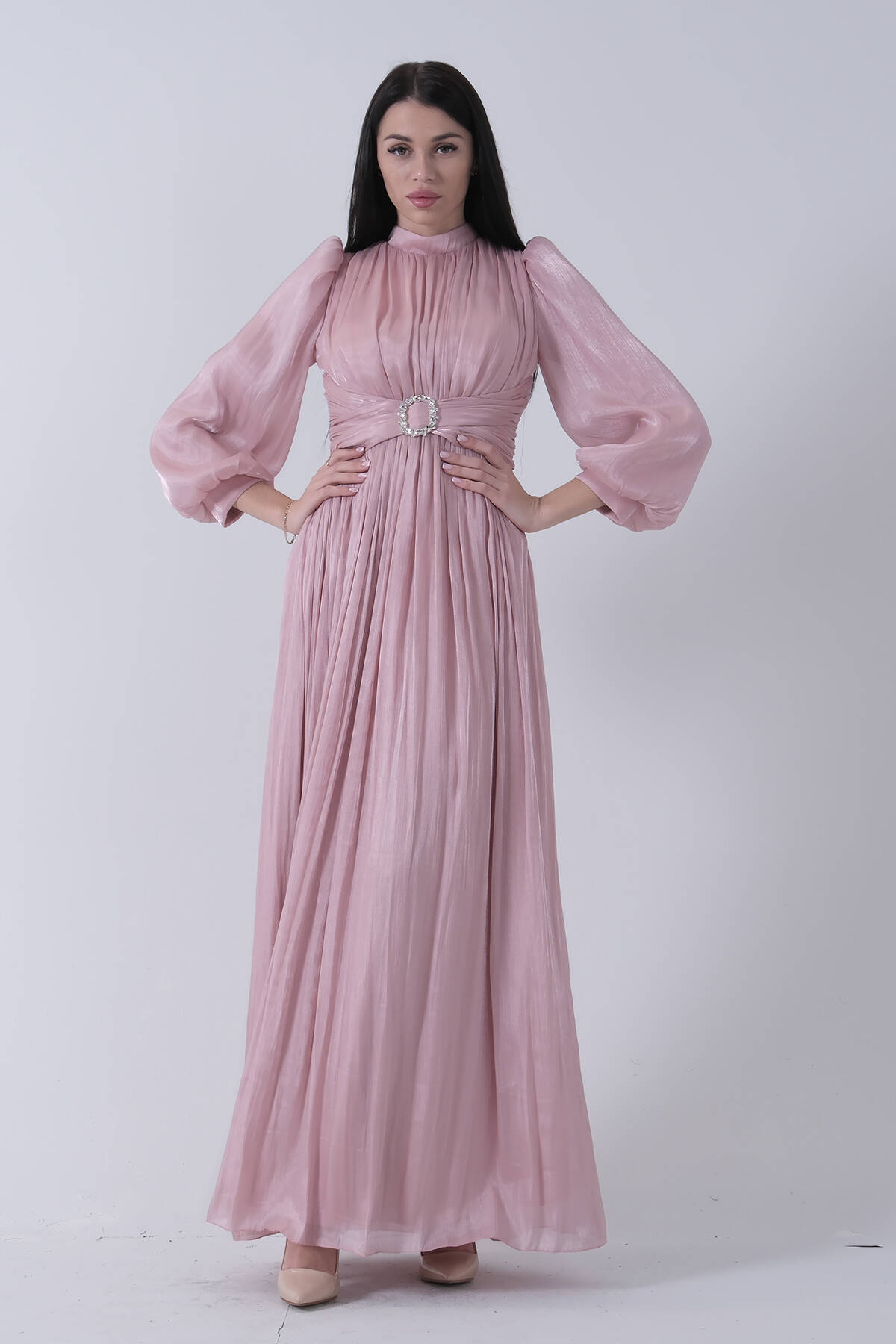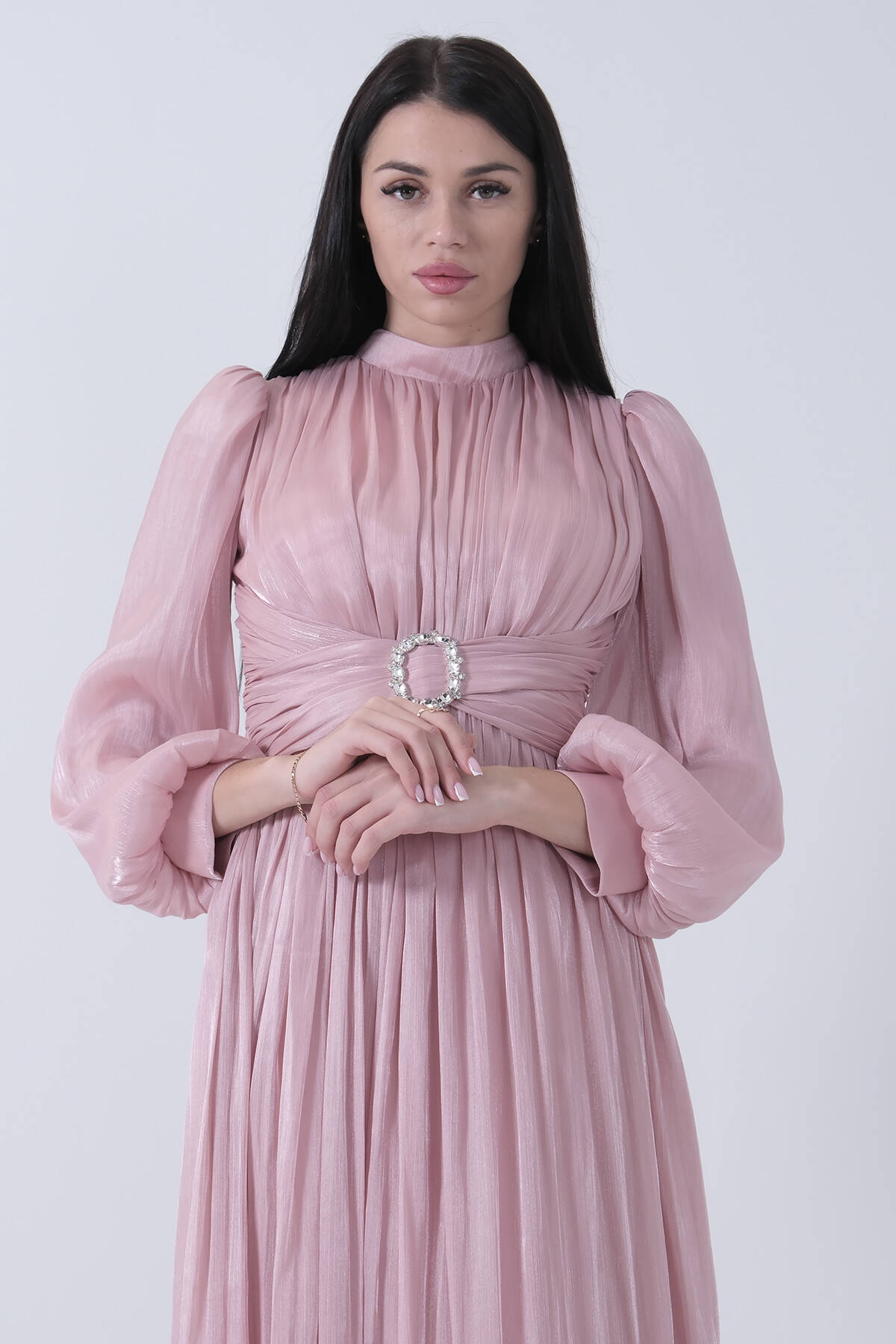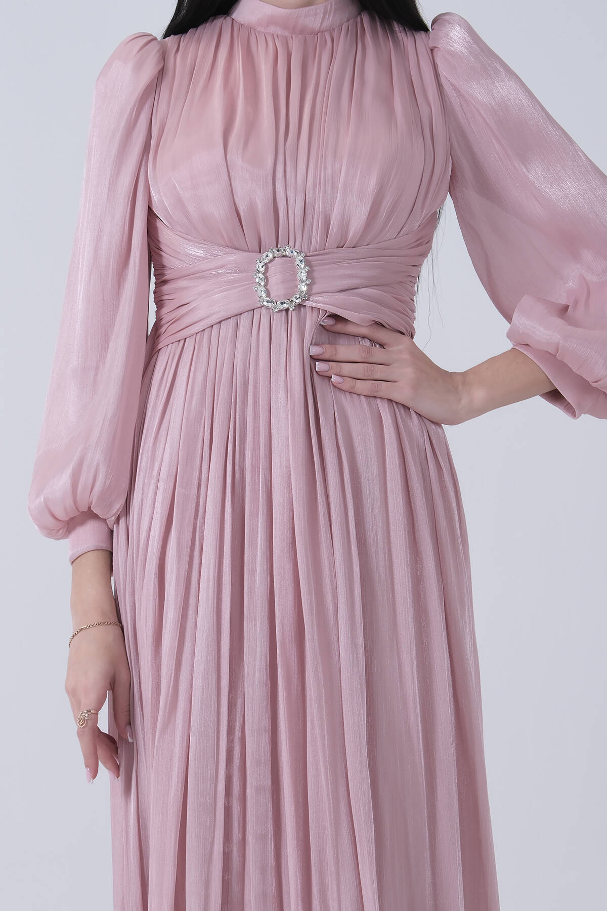 Pudra Beli Toka Aksesuarlı Bisiklet Yaka Tesettür Abiye 6502493.79