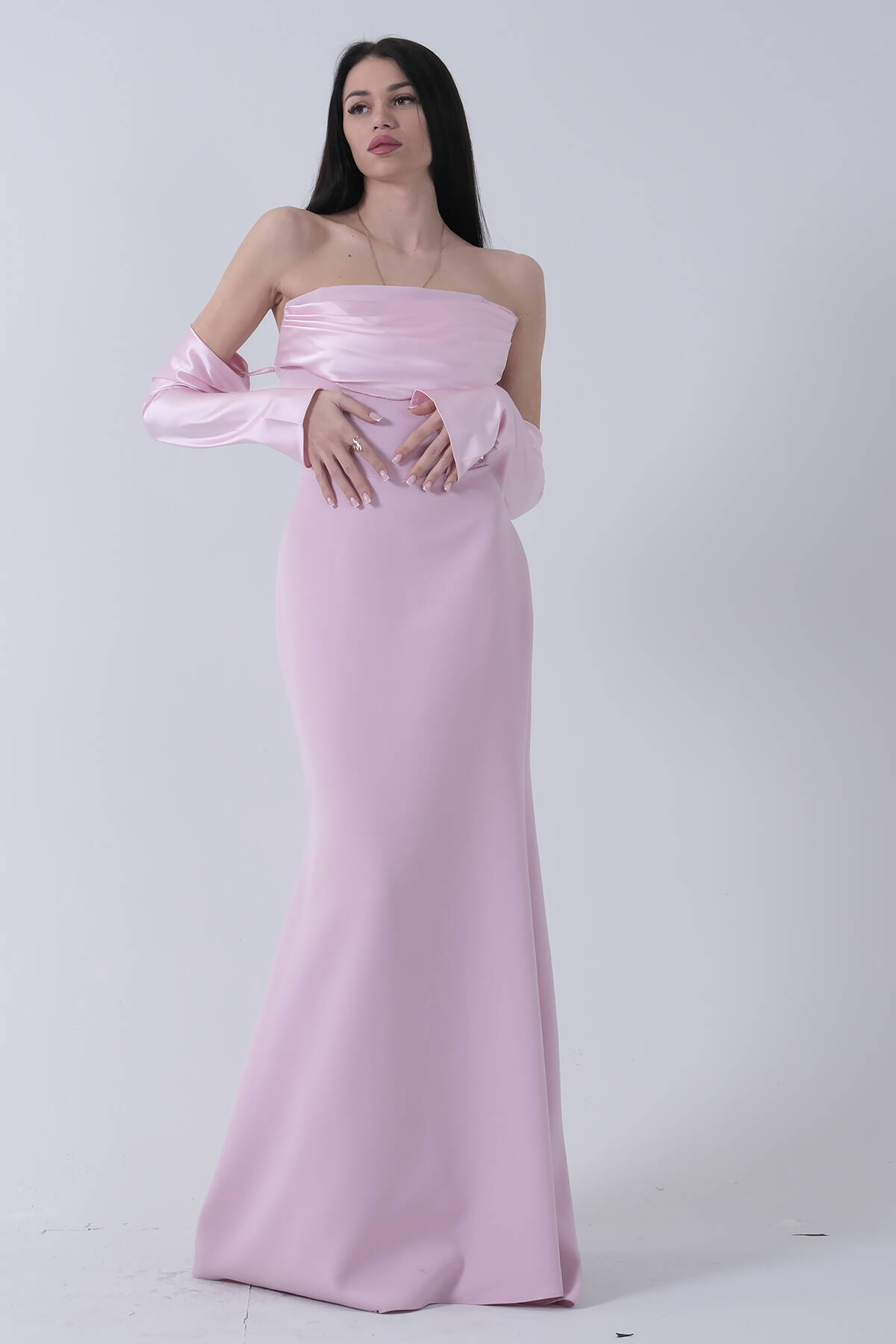 Pudra Drapeli Düğme Detaylı Uzun Abiye 9705361.79