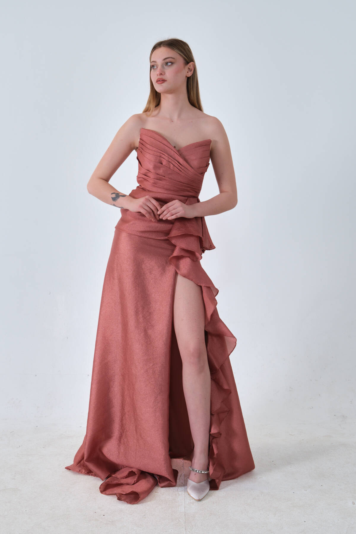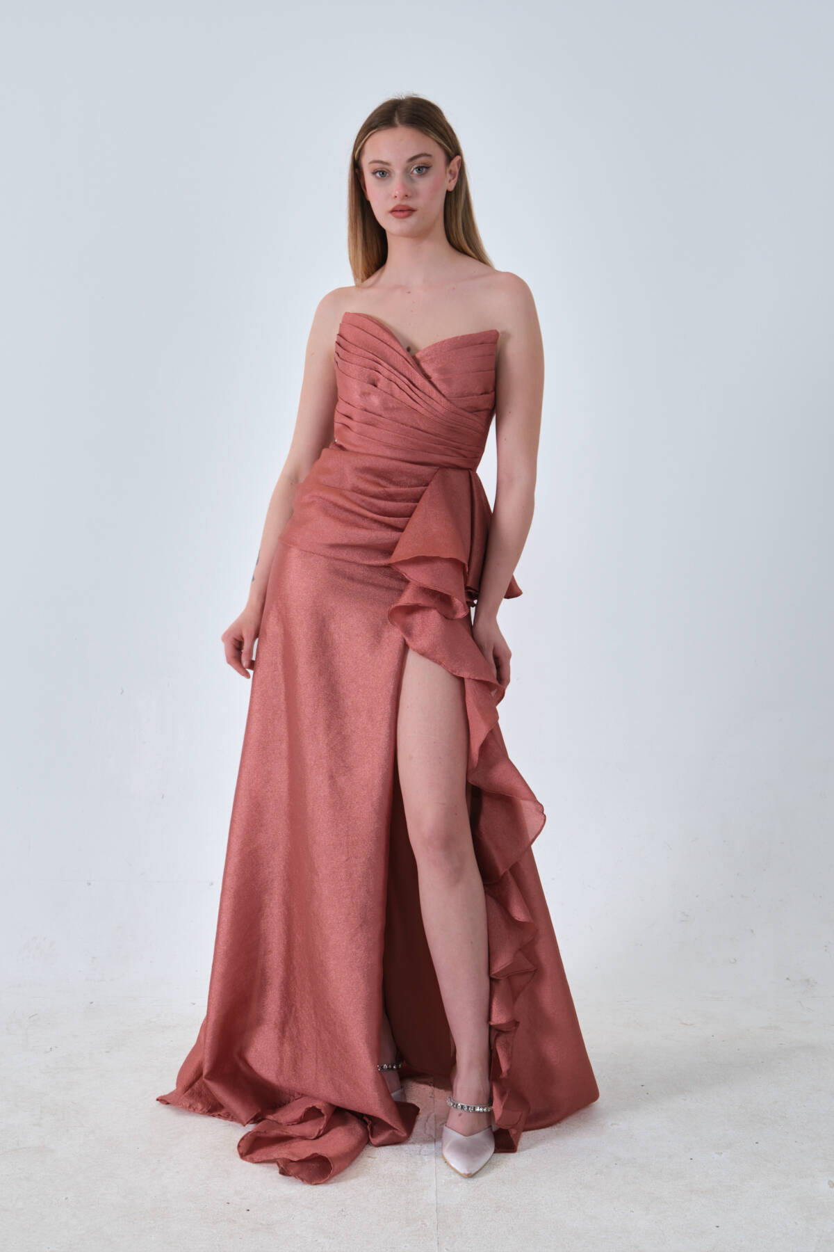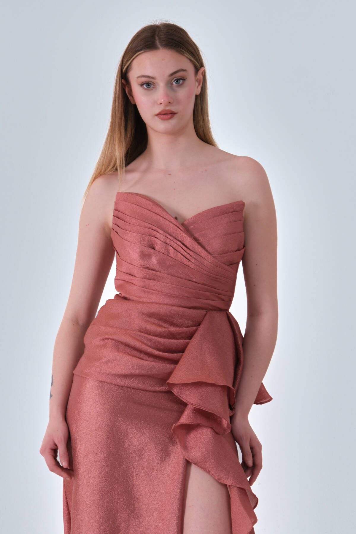 Pudra Önü Fırfırlı Straplez Abiye 0801184.79