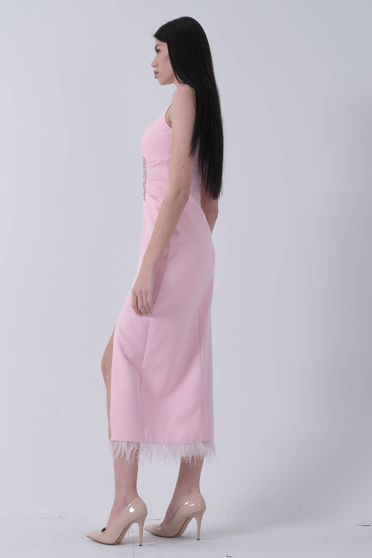 Pudra Önü Taş Detaylı Yırtmaçlı Tüy Detaylı Abiye 9705402.79