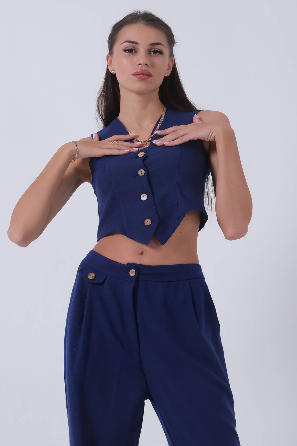 Saks Keten Yelekli Takım 0106321.26