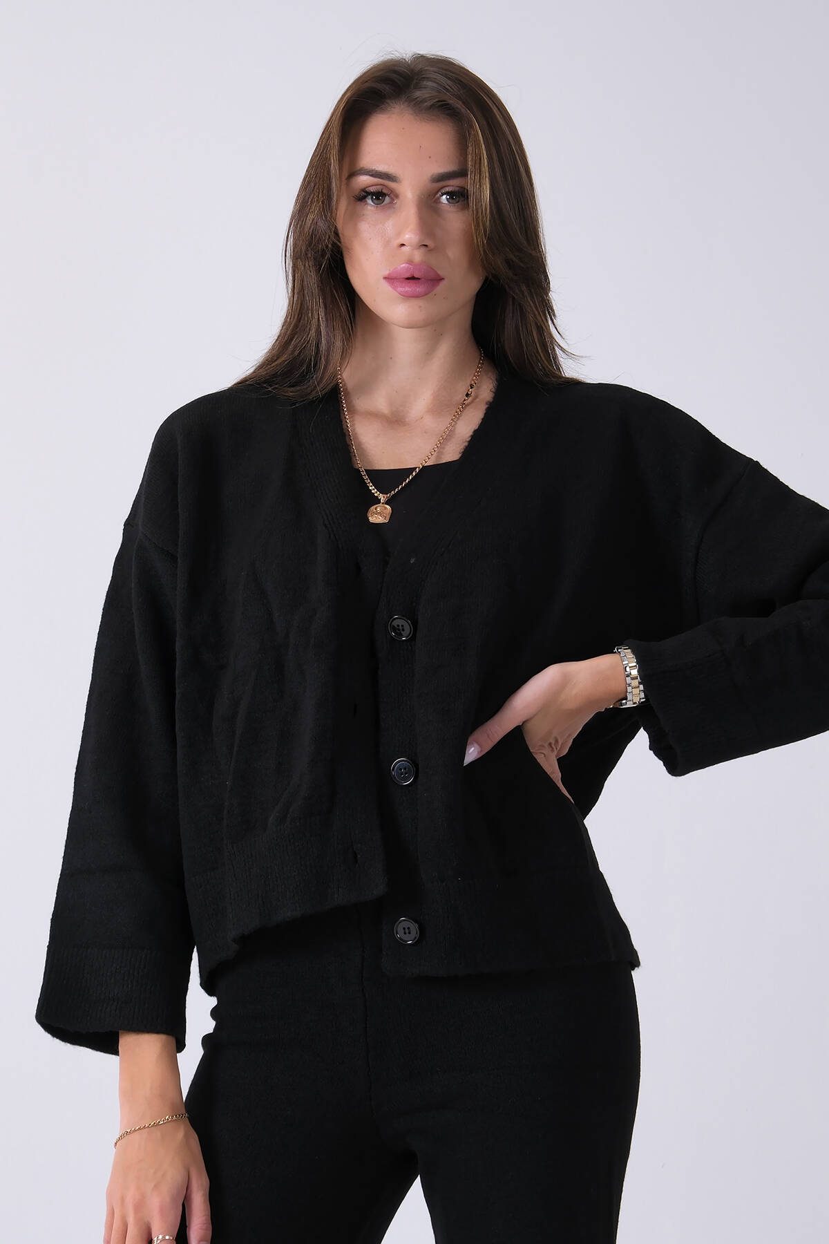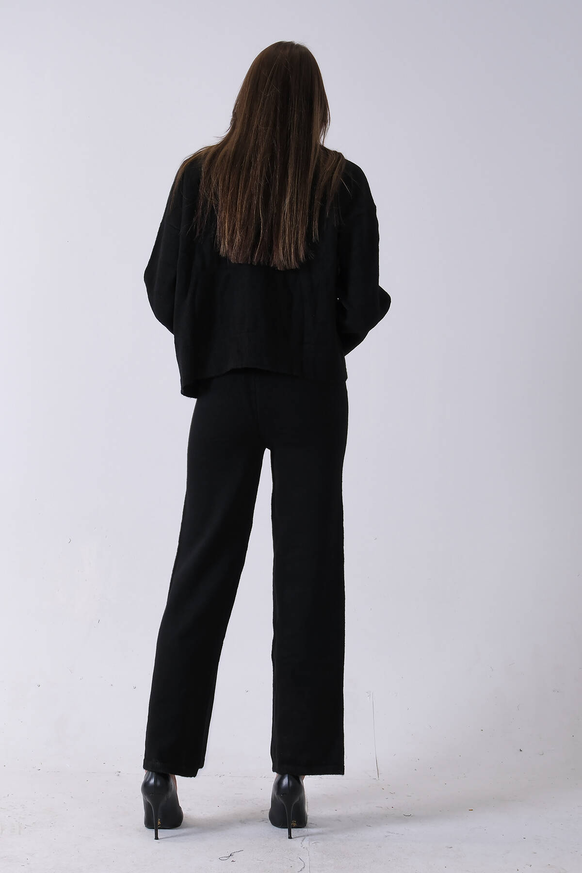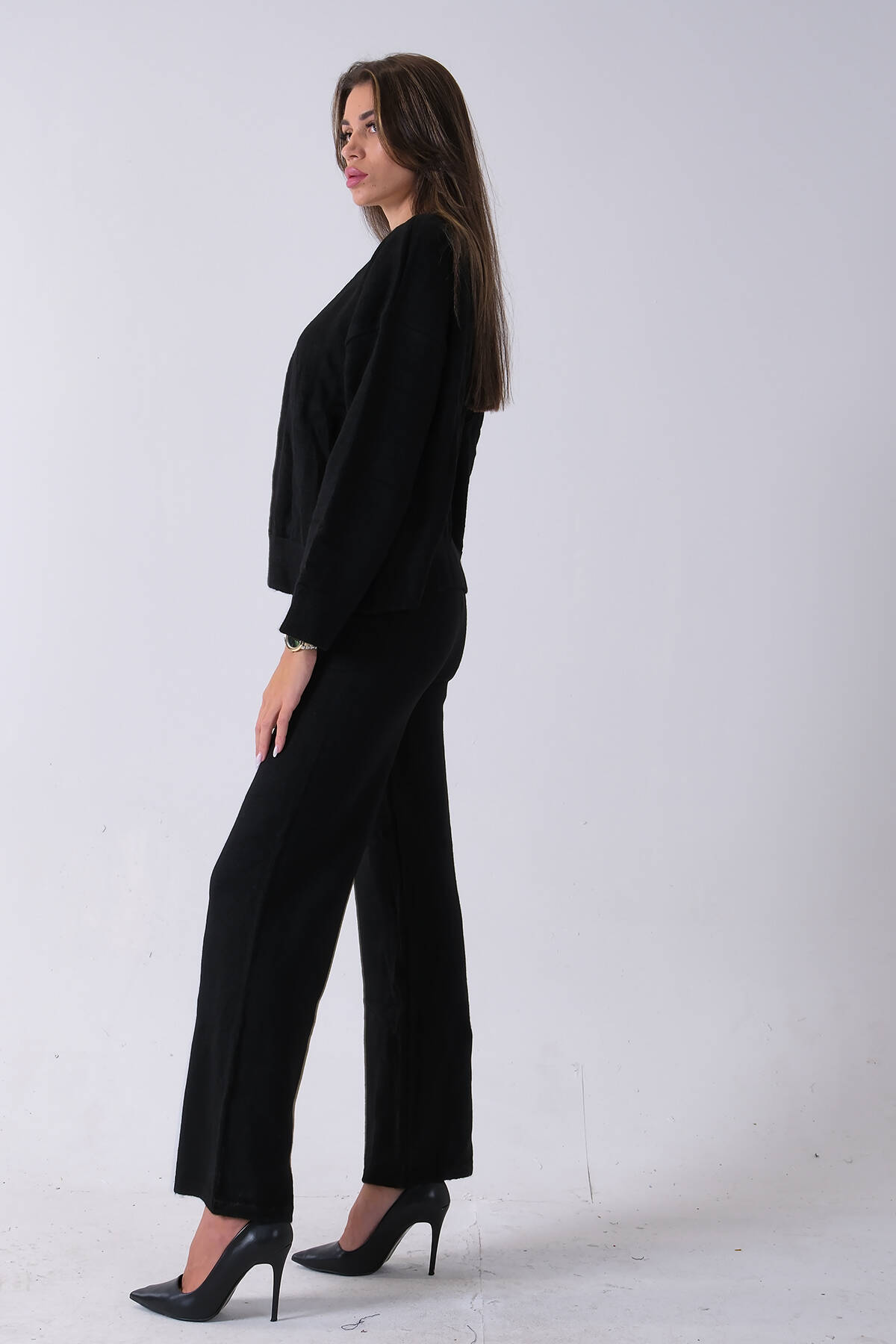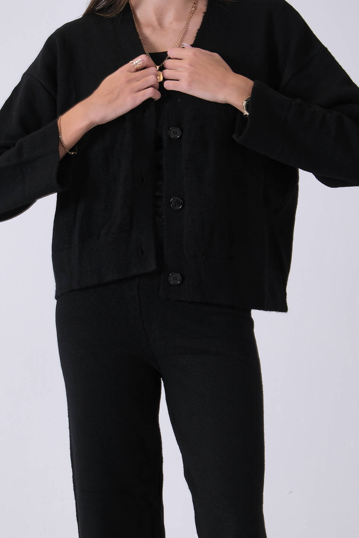 Siyah 3 Düğme Hırka Kapamalı Beli Lastikli Pantolonlu Triko Takım 46892606.01