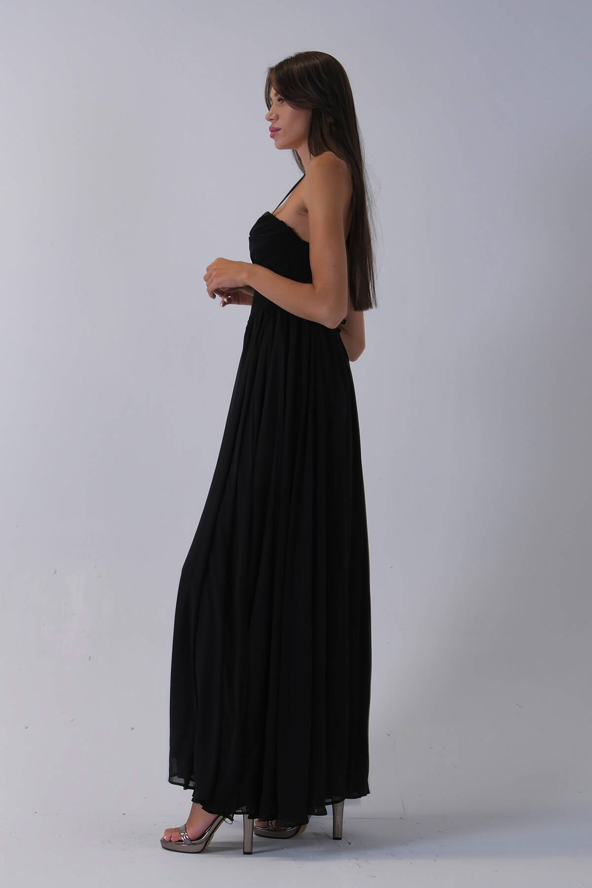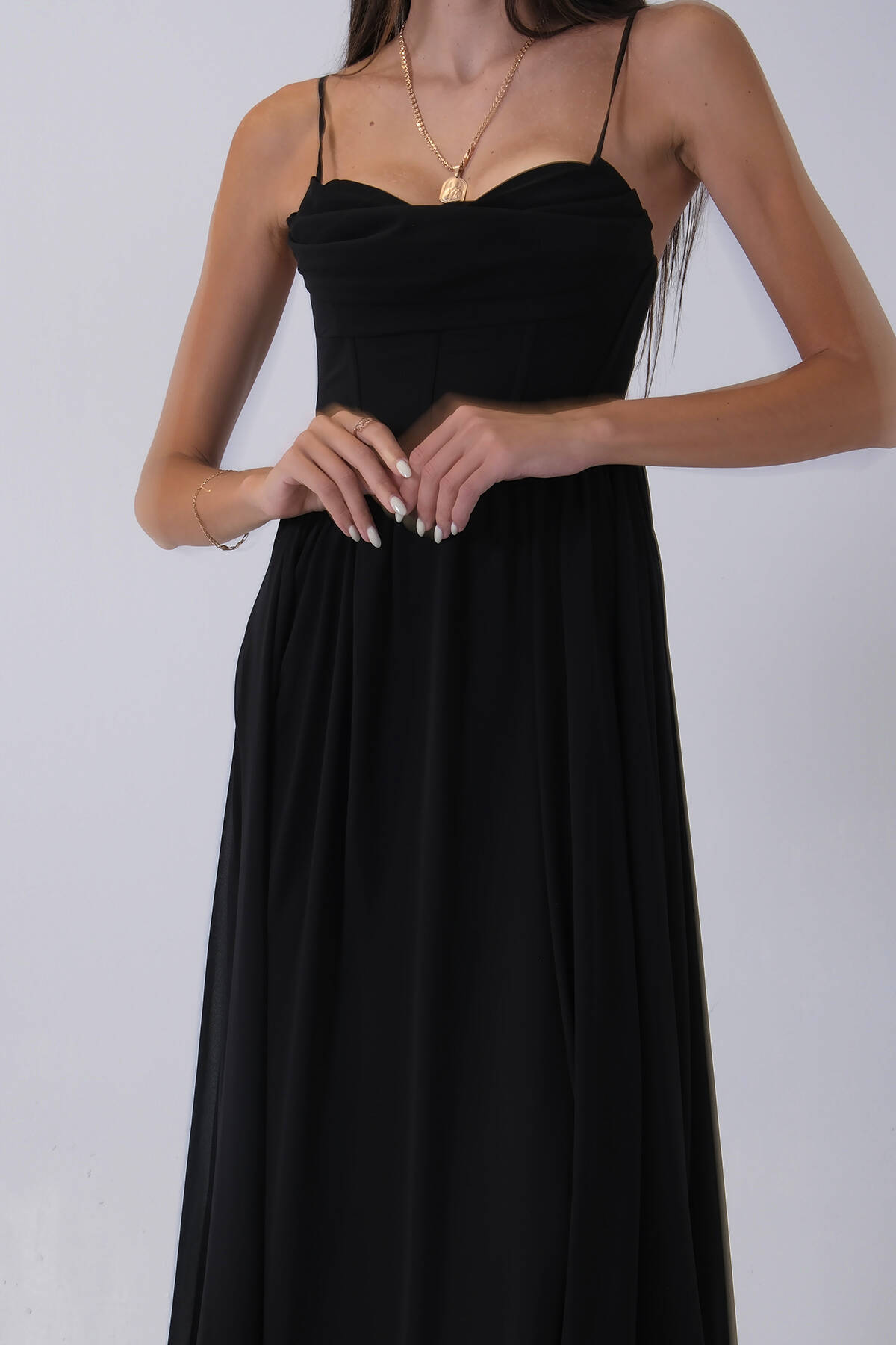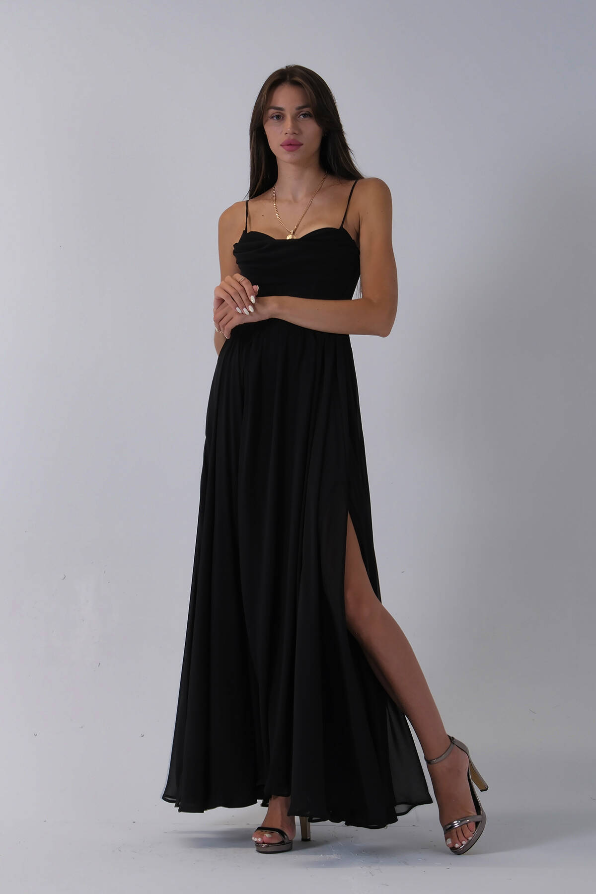 Siyah Askılı Drapeli Uzun Şifon Abiye 08020032.01