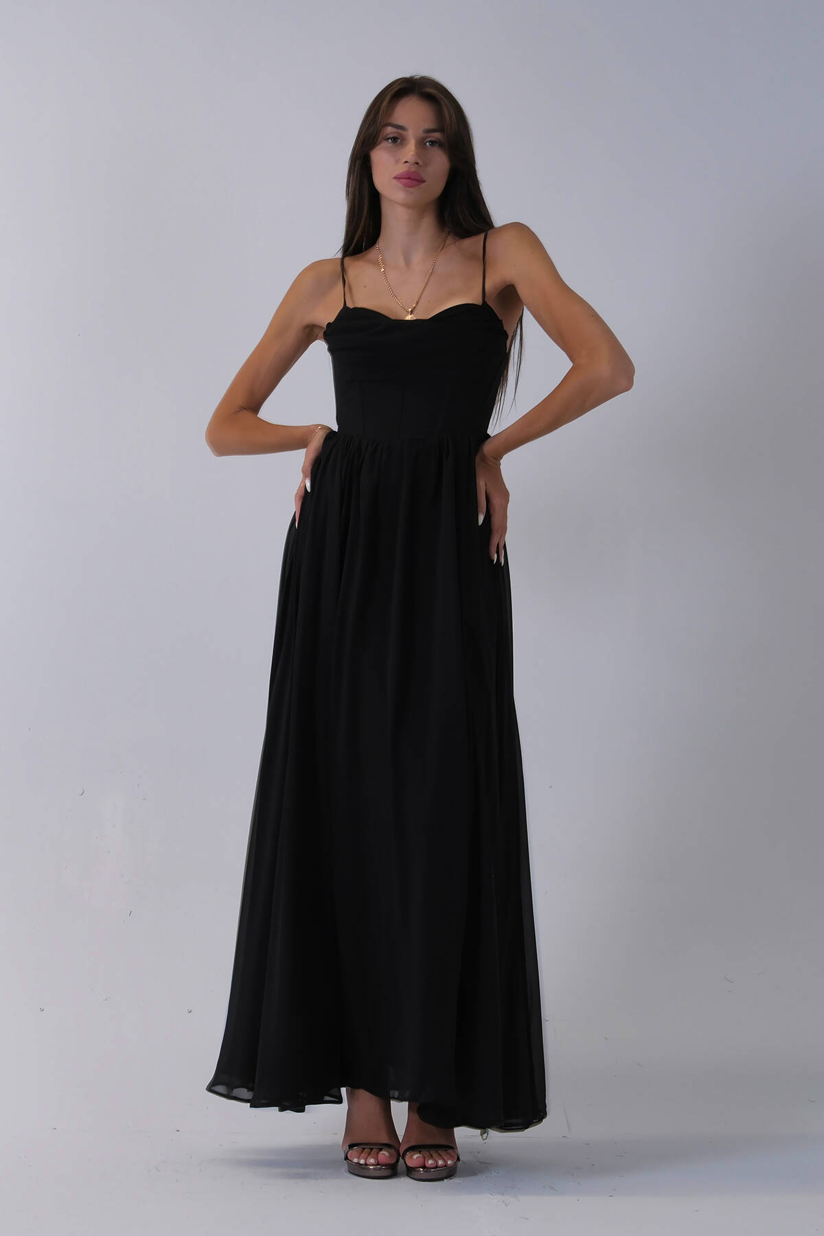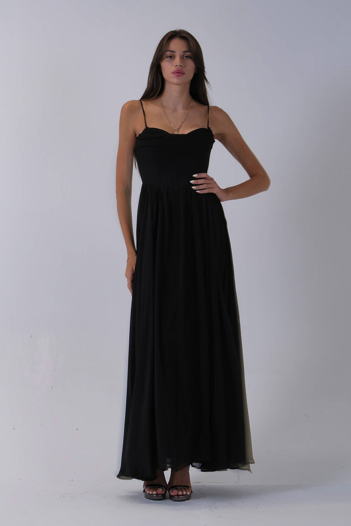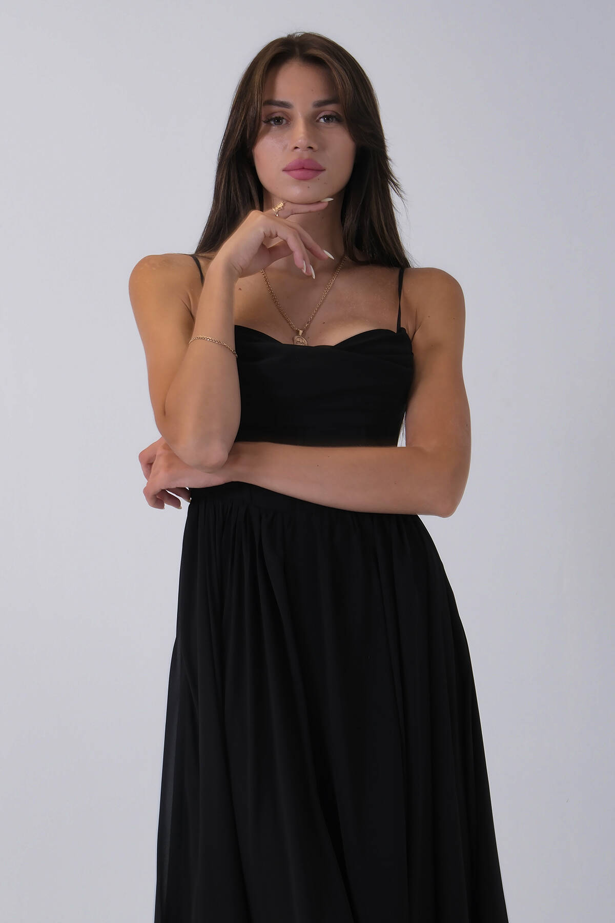 Siyah Askılı Drapeli Uzun Şifon Abiye 08020032.01