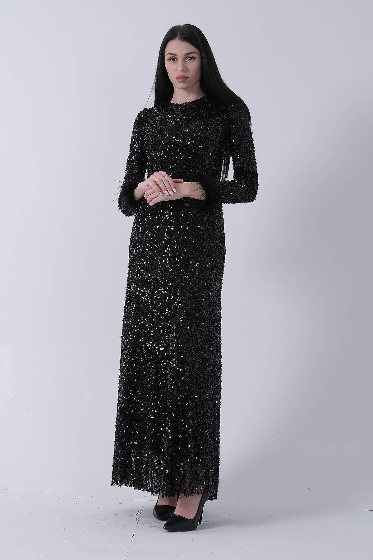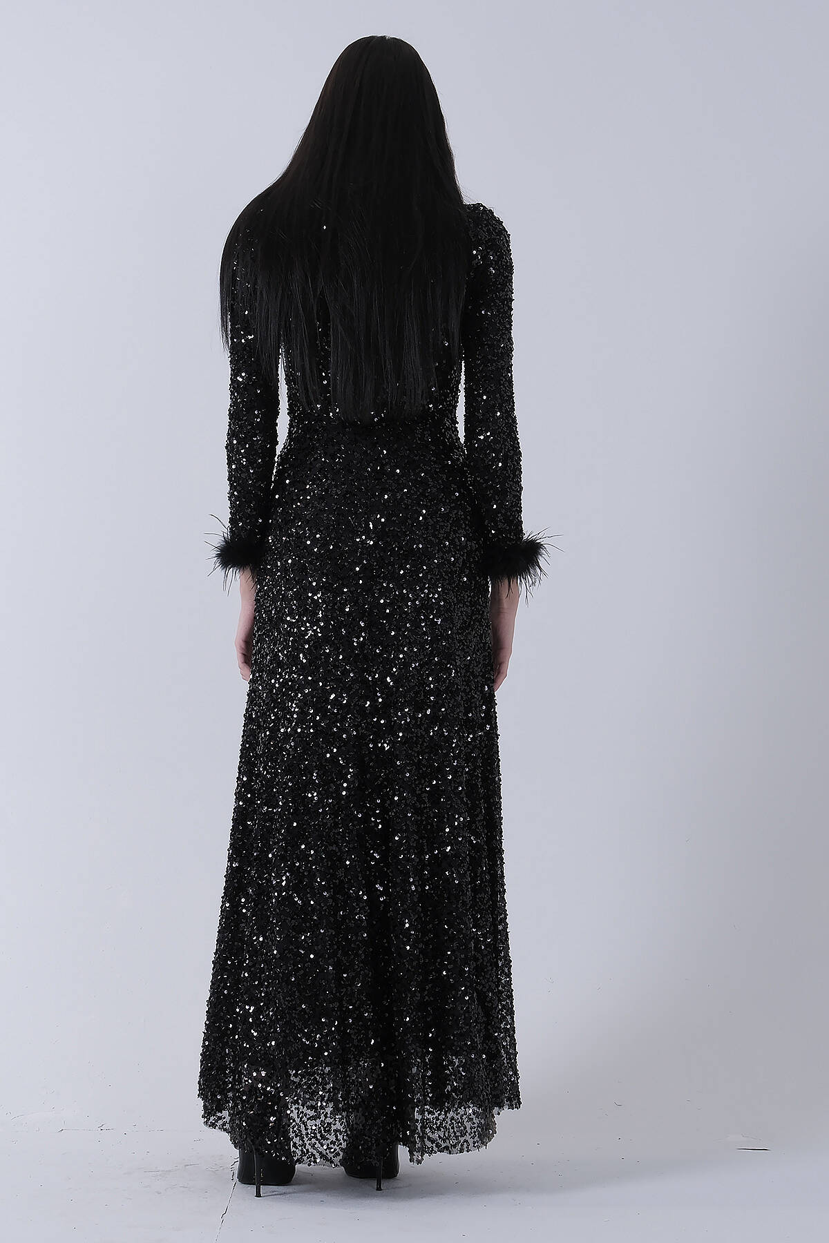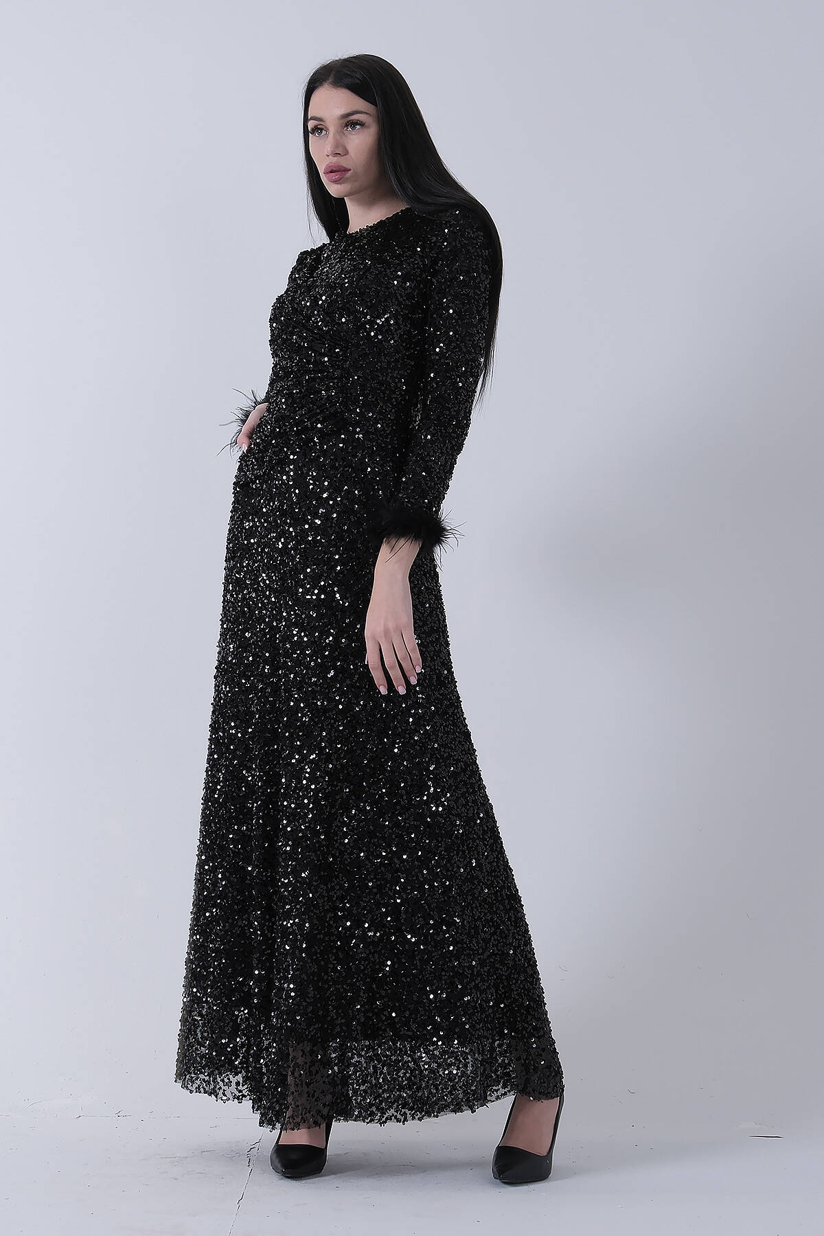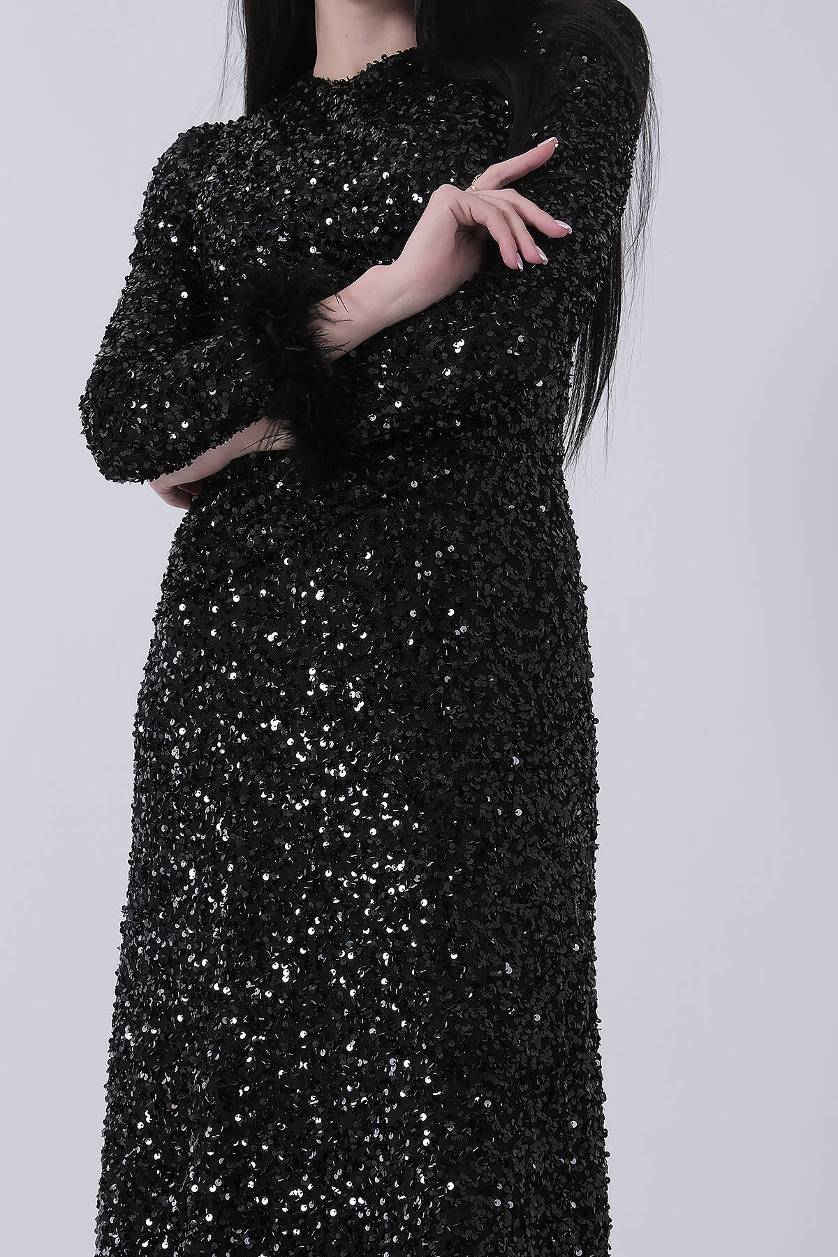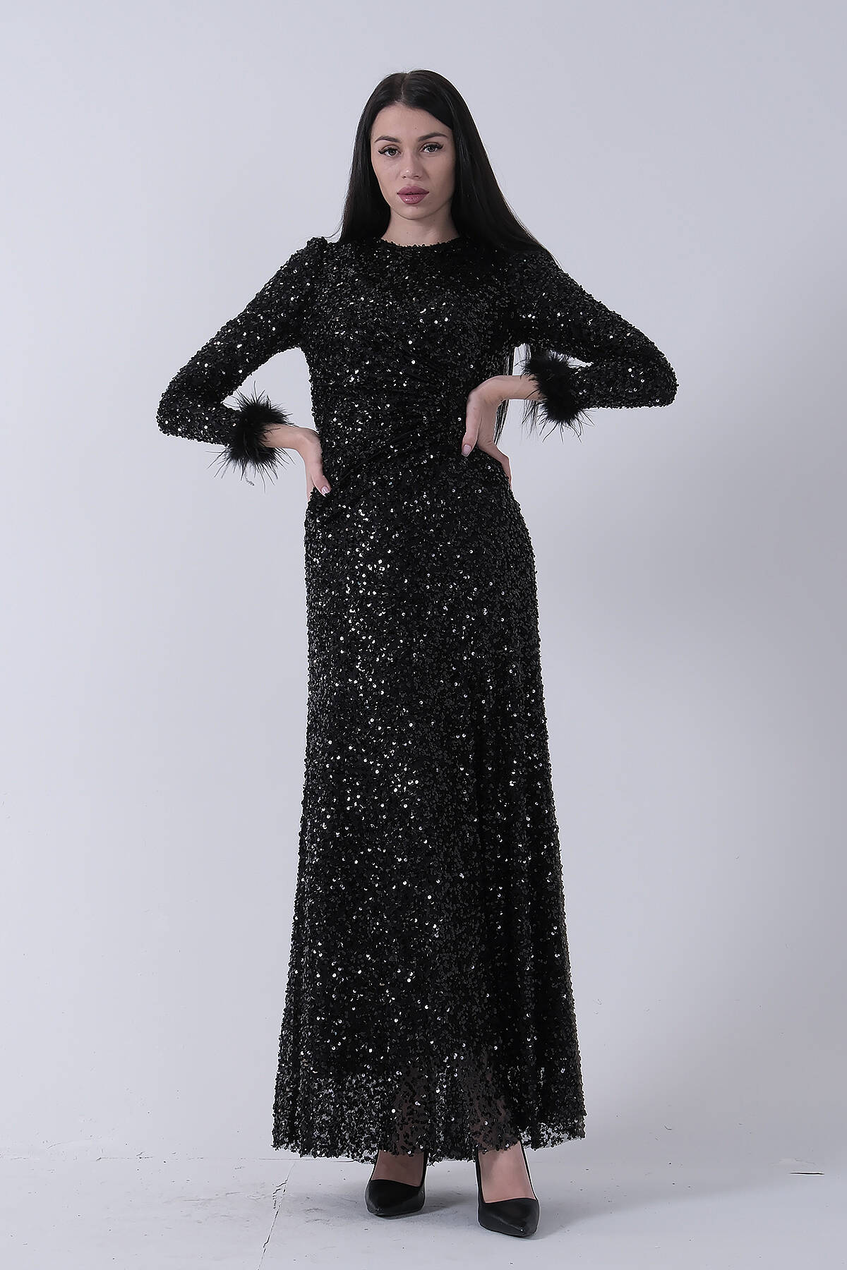 Siyah Bilek Ucu Tüylü Pul Payetli Tesettür Abiye 6502496.01