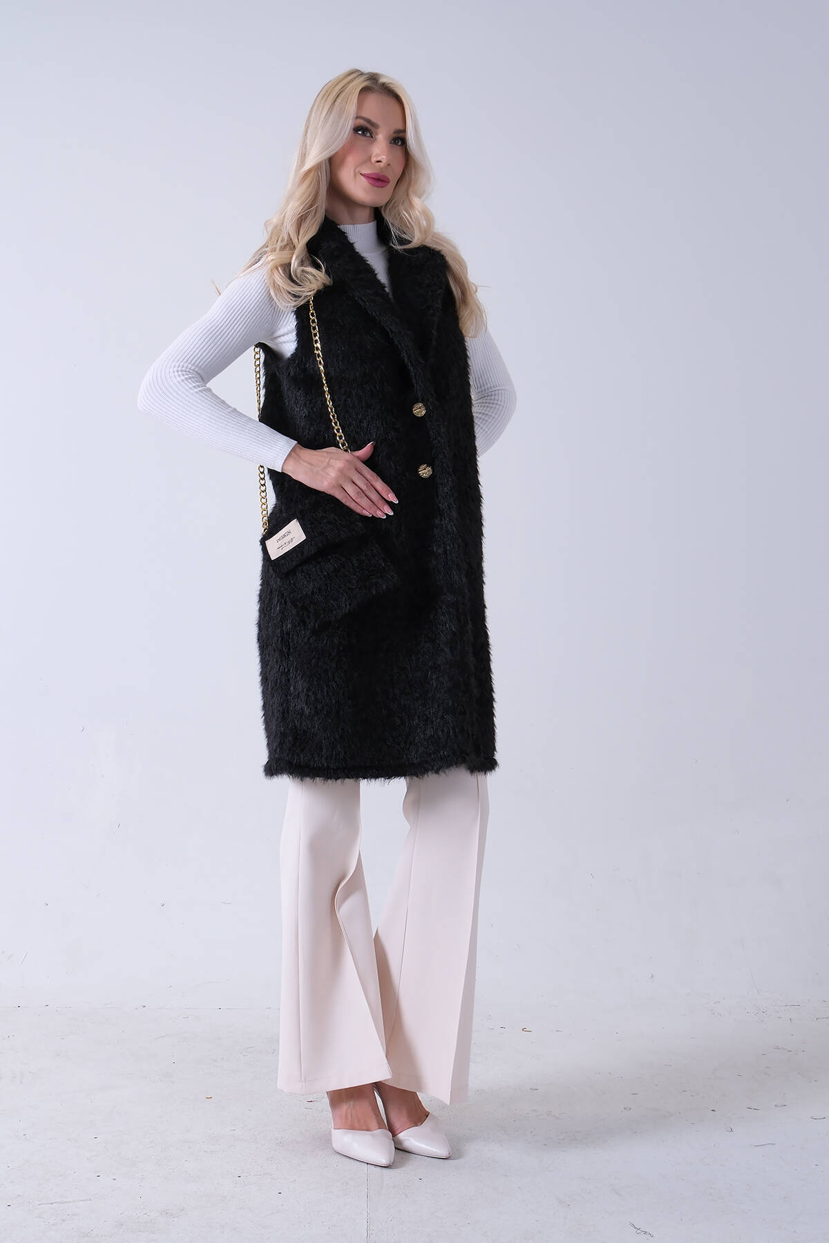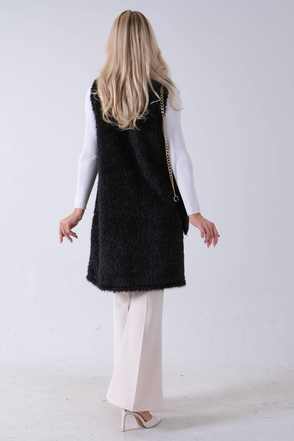 Taş Yakası Peluşlu Tek Düğme Kapamalı Yelek 4579035.50