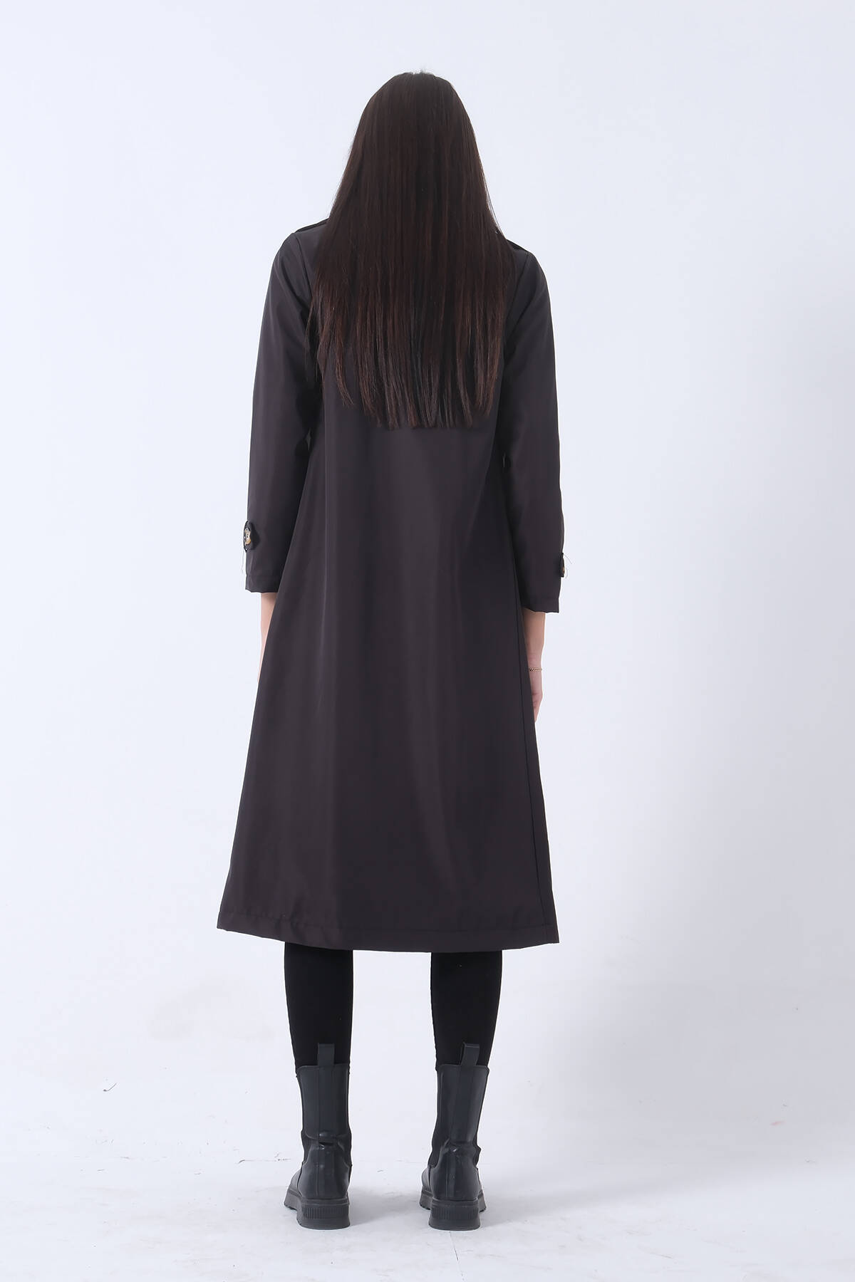 Siyah Beli Kemerli Düğme Kapamalı Kapitone Desenli Trenç 44520205.01