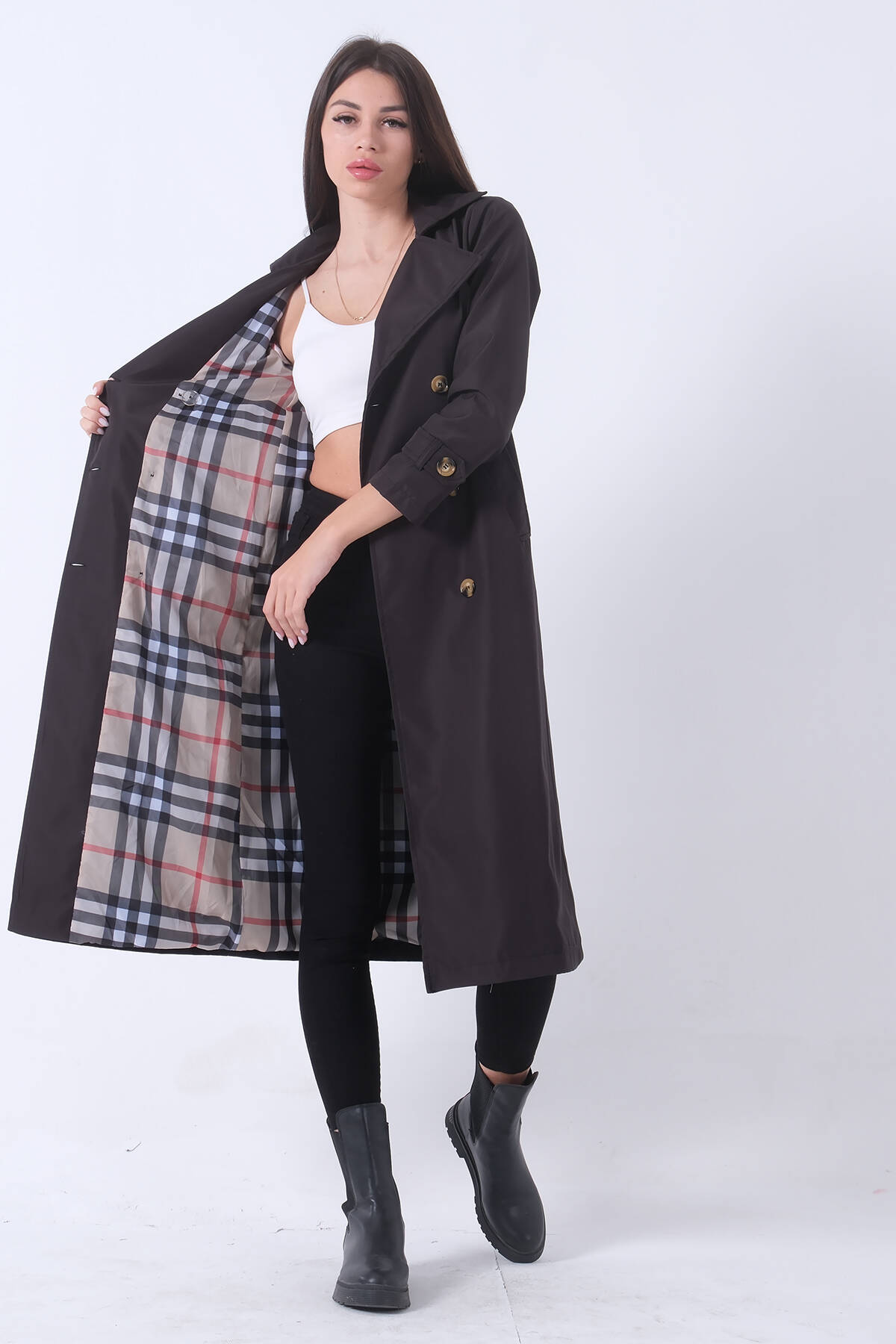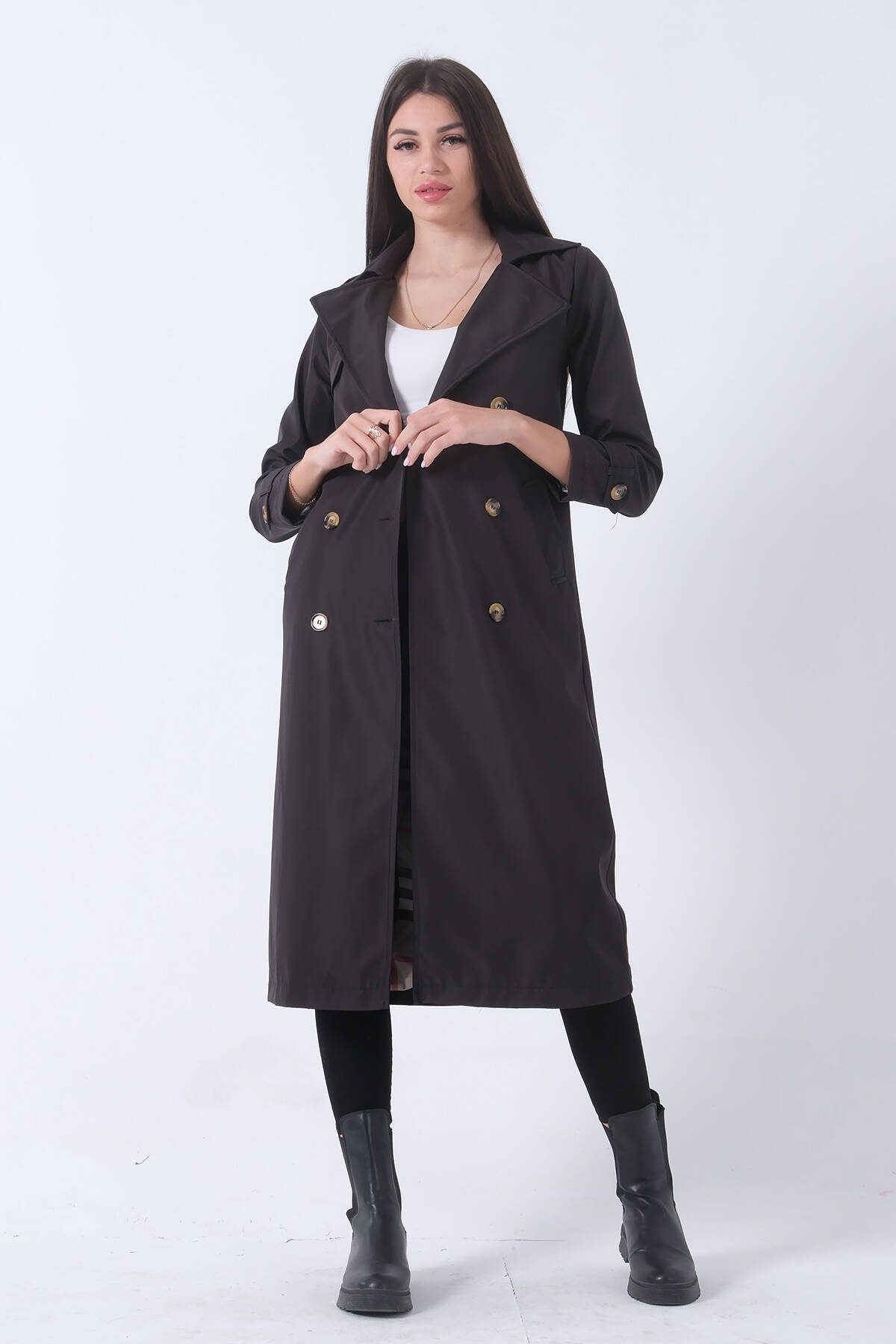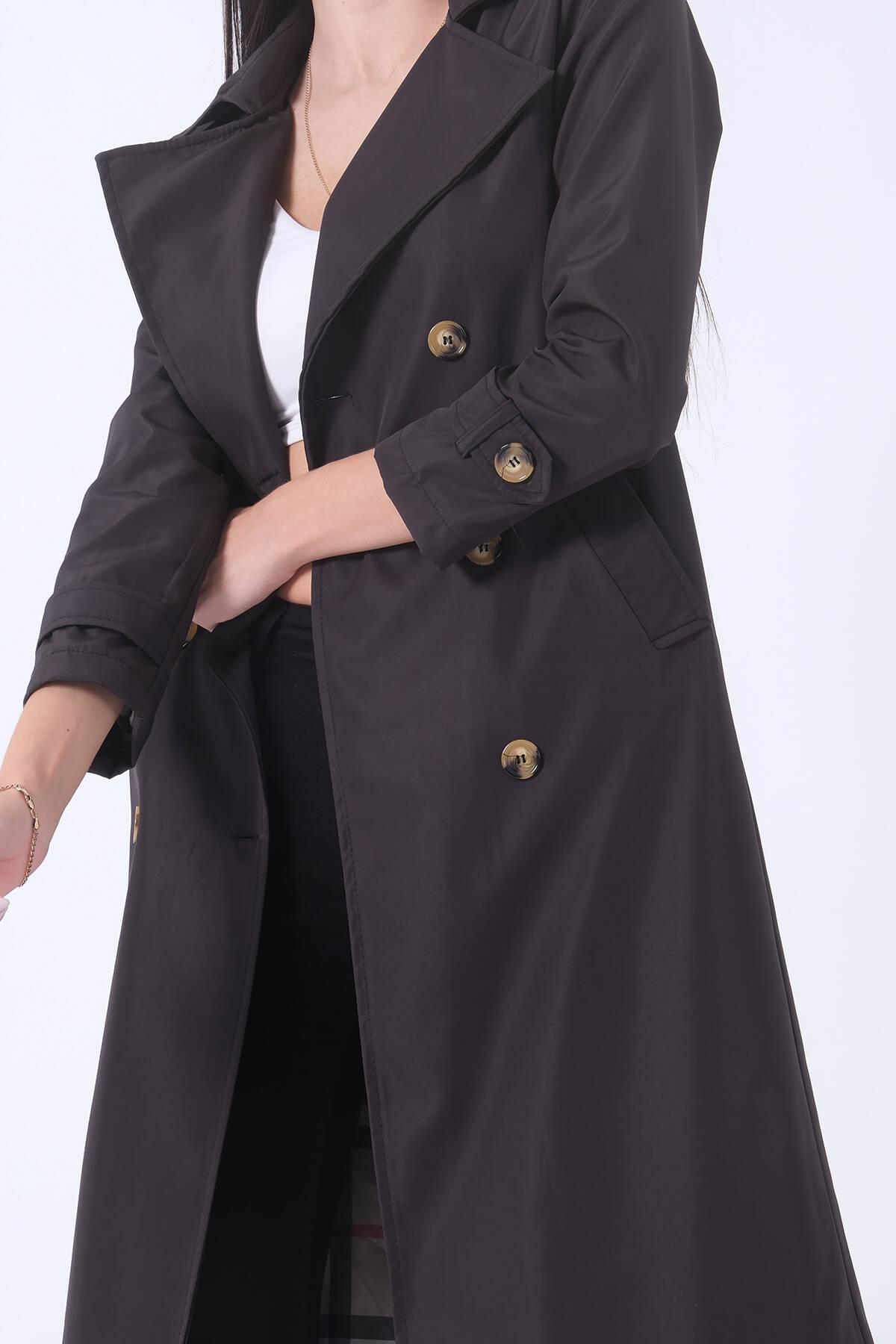 Siyah Ekose Astarlı Düğmeli ve Kemerli Trençkot 0204049.01