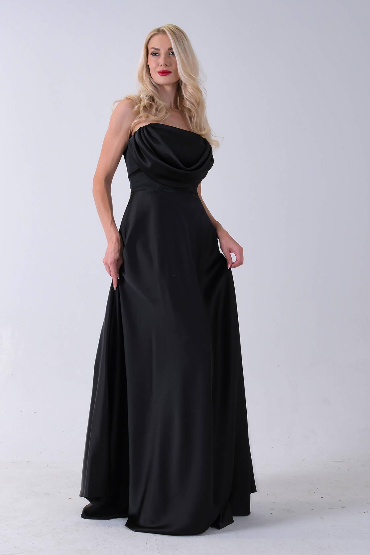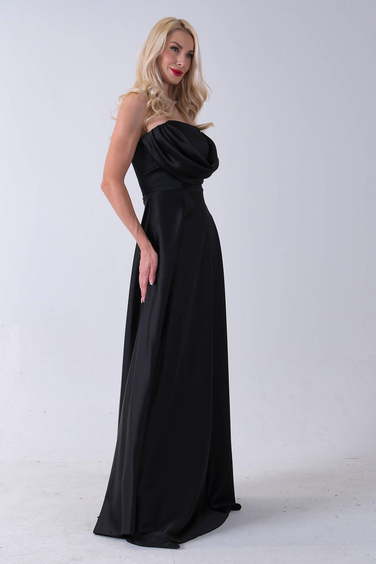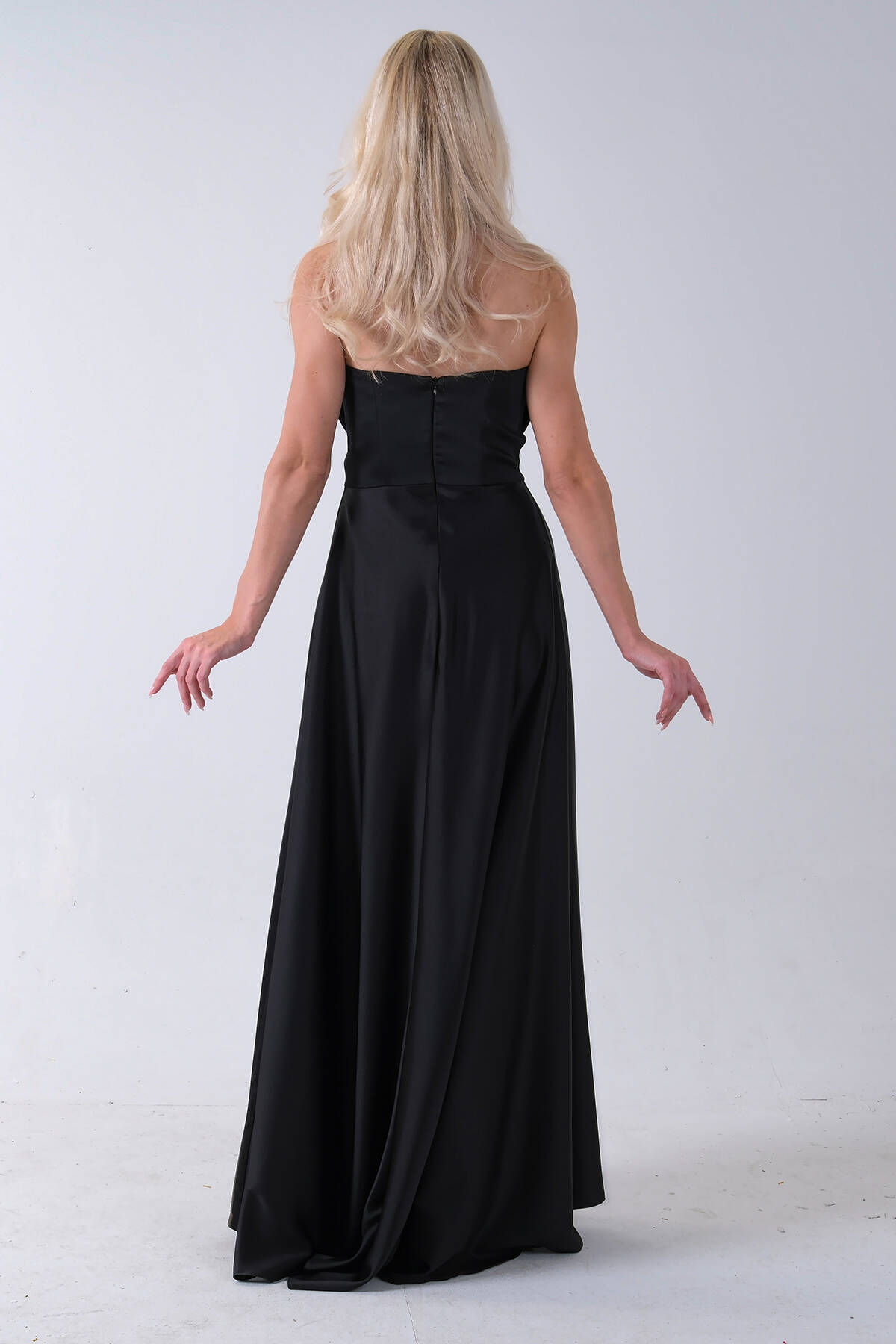 Siyah Fermuar Kapamalı Straplez Uzun Abiye 0801005.01