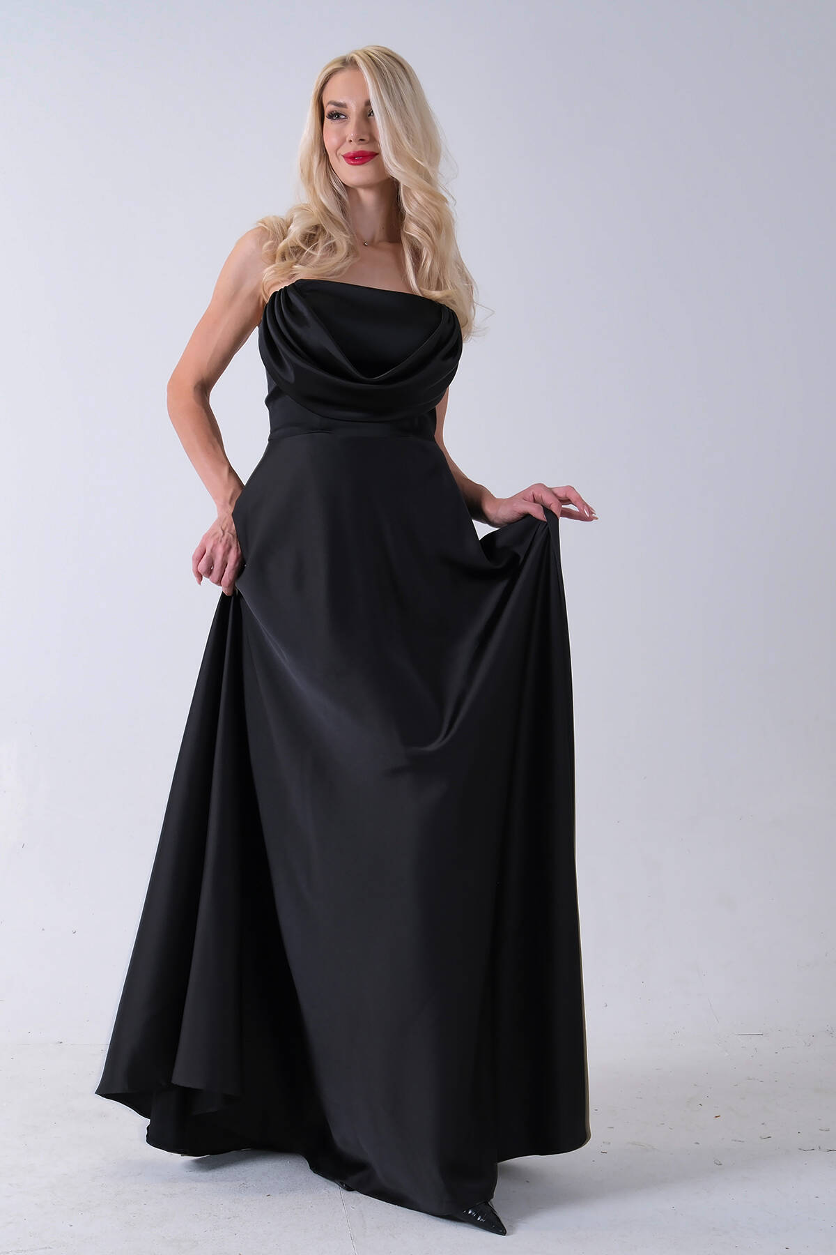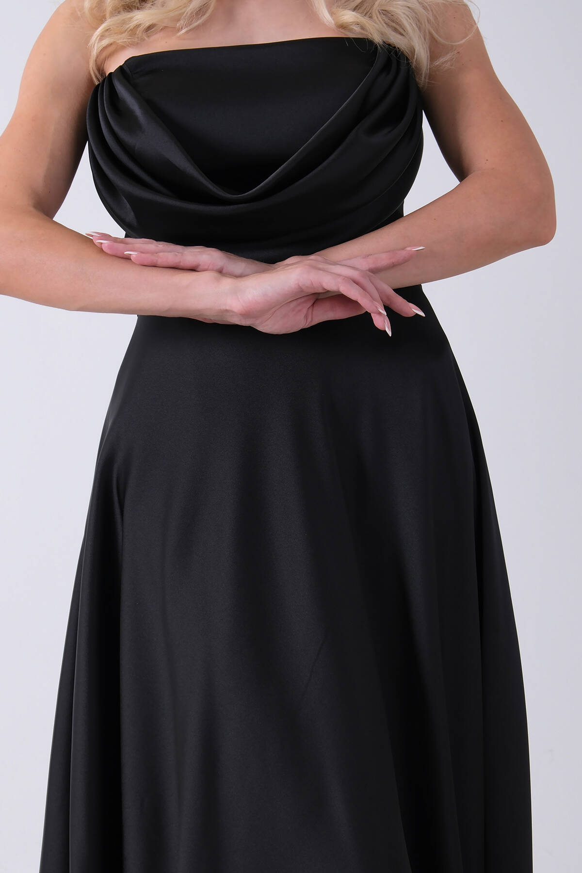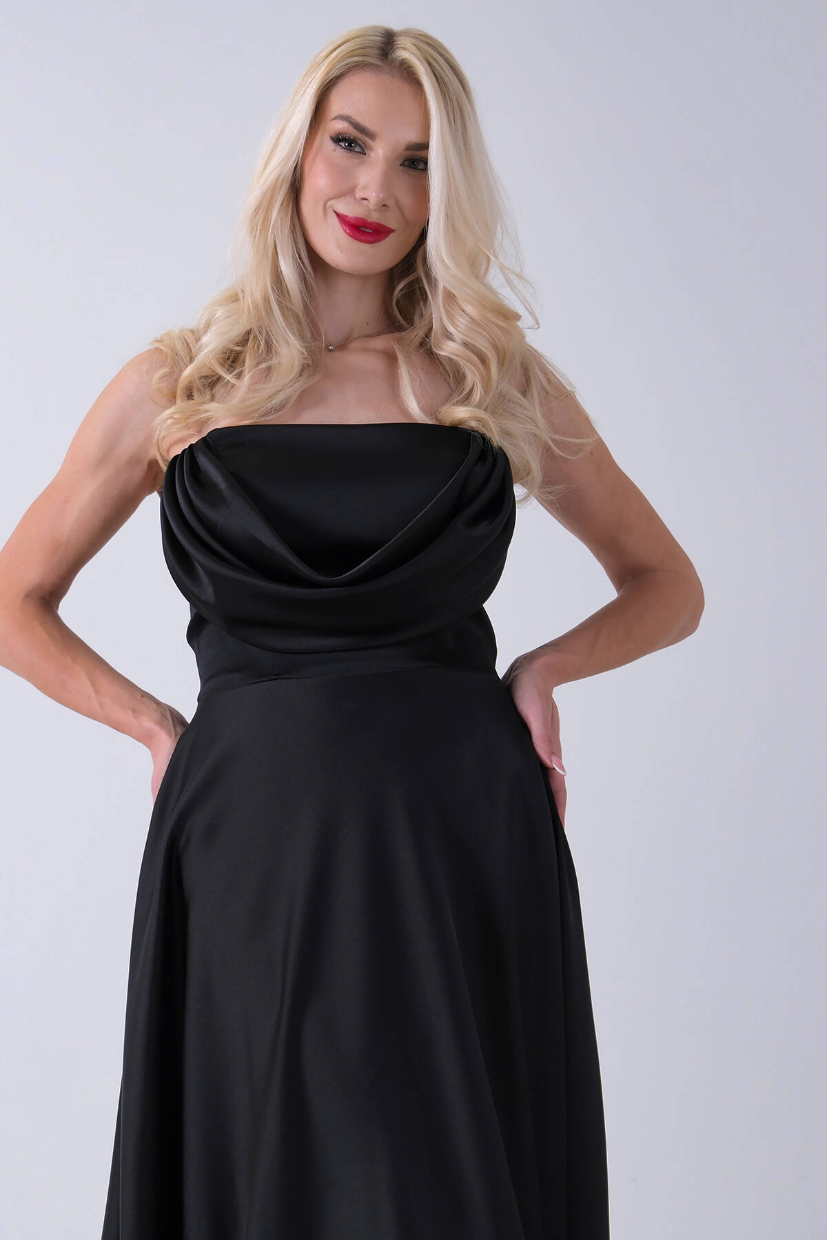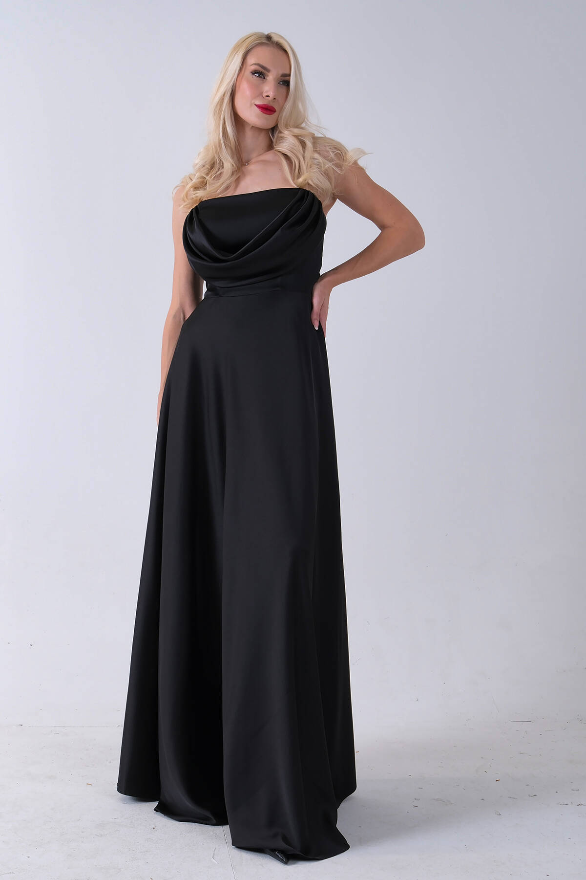 Siyah Fermuar Kapamalı Straplez Uzun Abiye 0801005.01