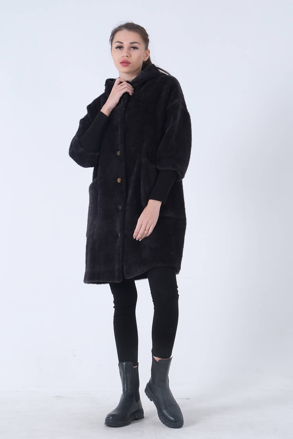 Siyah Seyyar Kürklü Astarlı Kaşe Kaban 0108070.01
