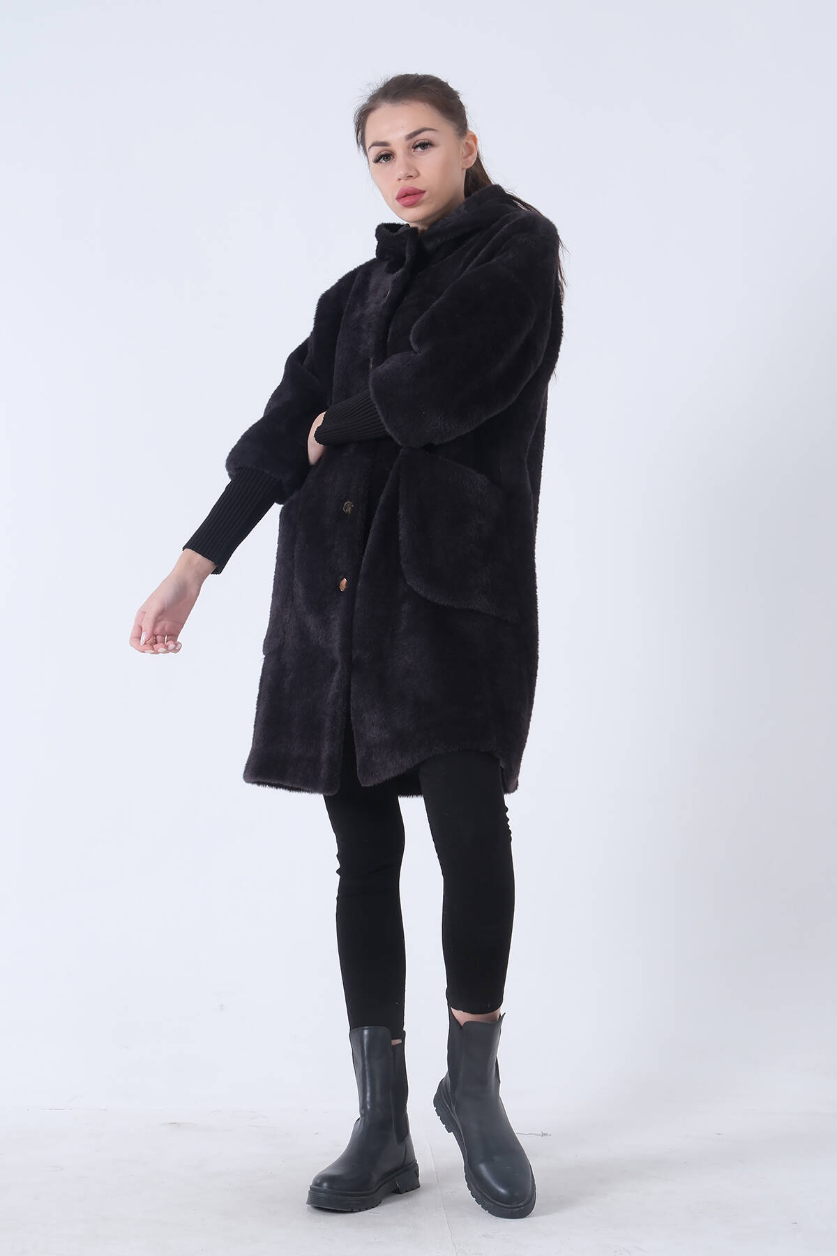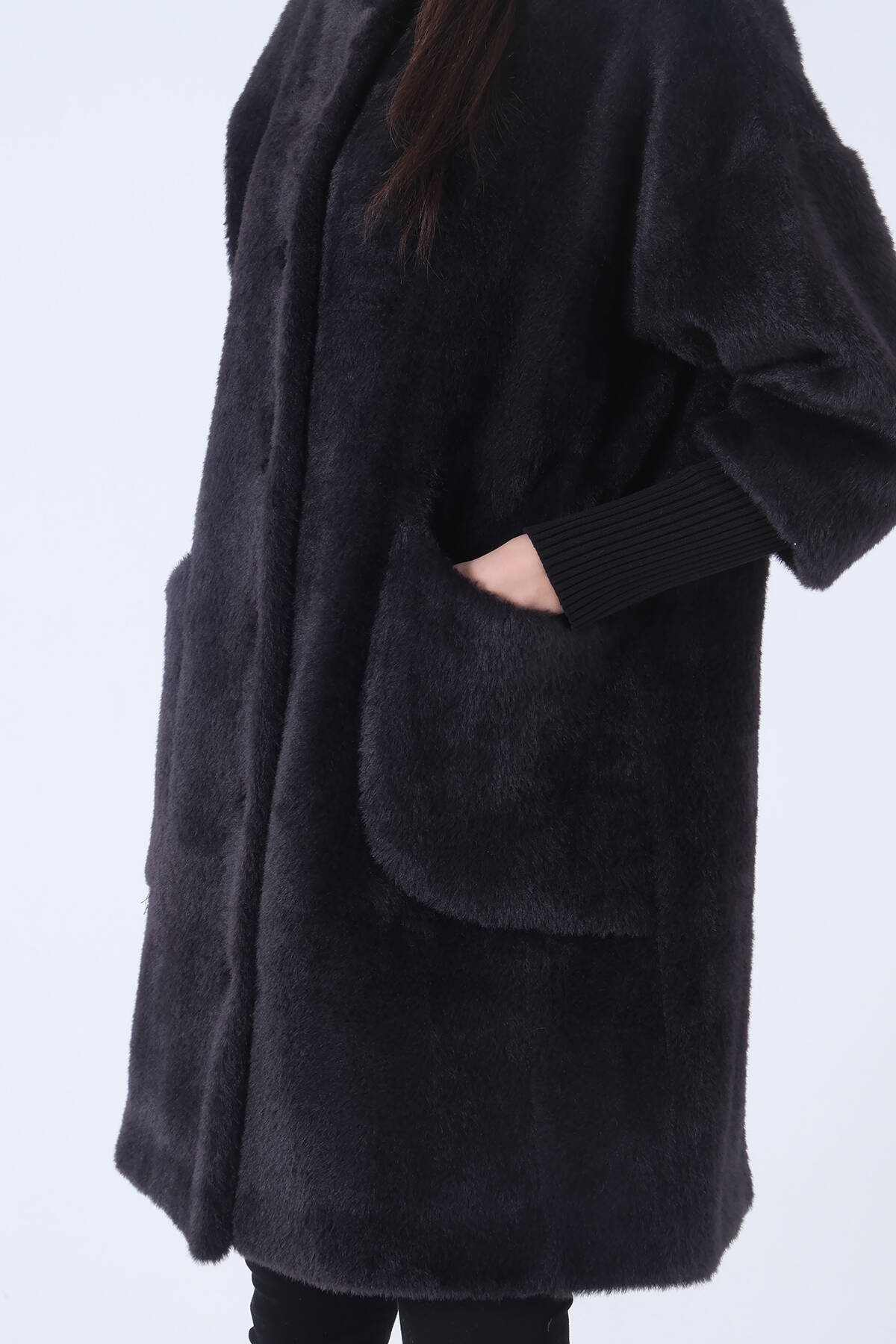 Taş Yandan Cepli Broş Detaylı Yaka Kürklü Peluş Kaban 44510847.50