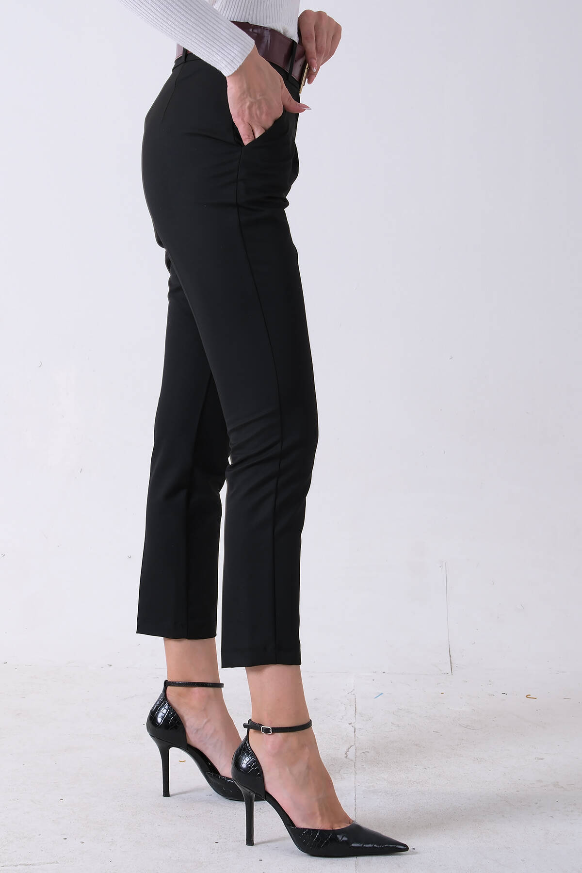 Siyah Fleto Cepli Düz Pantolon 03030309.01