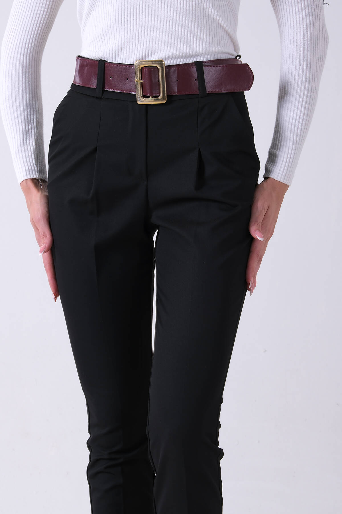 Siyah İnce Kemerli Cepsiz Bol Paça Pantolon 03030307.01