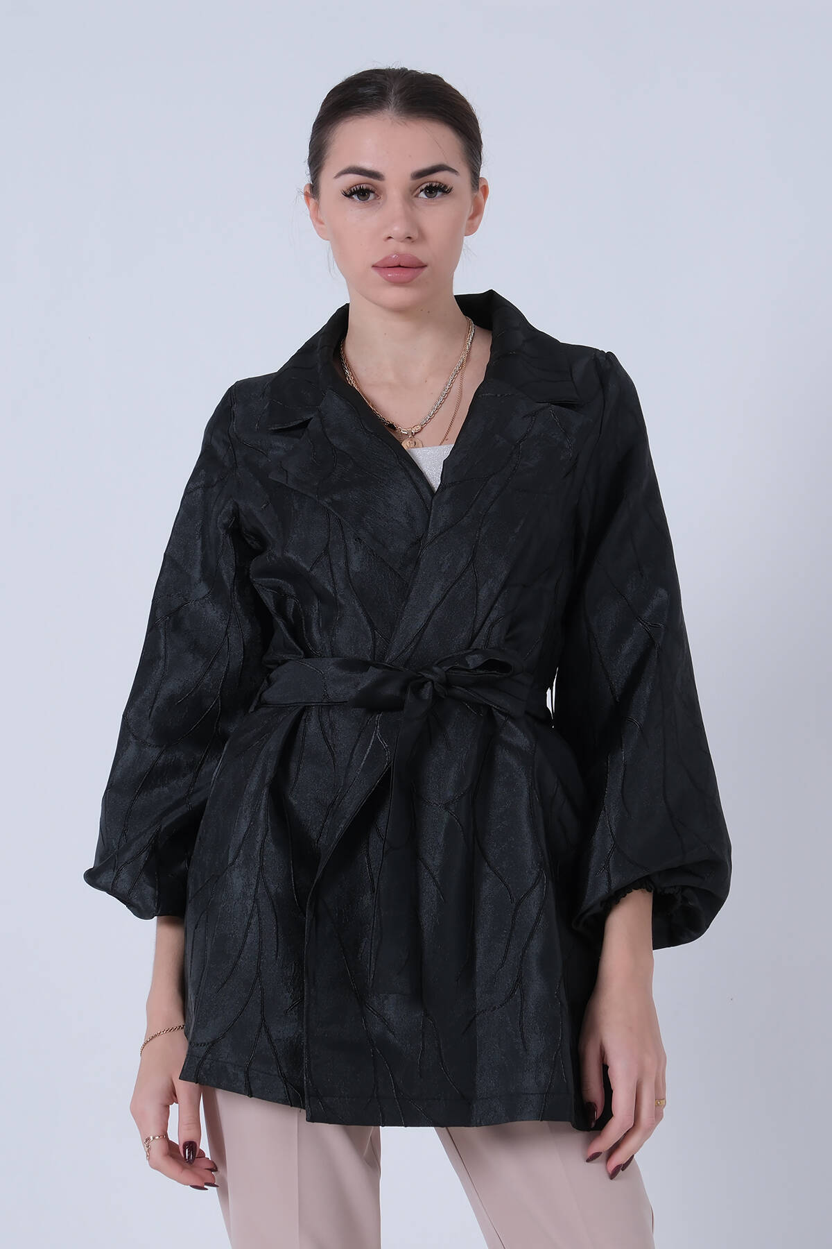 Siyah Önü Kapamalı Seyyar Kemerli Peluş Ceket 0105140.01