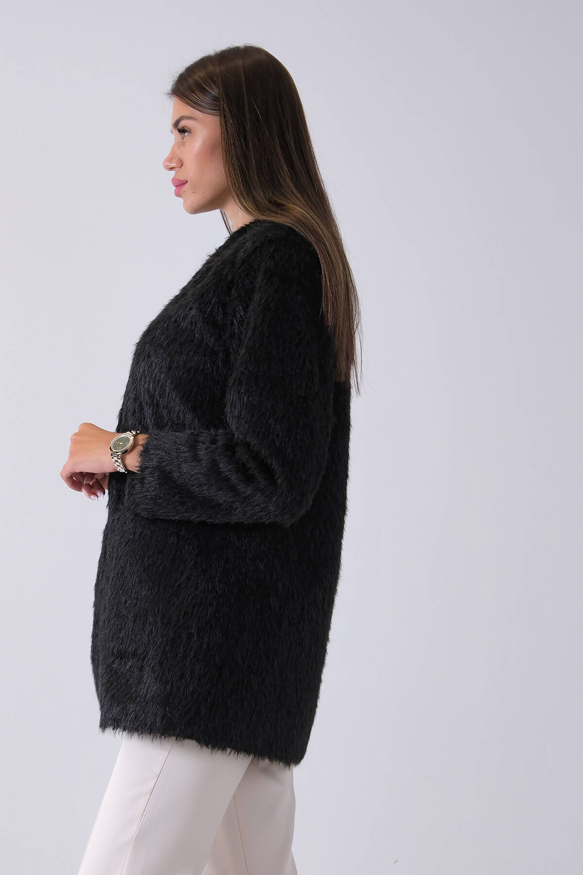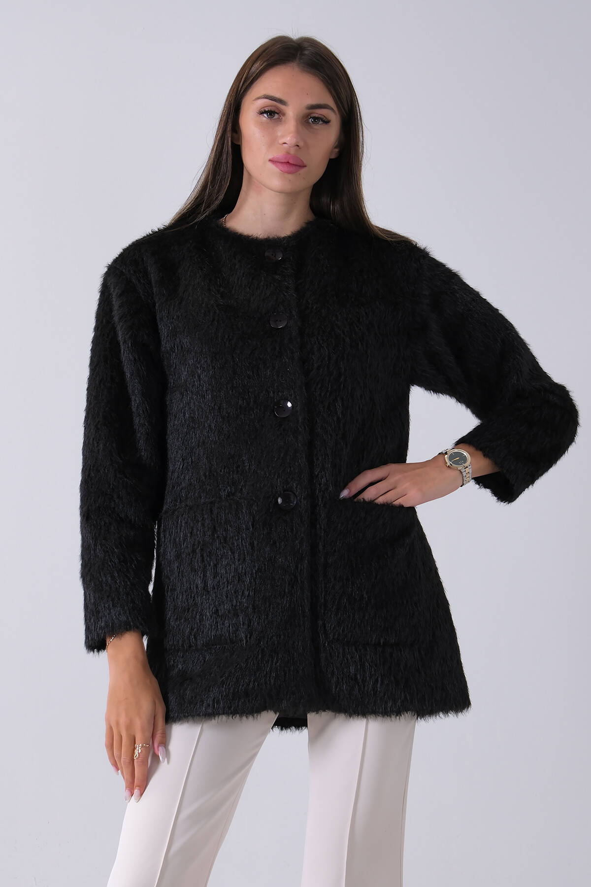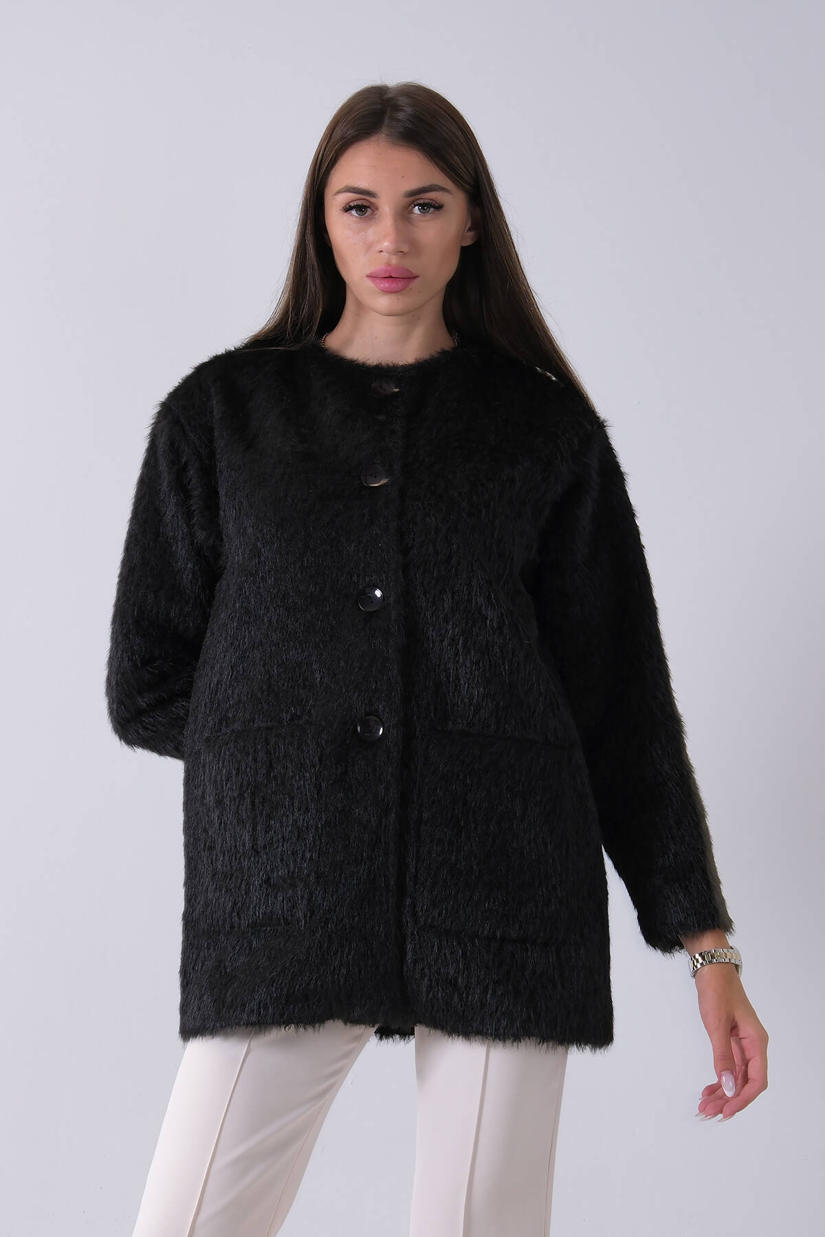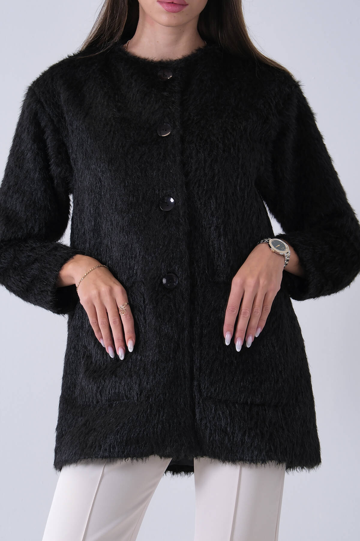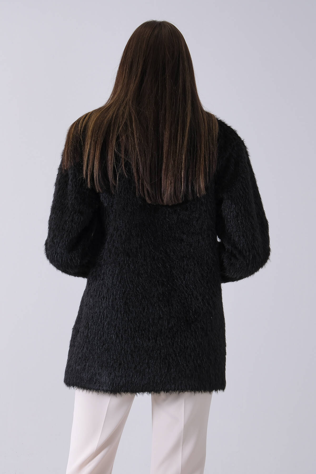 Siyah Önü 4 Düğme Kapamalı Çift Cepli Kuşaklı Kap 940140187.01