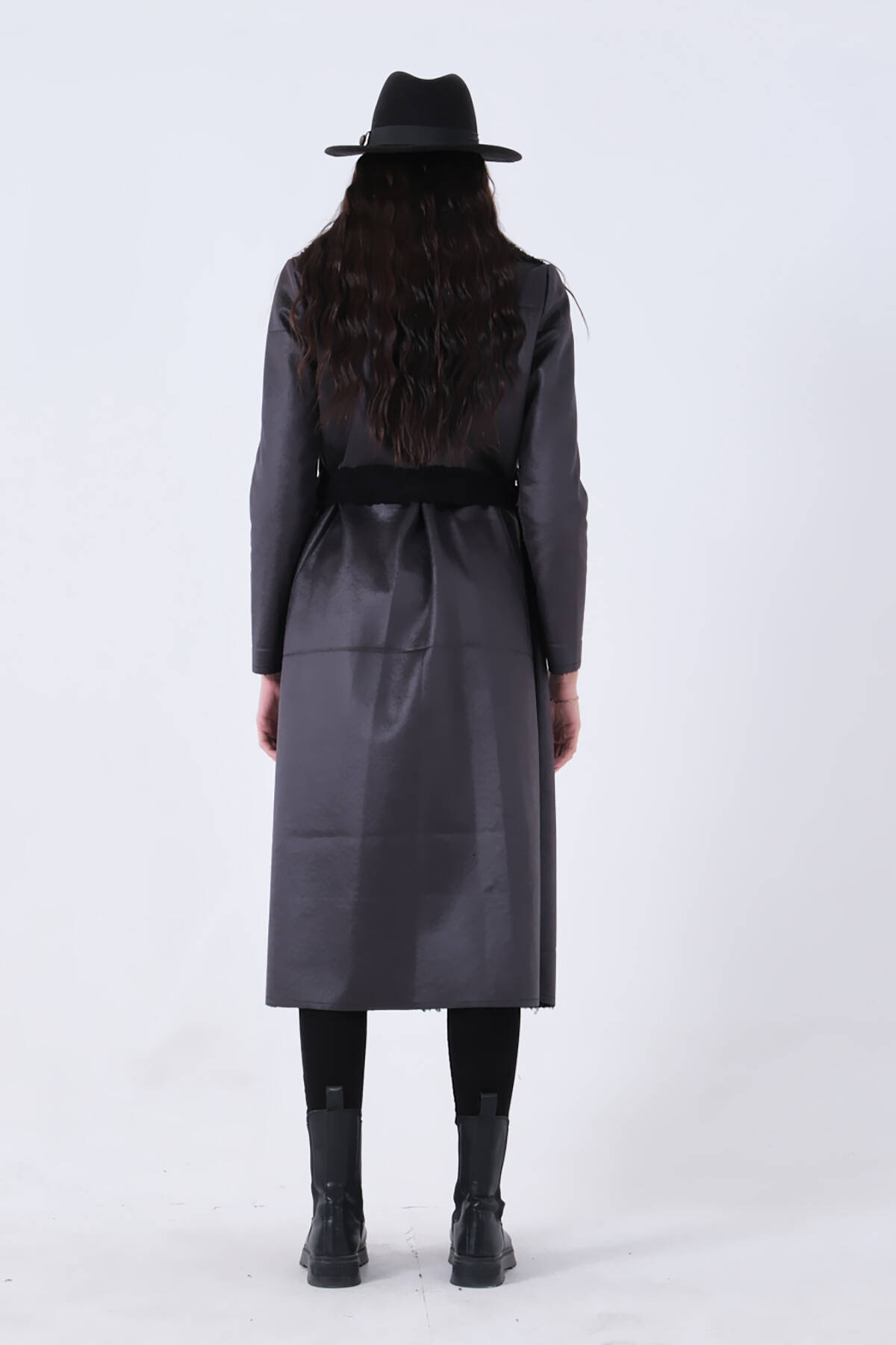 Siyah Süet Düğmeli Seyyar Kemerli Kaban 0108087.01