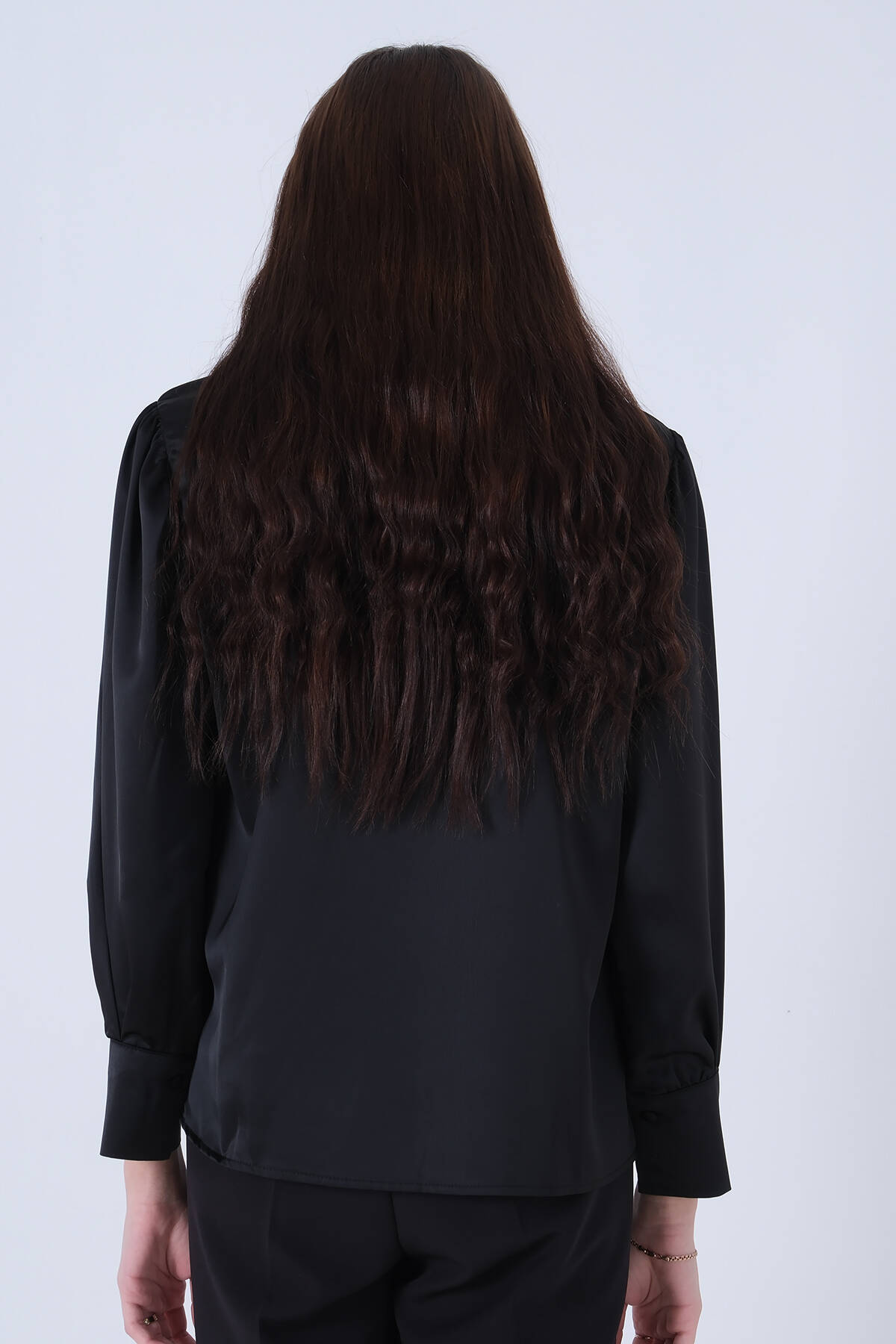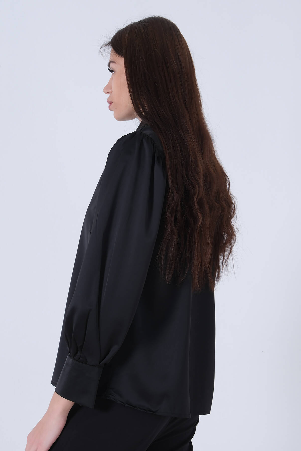 Siyah Yaka Bağlama Detaylı Saten Bluz 3972917.01