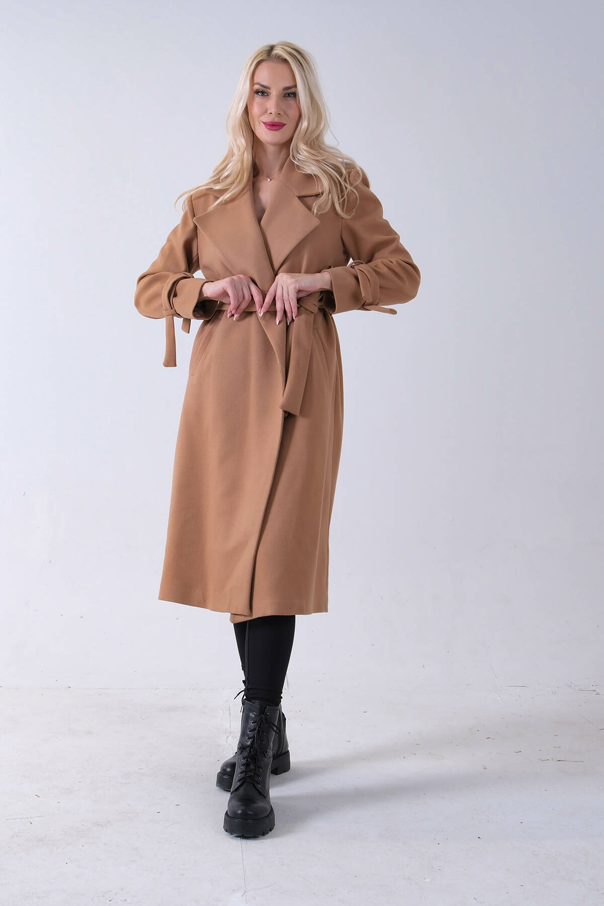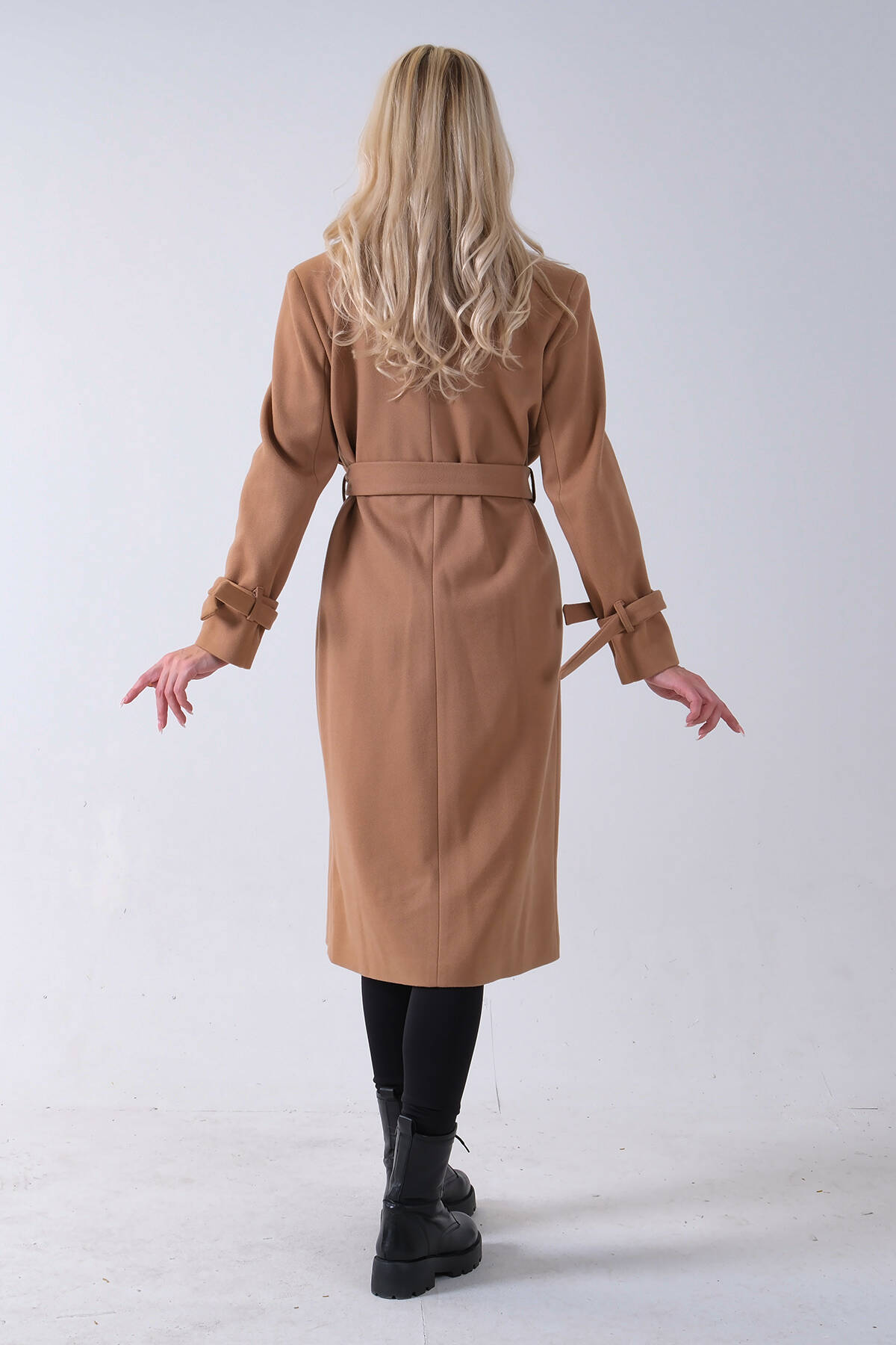 Sütlü Kahve Kol Bağlamalı Seyyar Kuşaklı Uzun Kaşe Kaban 41630051.374