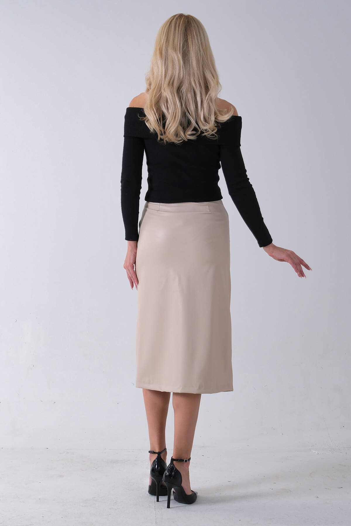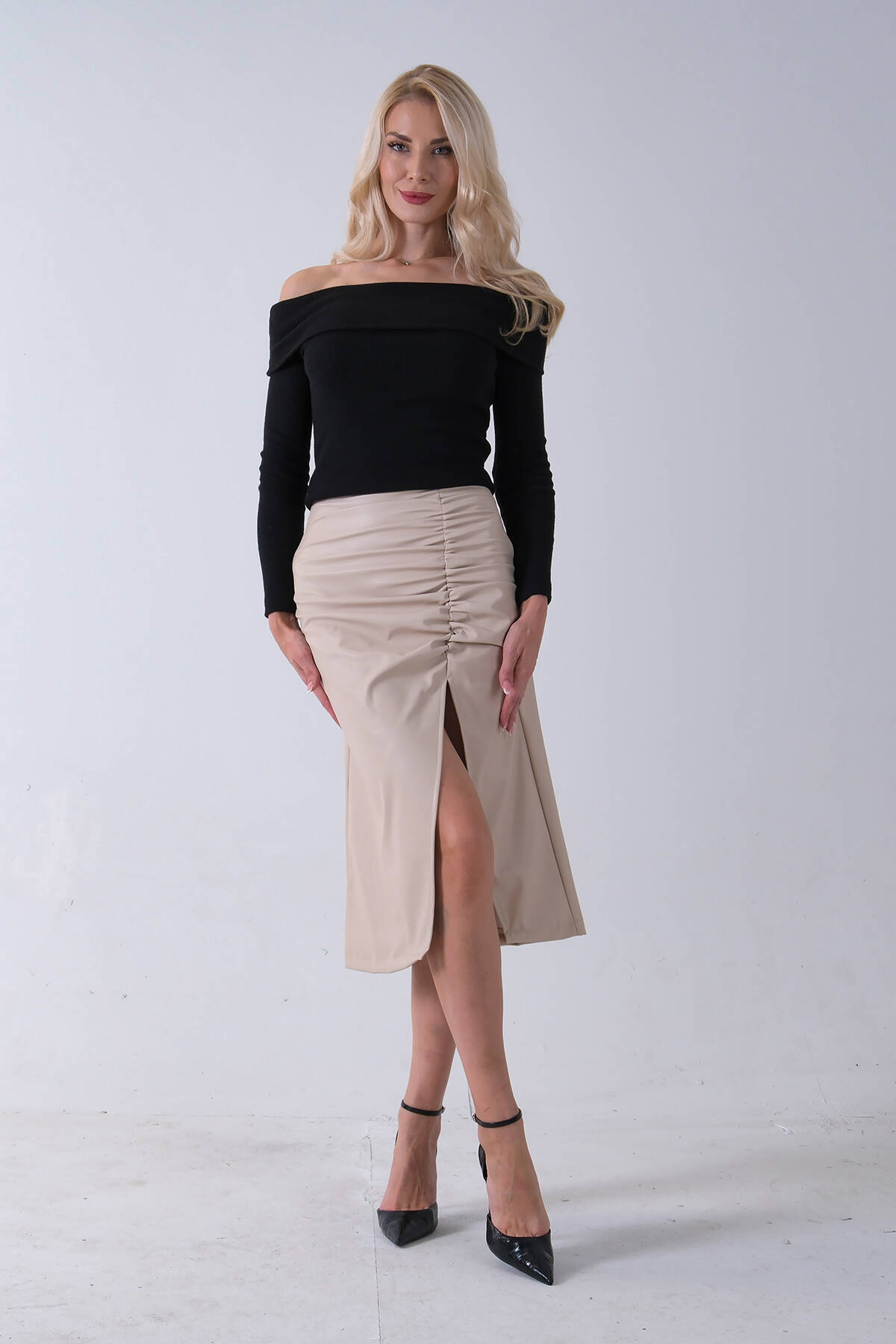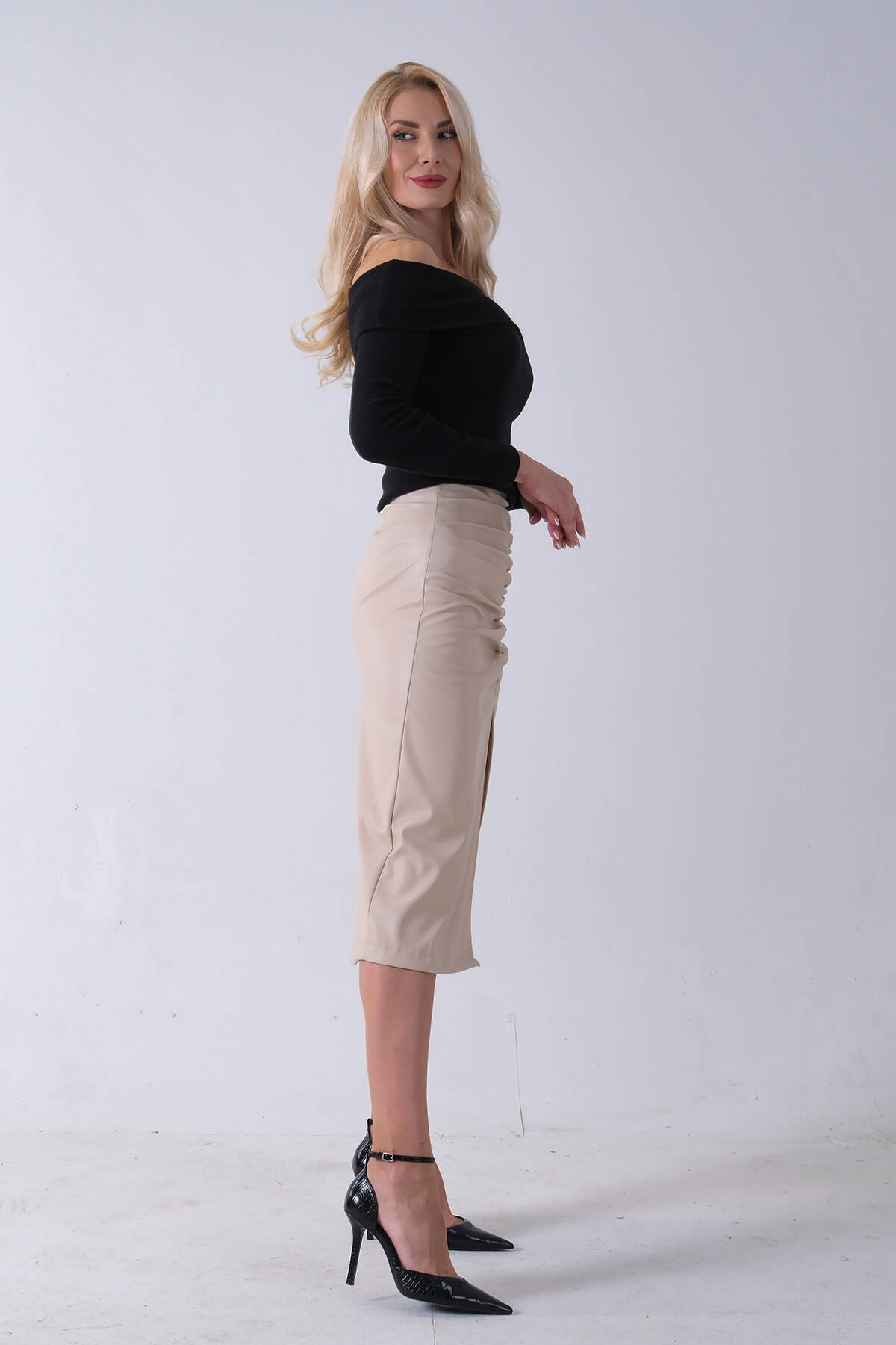 Sütlü Kahve Büzgülü Deri Etek 0101064.374