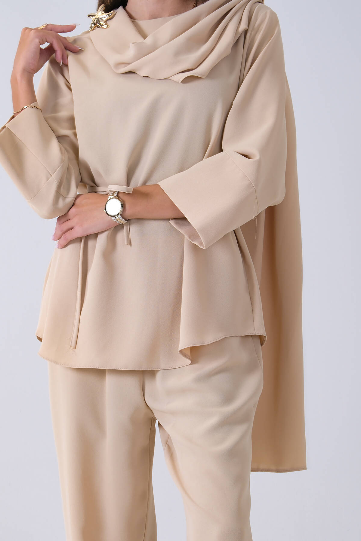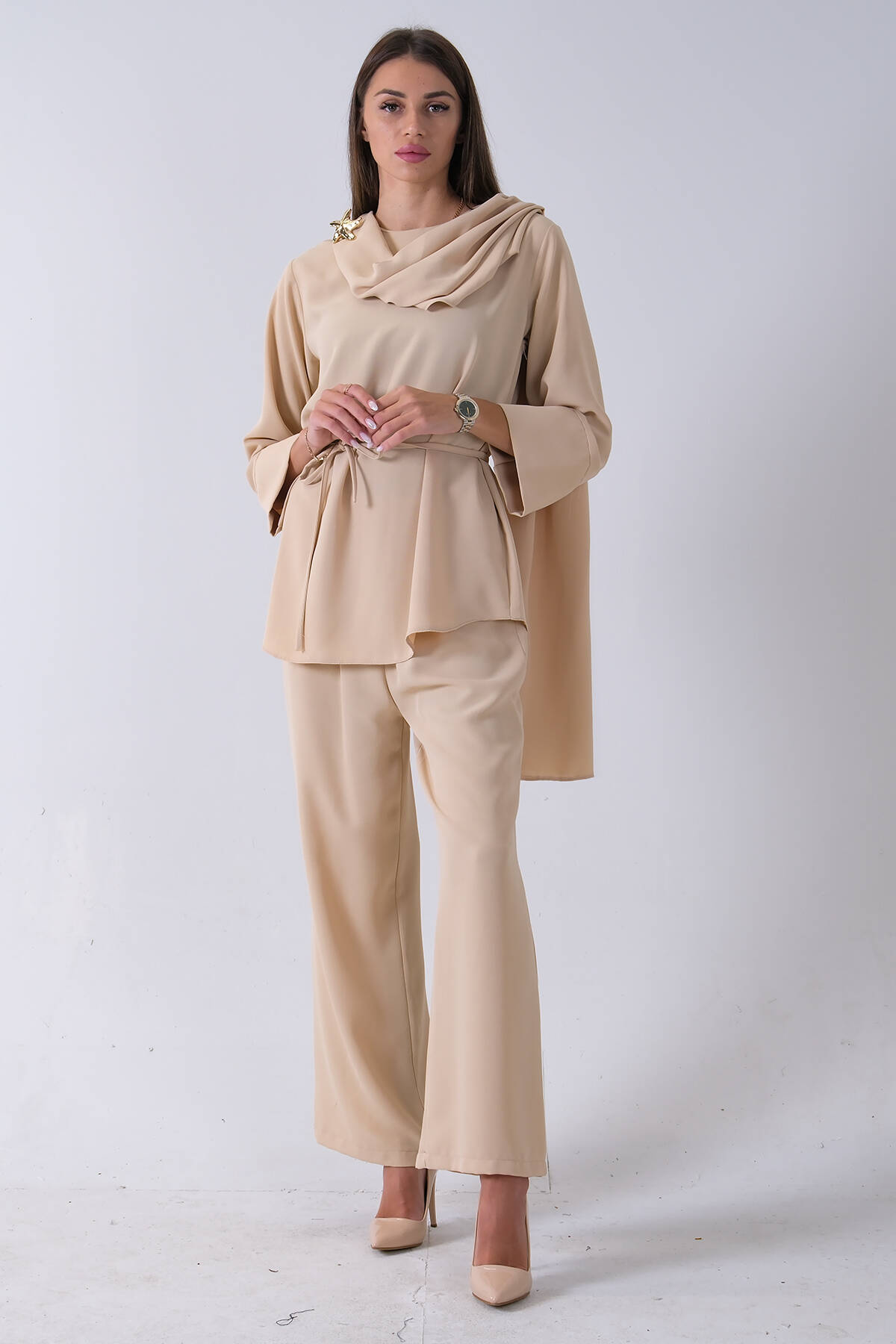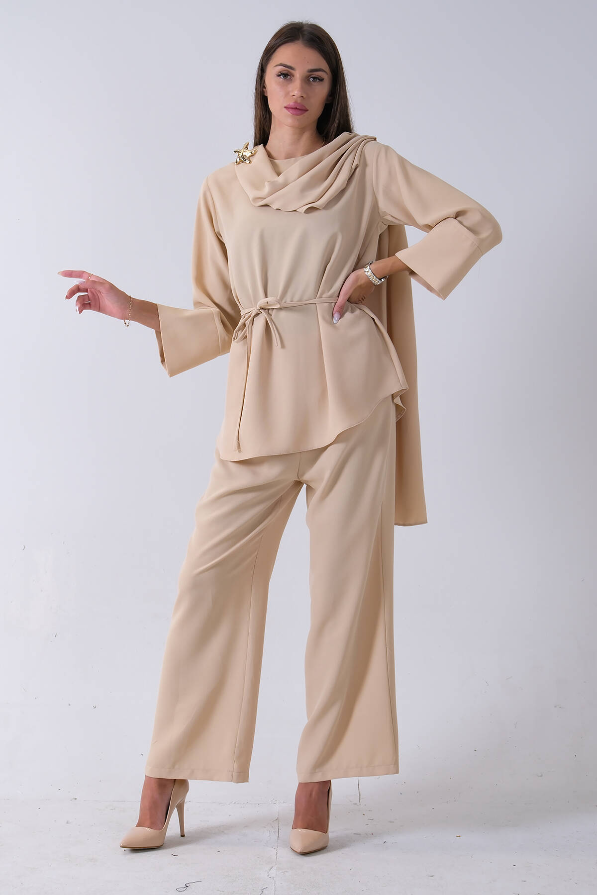 Taş Yaka ve Pantolon Paçası Taş Detaylı Tunikli Takım 4703048.50