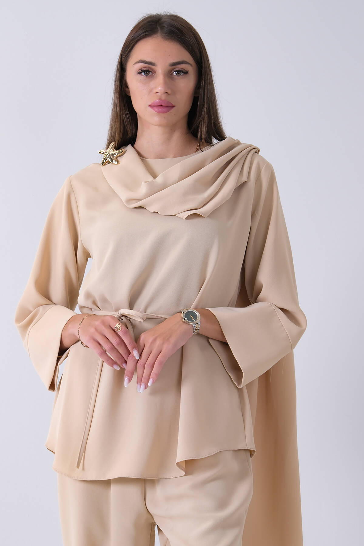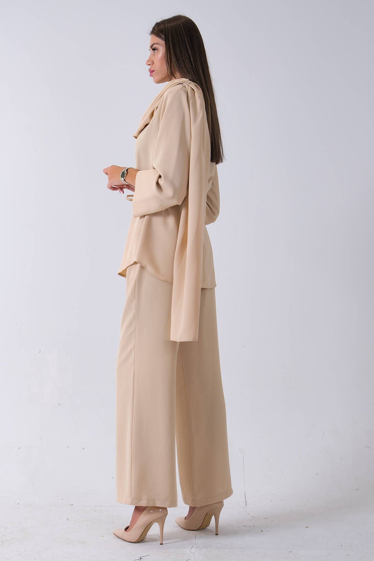 Taş Şal Yaka Üzeri Broş Detaylı Pantolonlu Takım 4592270.50