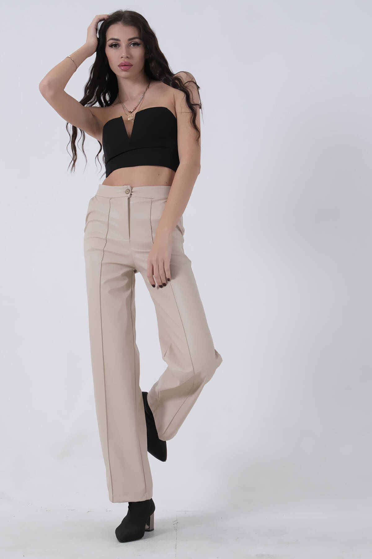 Bol Paça Şardonlu Deri Palazzo Pantolon Ürün Boyu : 108 cm Stüdyo Çekimlerinde Renkler Işık Farklılıgından Dolayı Değişiklik Gösterebilir Paça Bilgisi:Bol Paça Kapama Şekli:Fermuarlı Ortam:Günlük Persona:Klasik Materyal:Deri Kalıp:Regular Boy Ölçü:Uzun