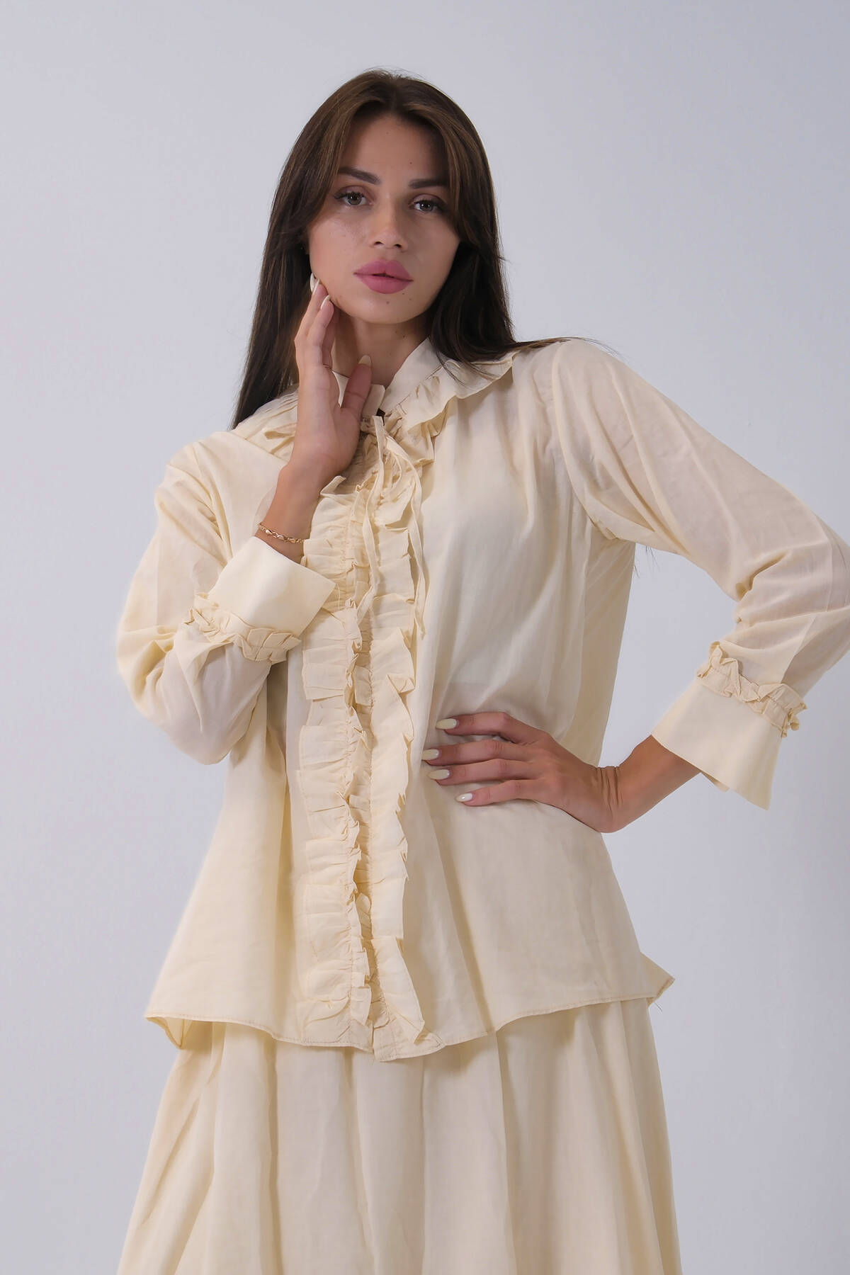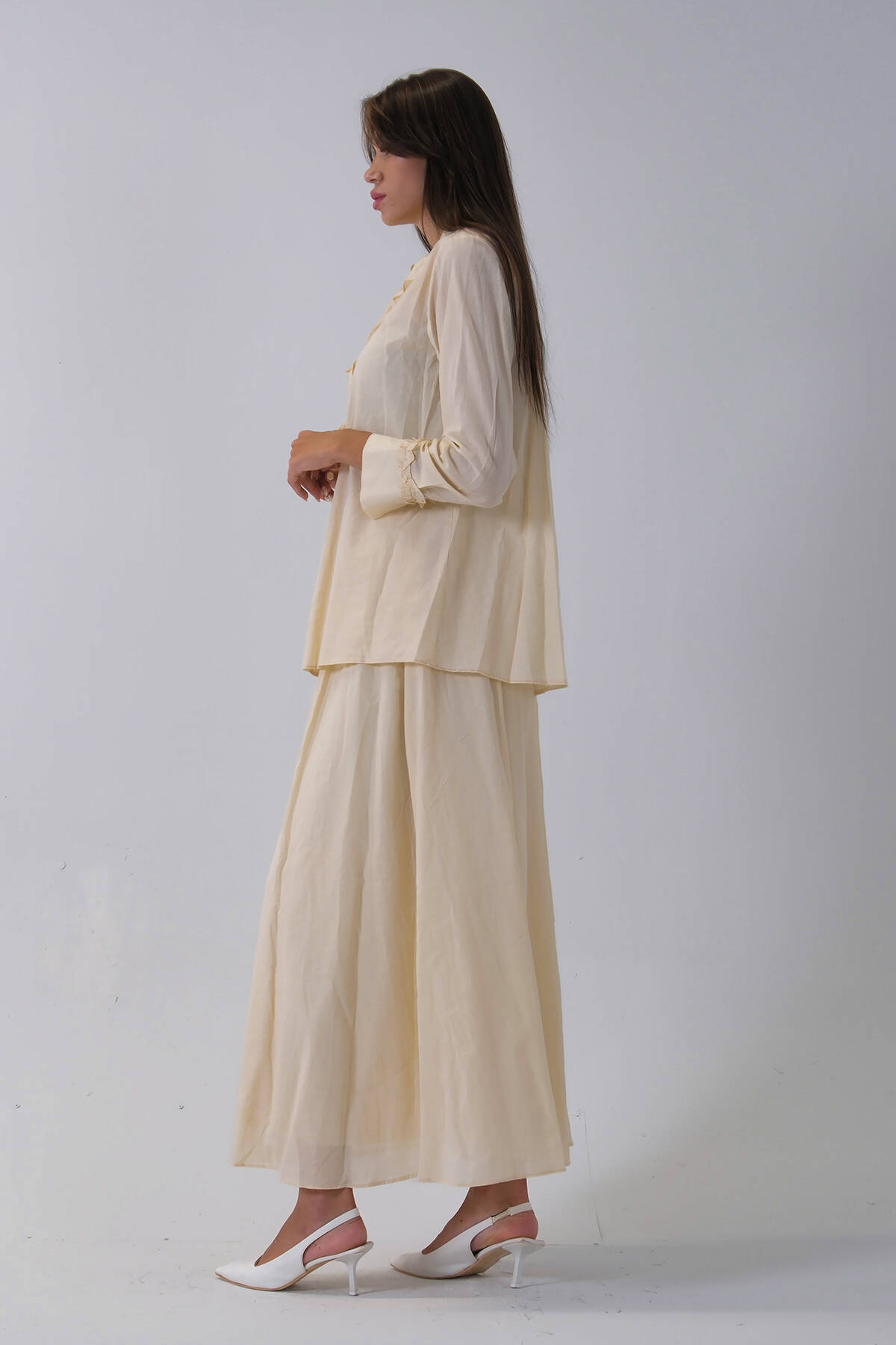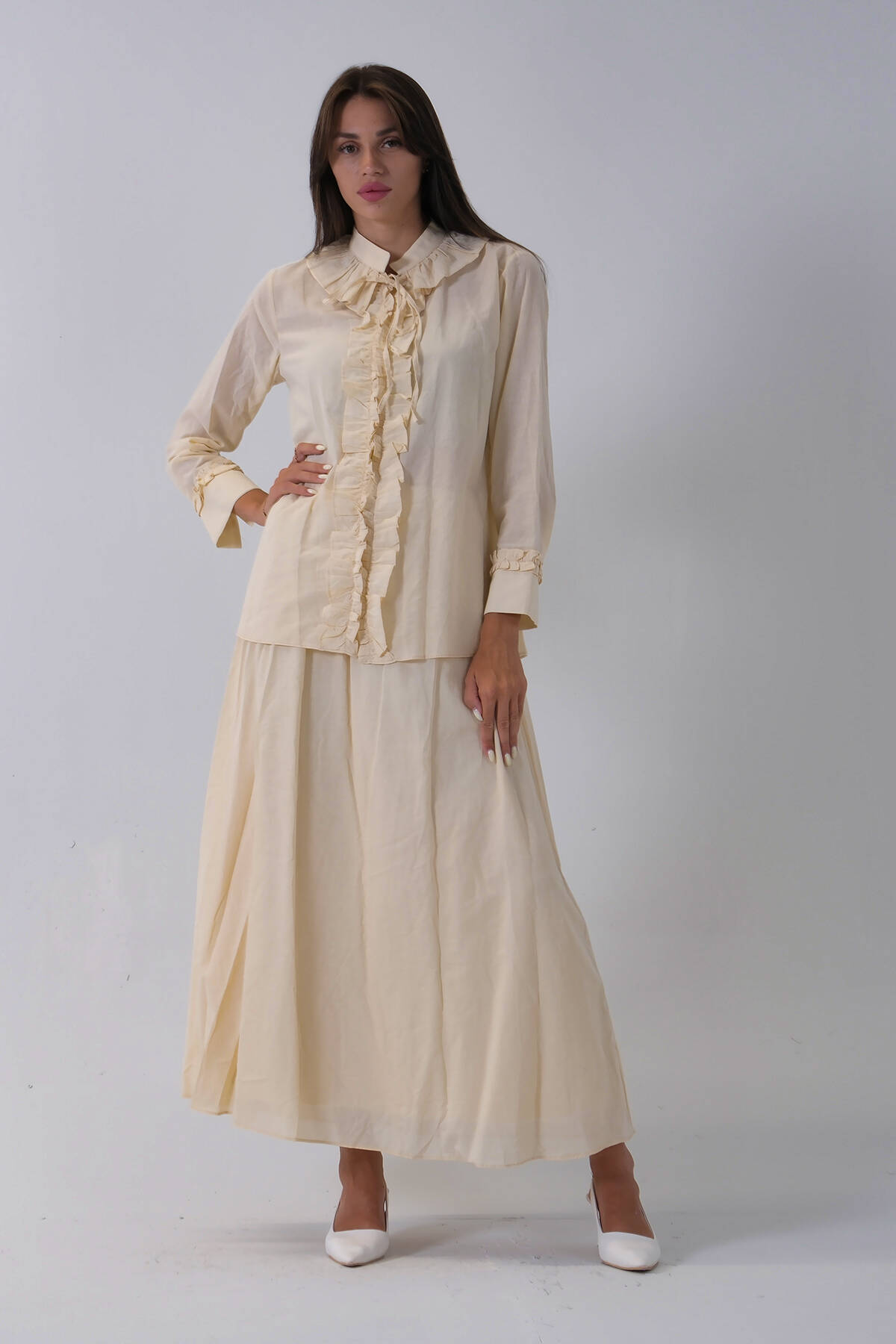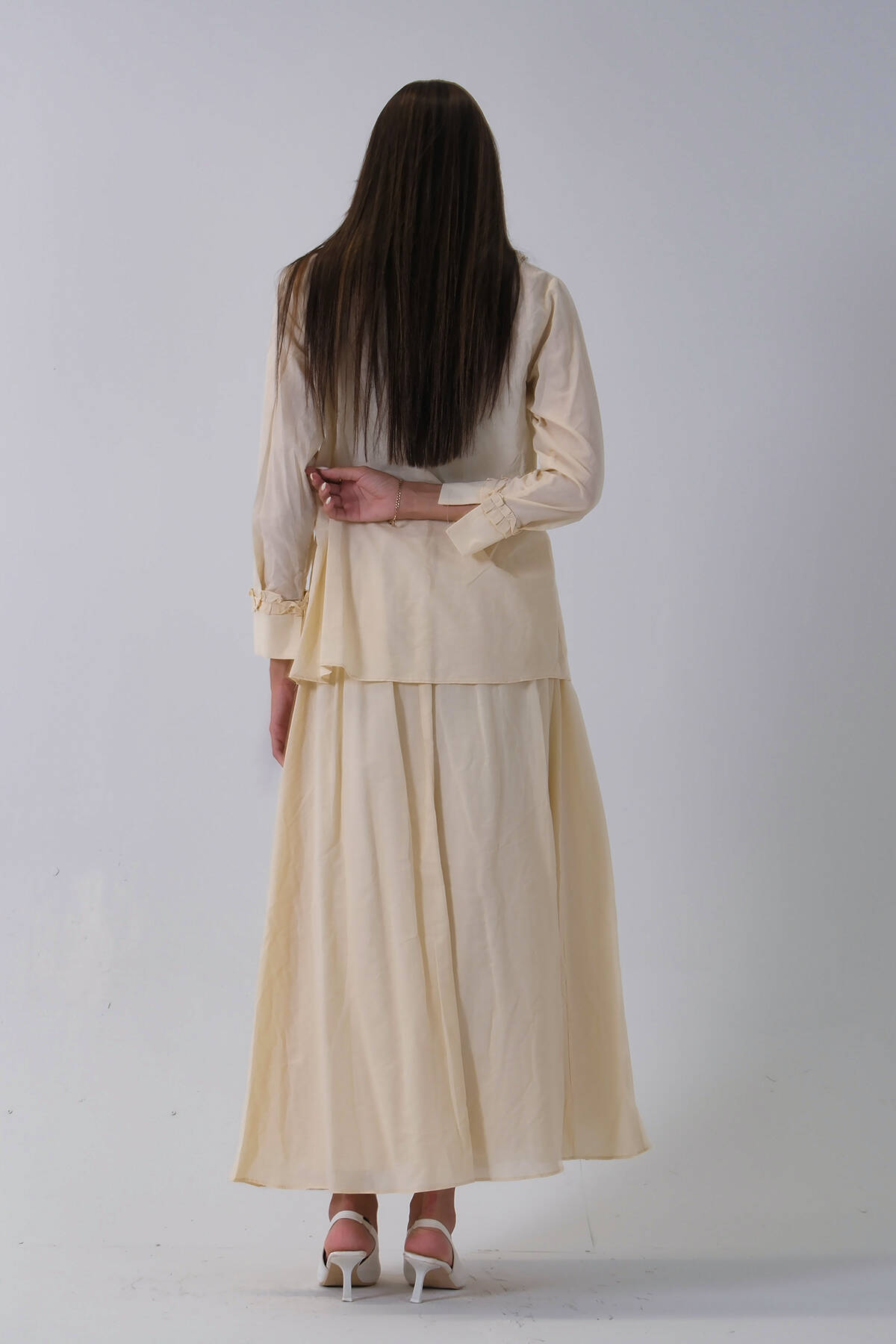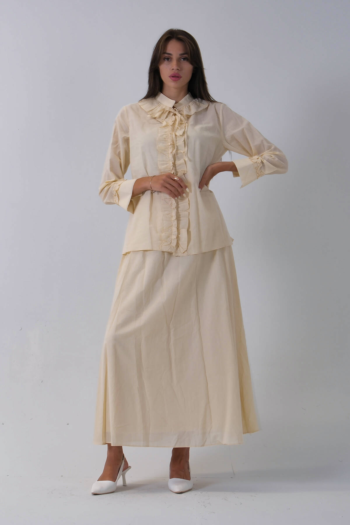 Taş Yaka ve Bilek Fırfır Detaylı Etekli Takım 4592246.50
