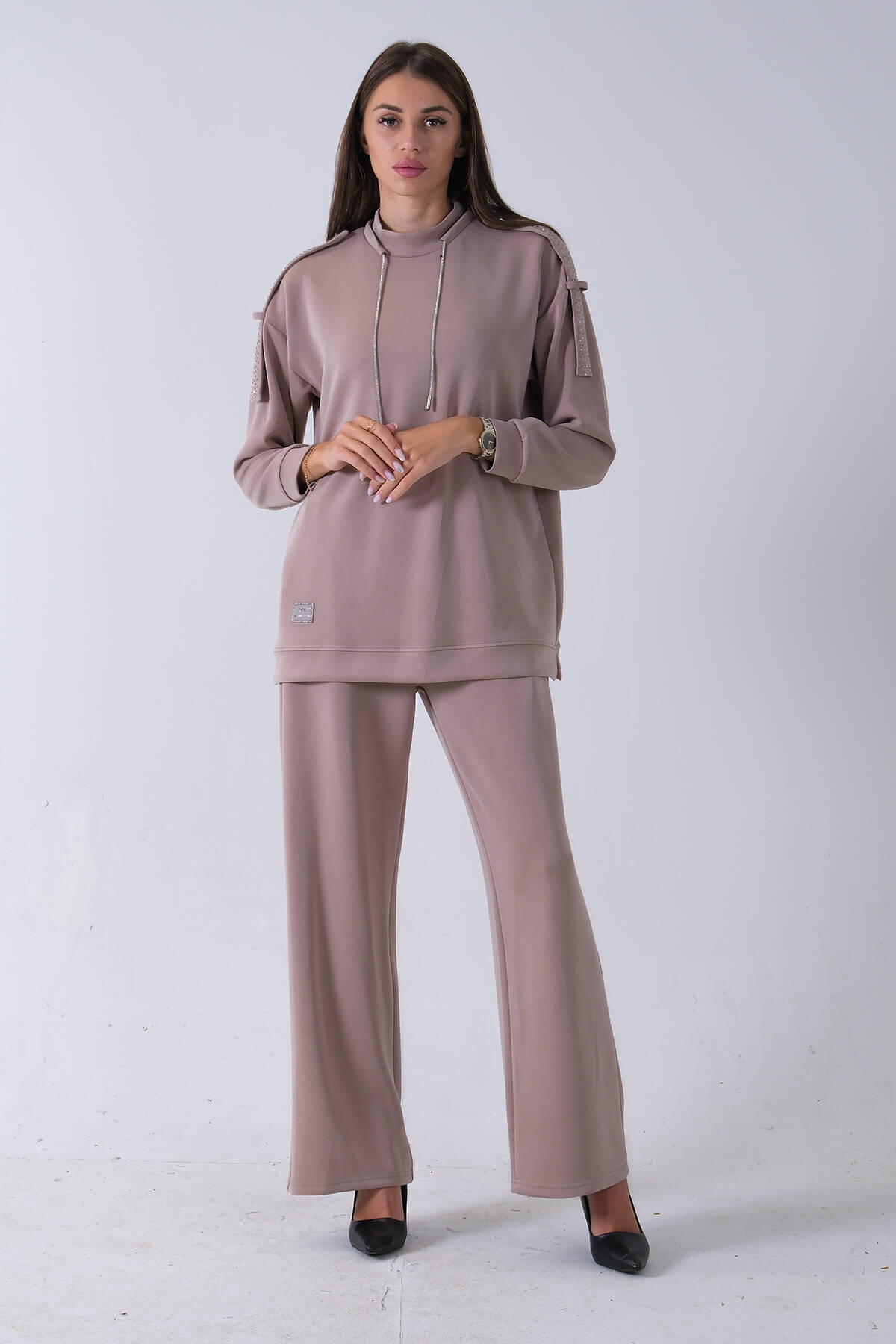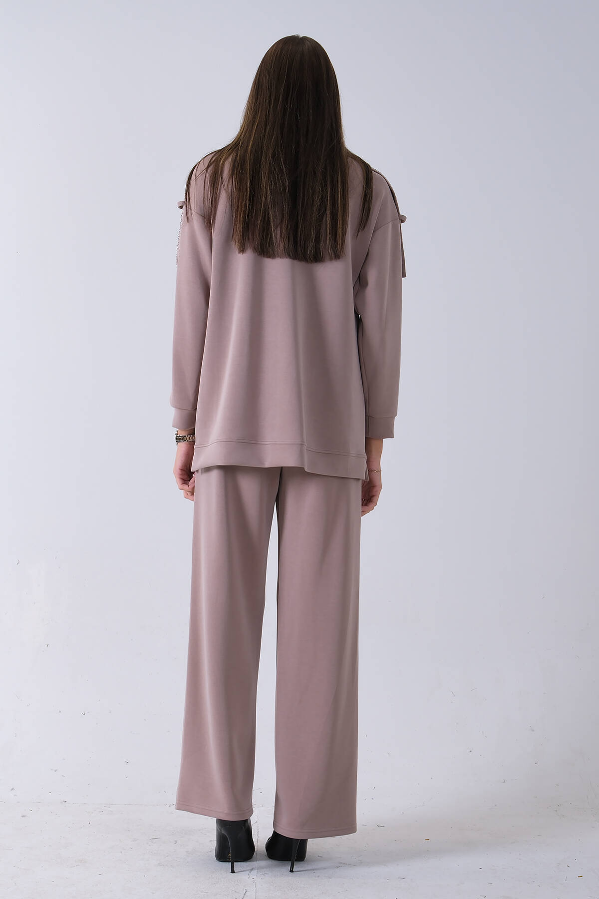 Vizon Omuz Apolet Detaylı Yakası İpli Tunik Pantolonlu Takım 4577281.34