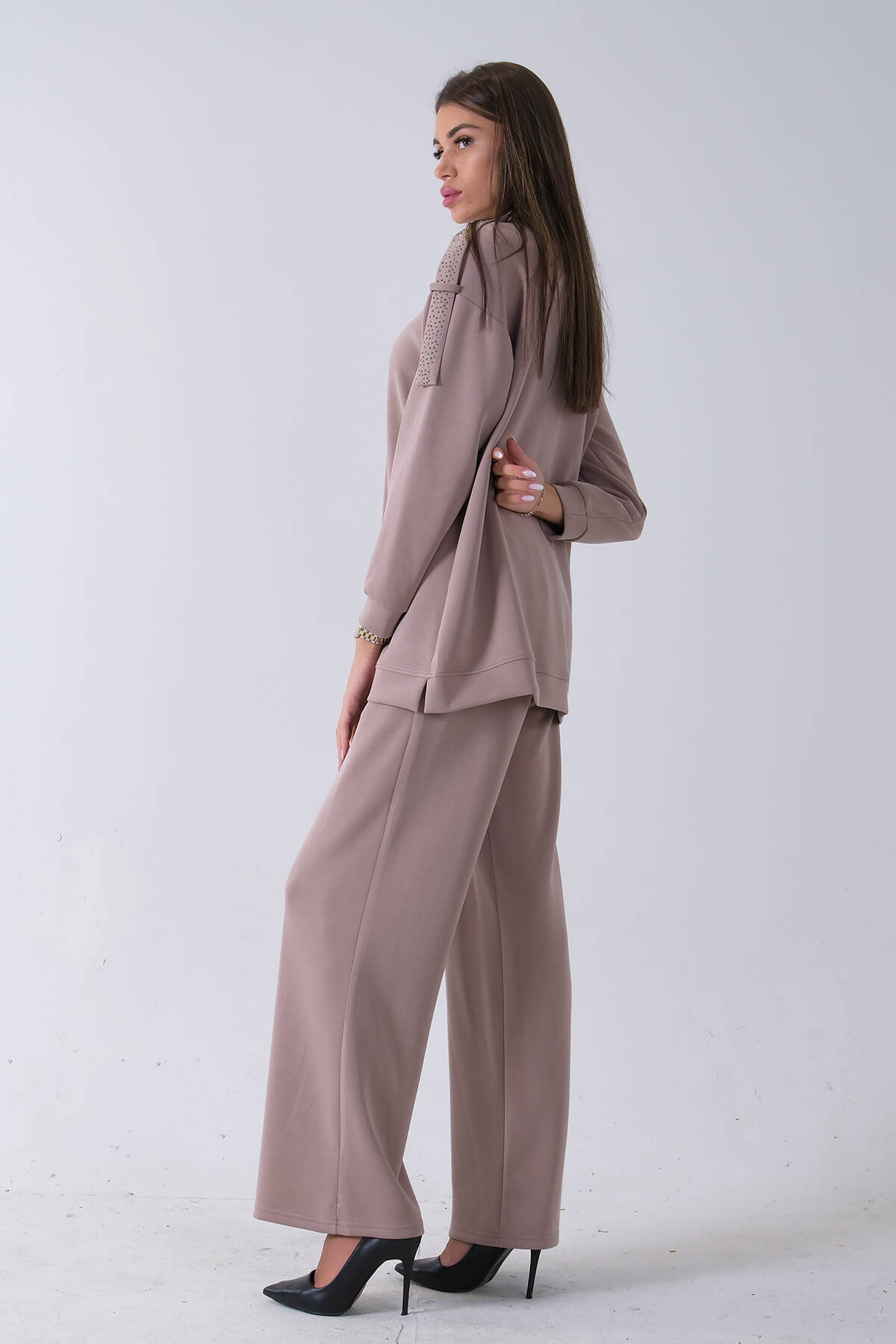 Taş Yaka ve Pantolon Paçası Taş Detaylı Tunikli Takım 4703048.50