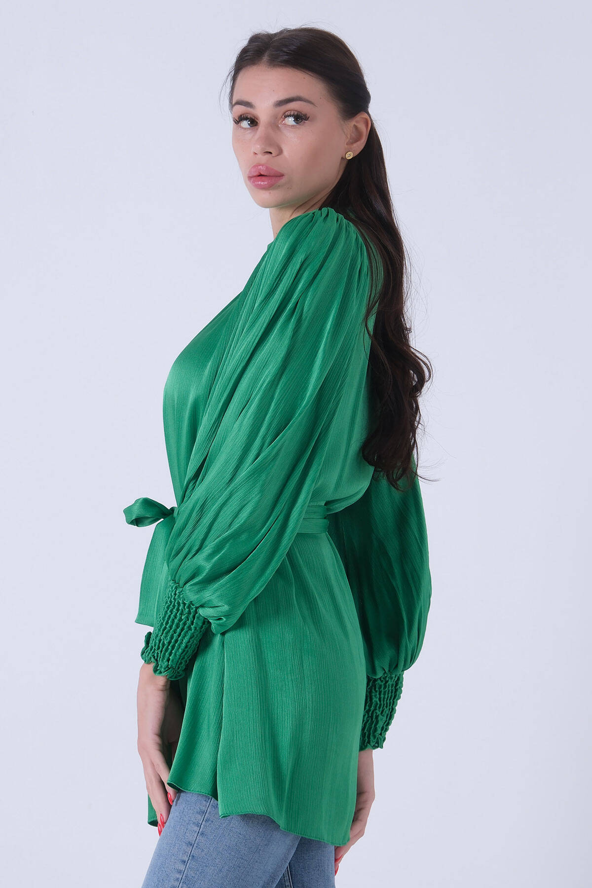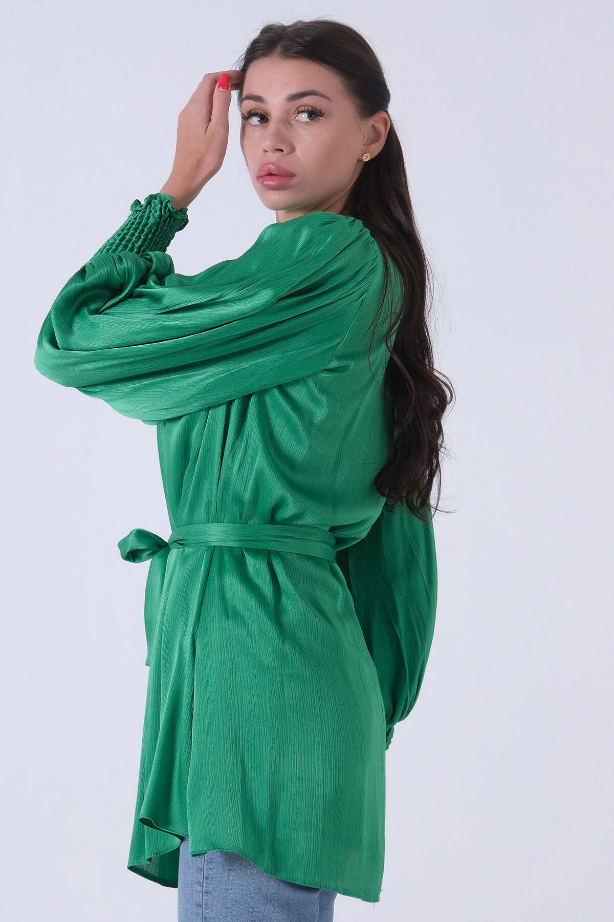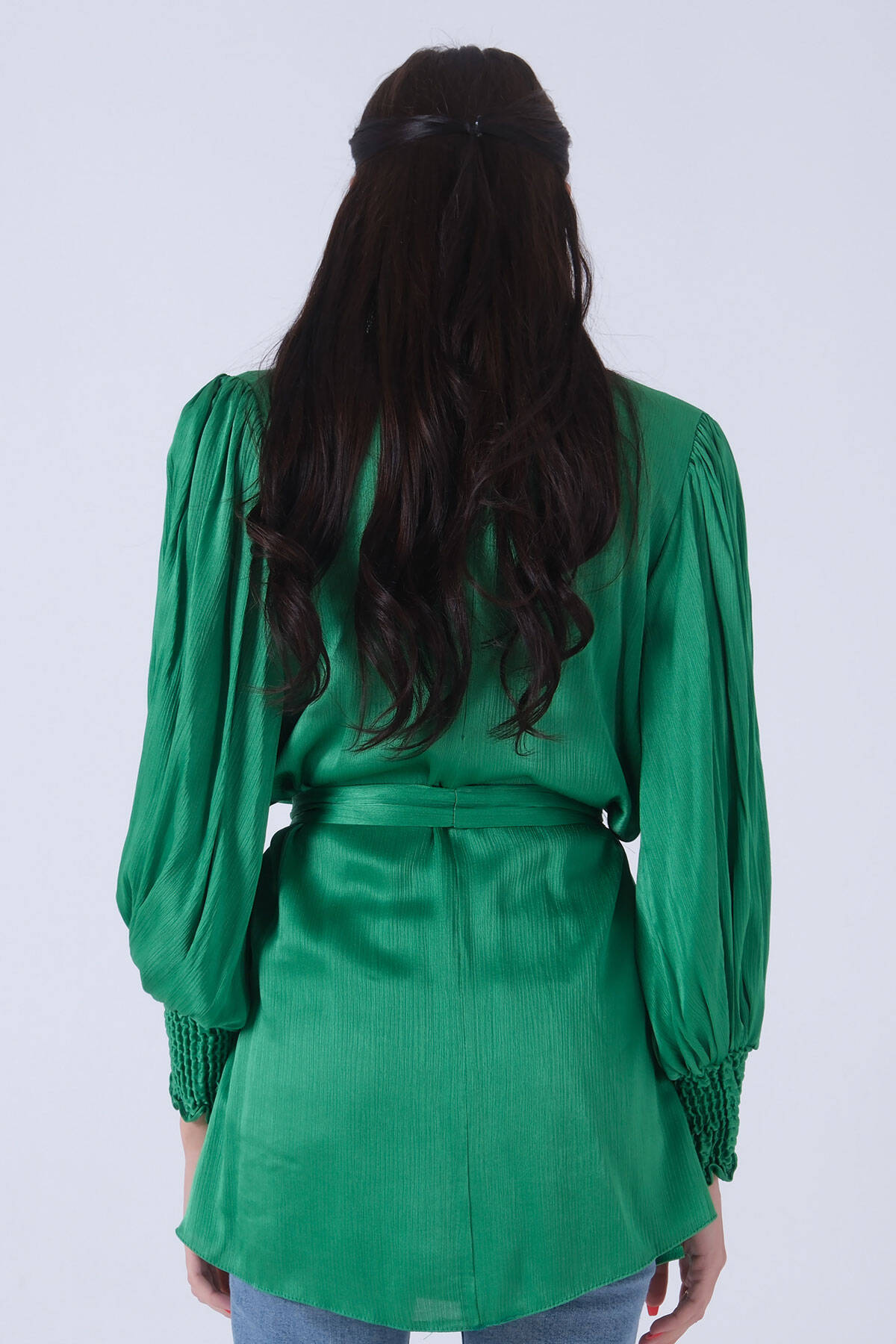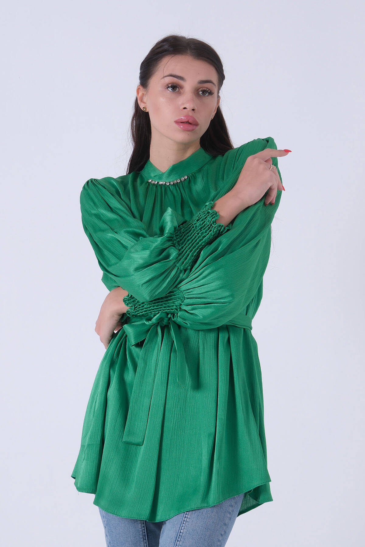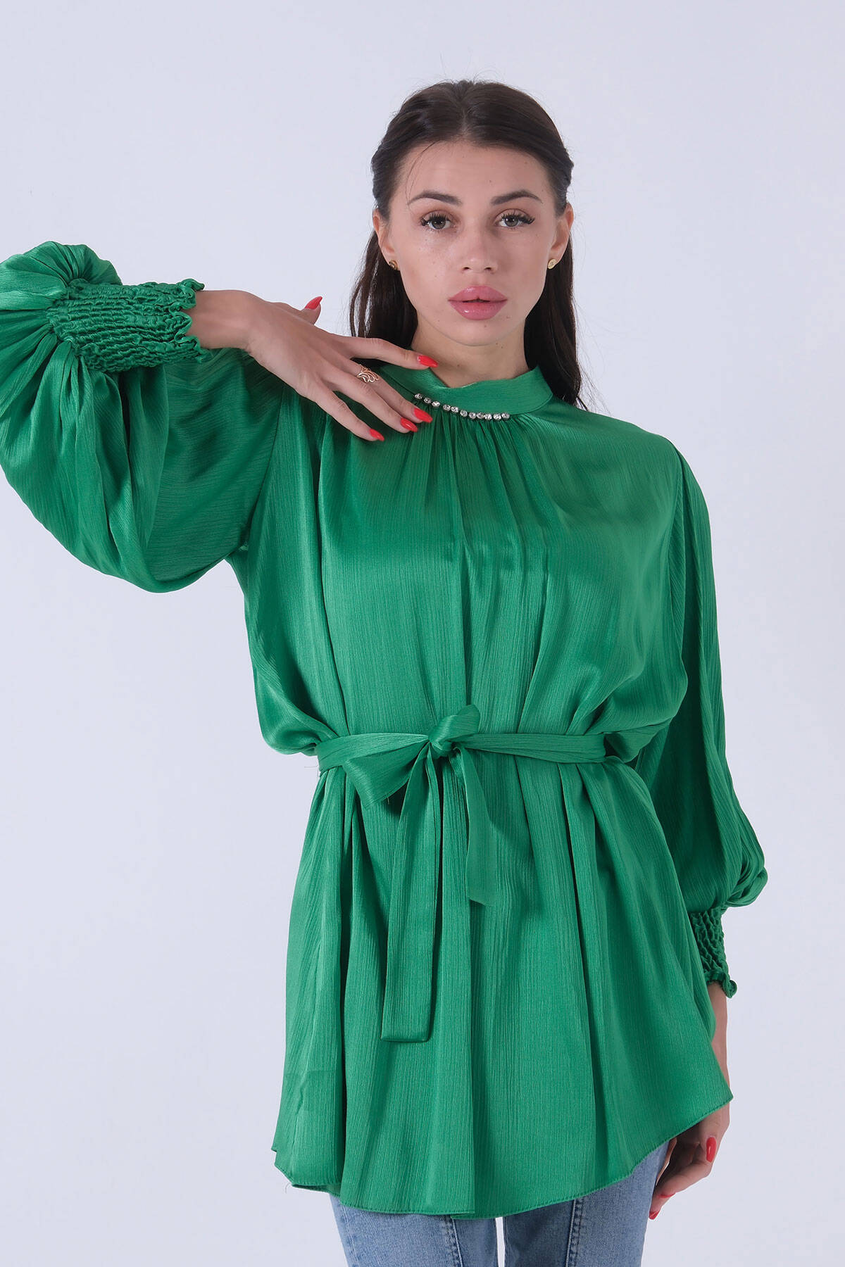 Yeşil Belden Bağlamalı Yakası Taşlı Tunik 45951971.07
