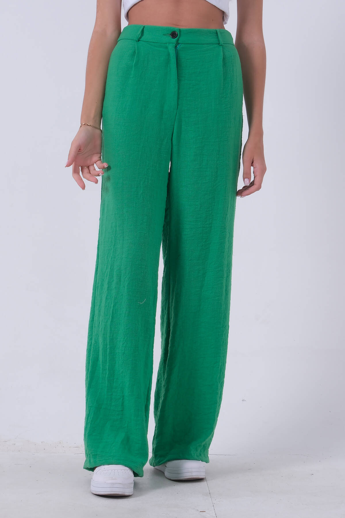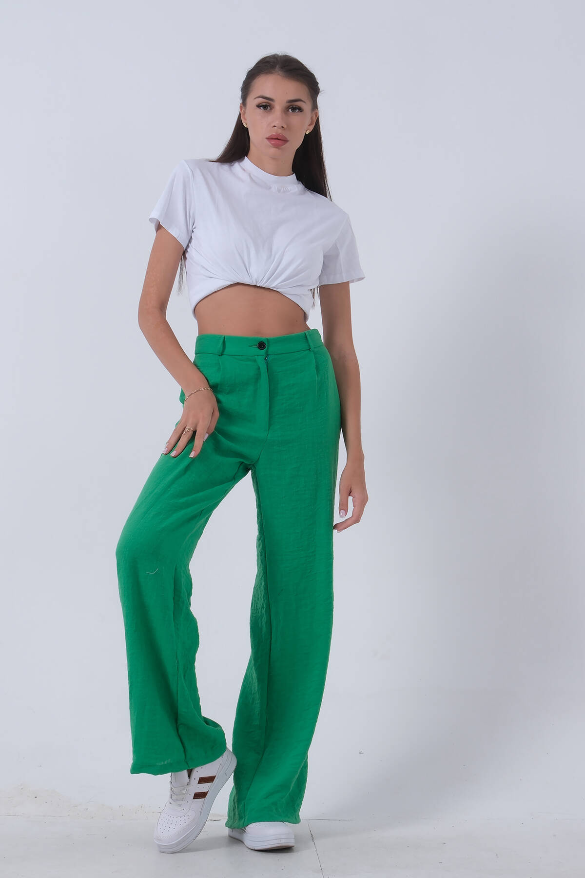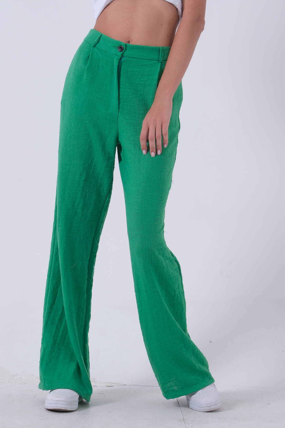 Yeşil Yüksek Bel Bol Paça Keten Pantolon 01020661.07