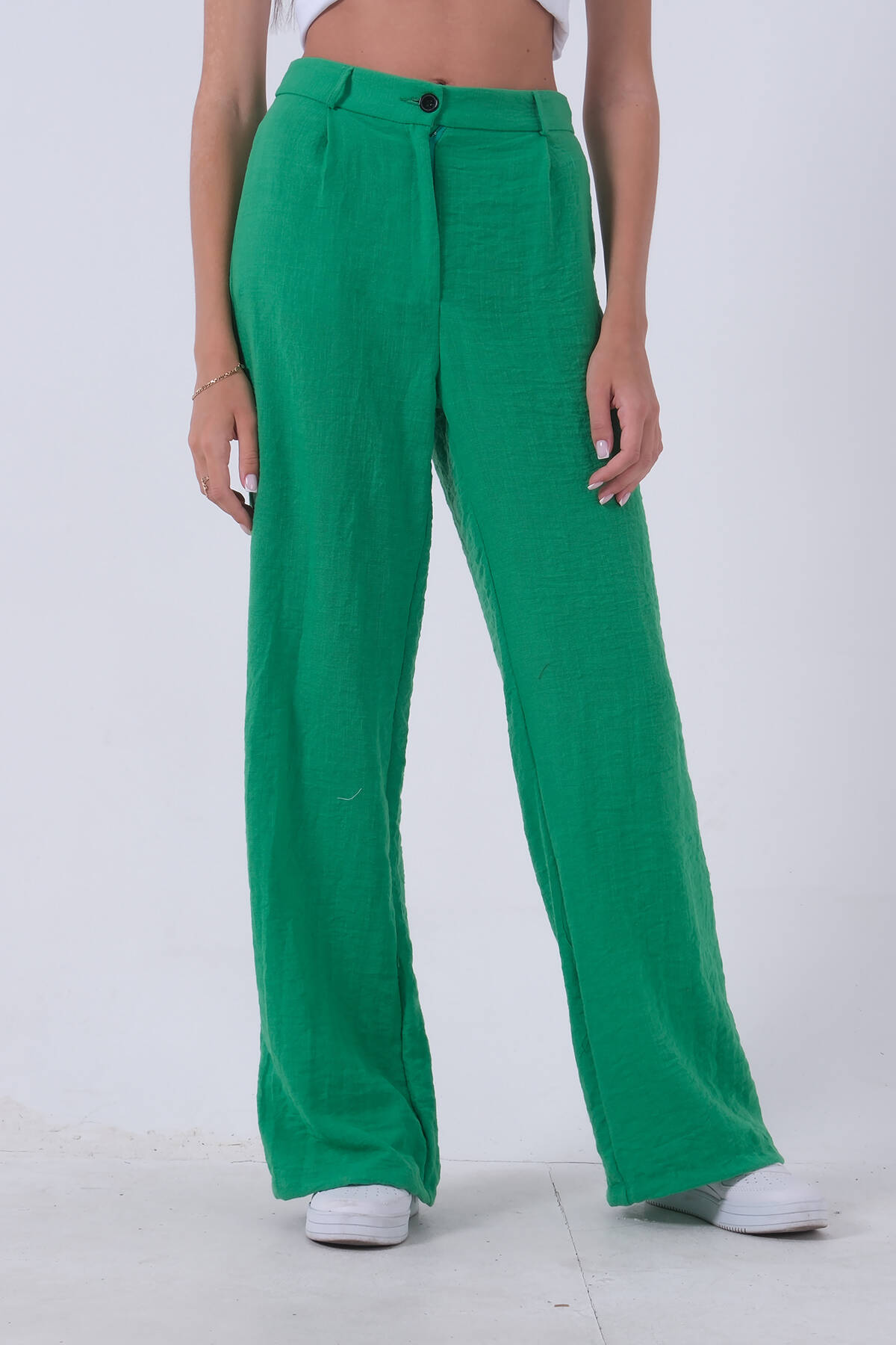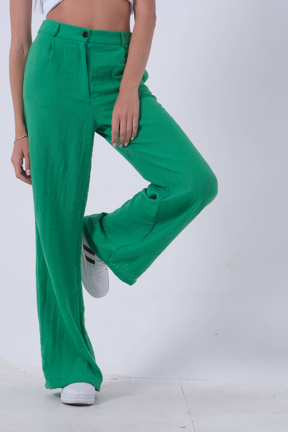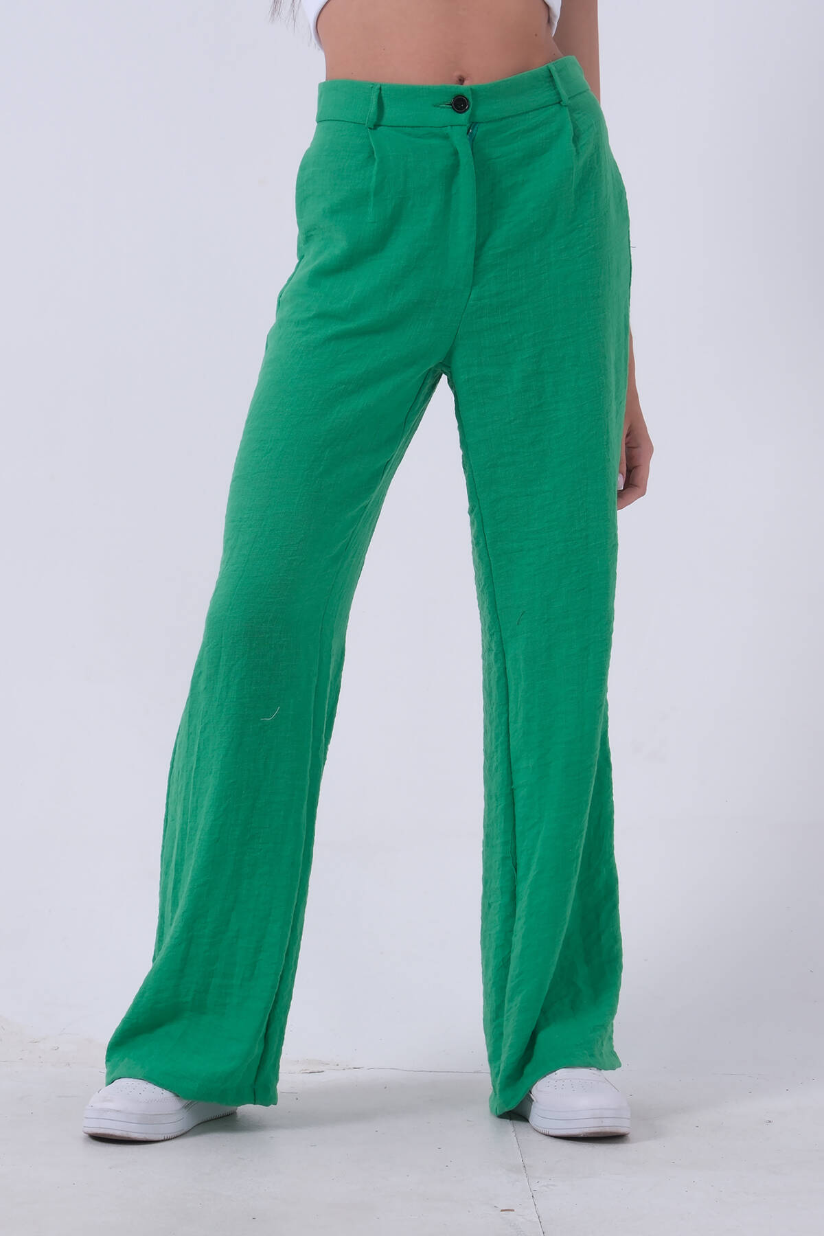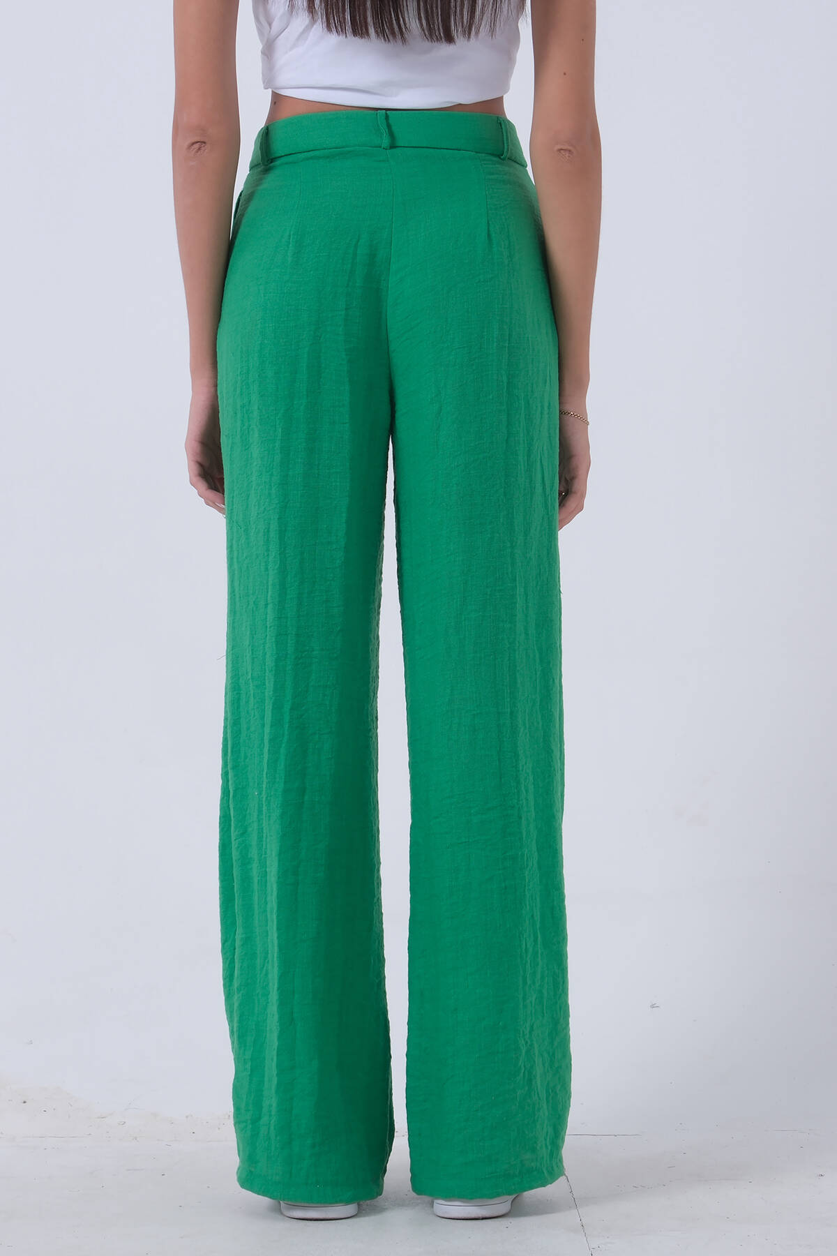Yeşil Yüksek Bel Bol Paça Keten Pantolon 01020661.07