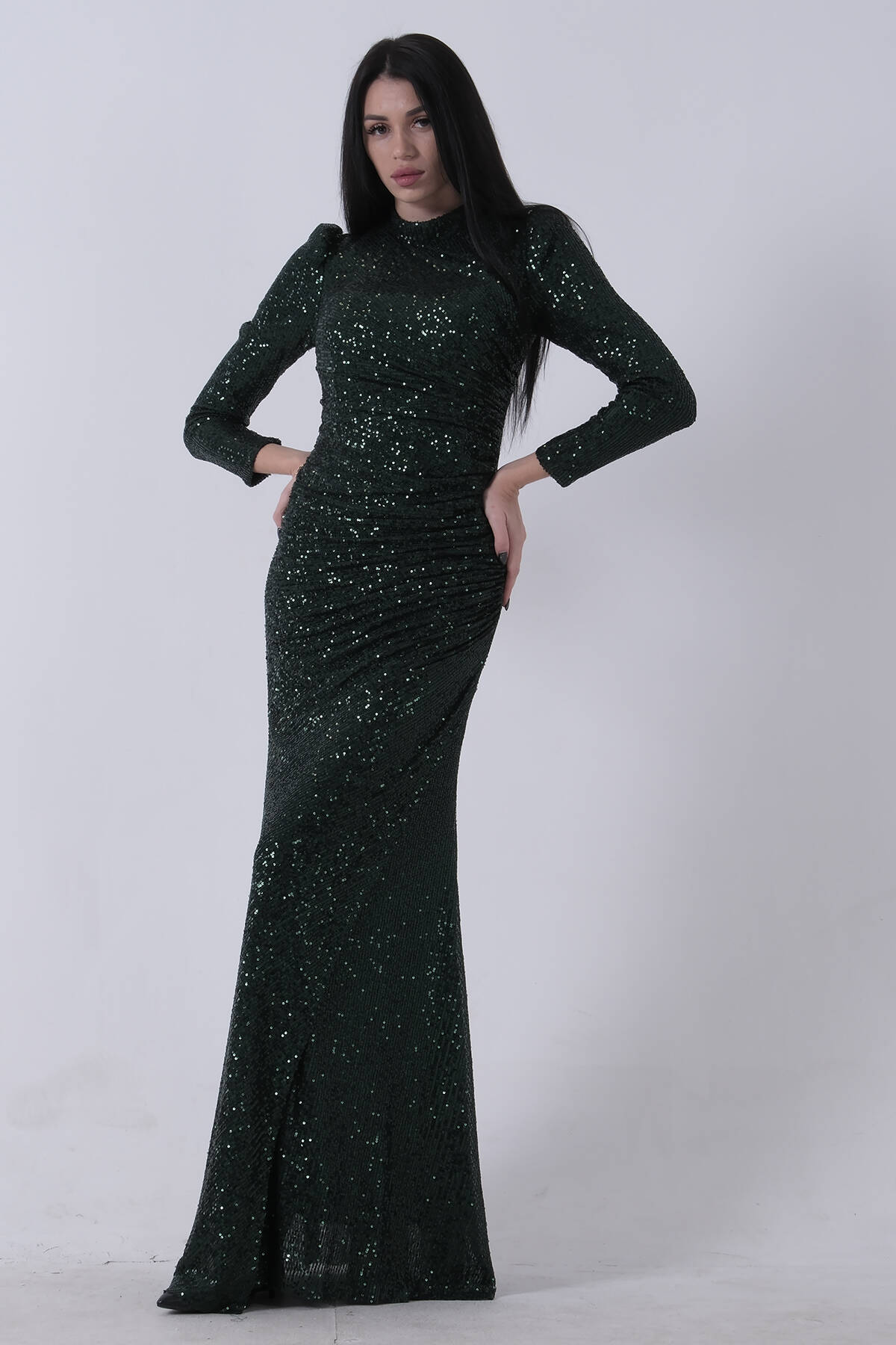 Zümrüt Bisiklet Yaka Pul Payetli Yırtmaçlı Abiye 0801057.123